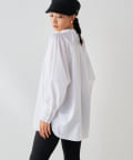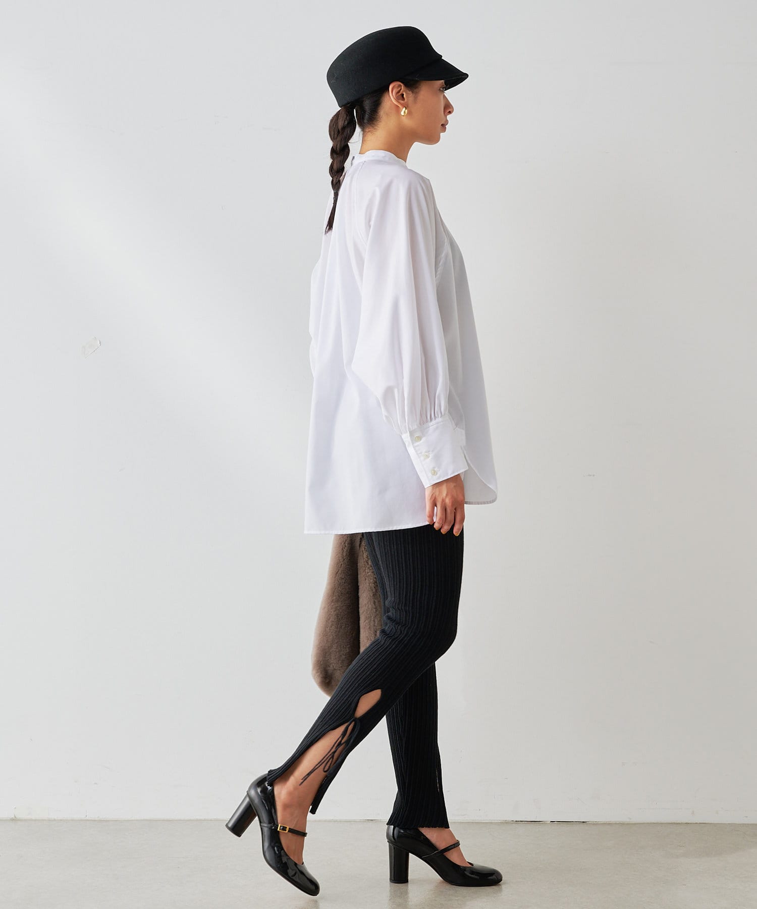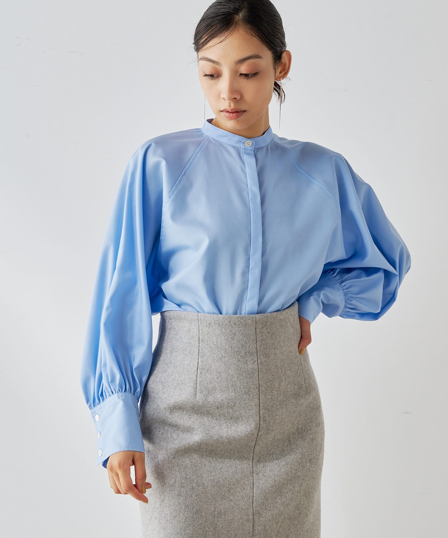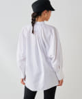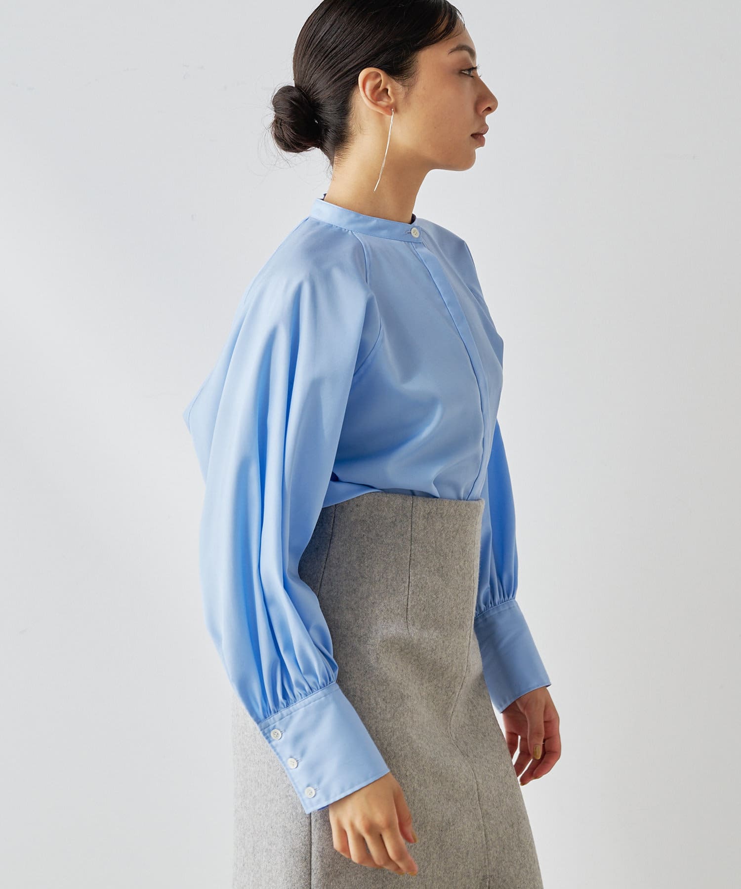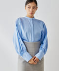 ■程よいハリ感のあるブロード生地で仕立てたスタンドカラーシャツ。