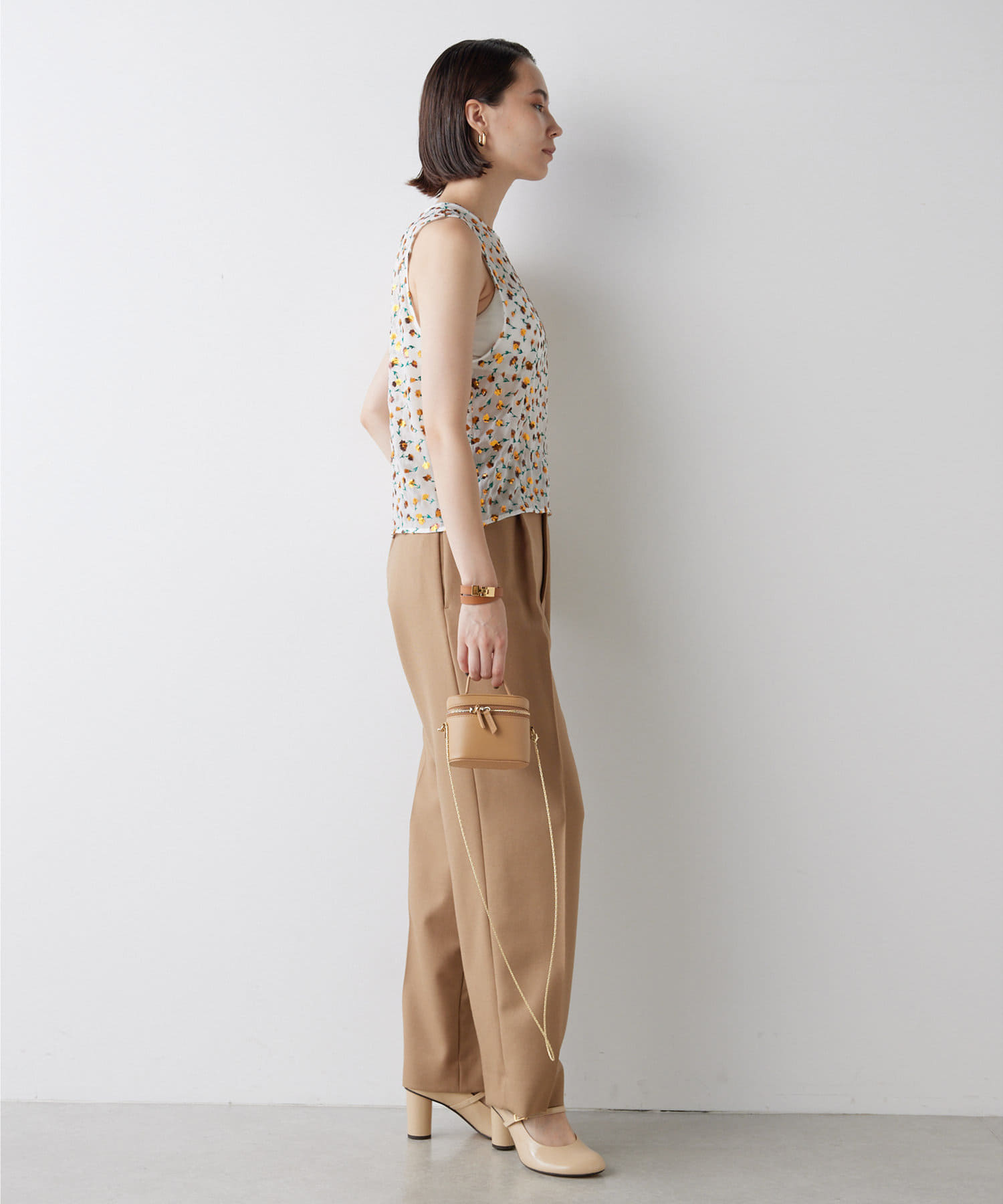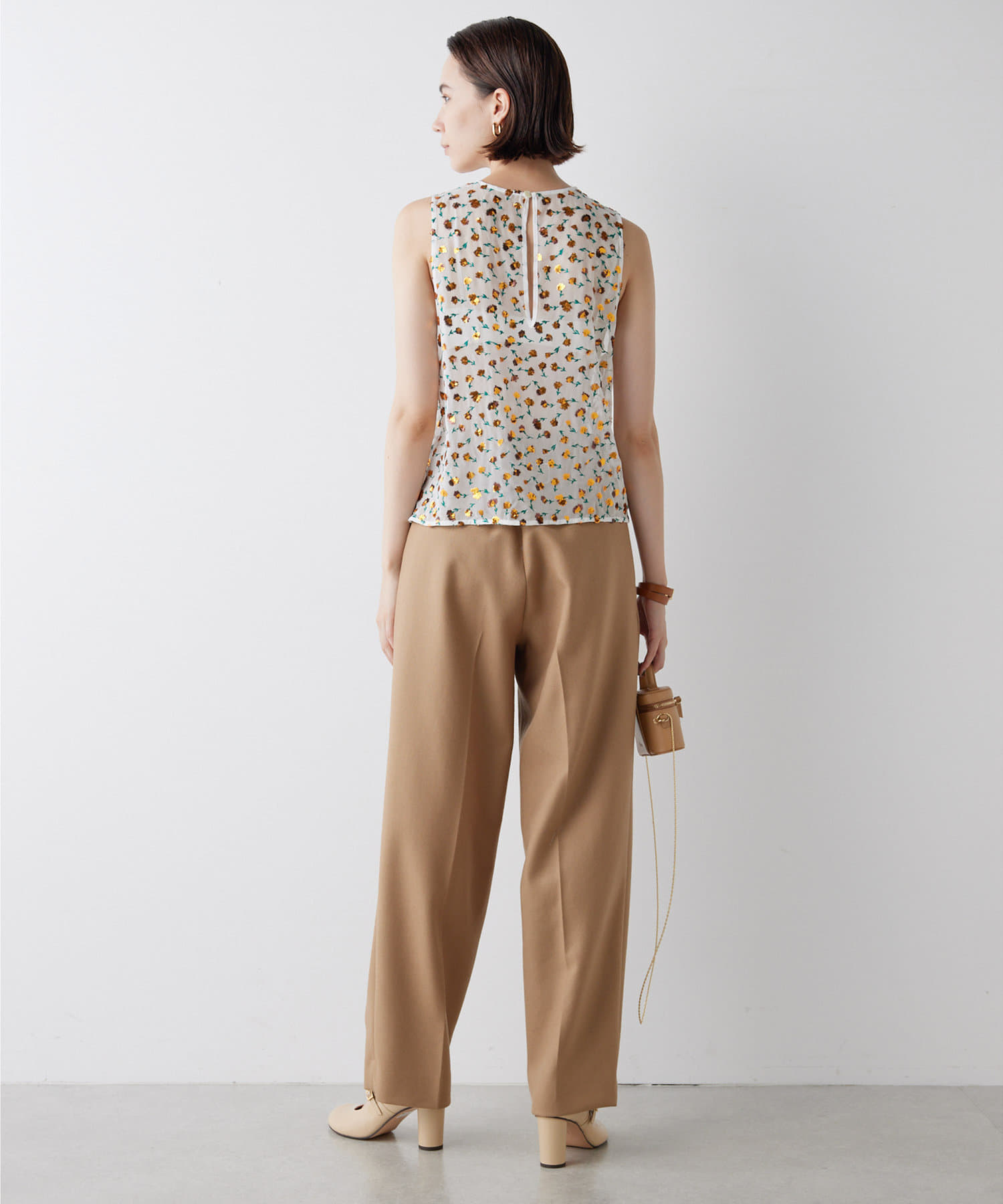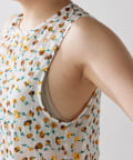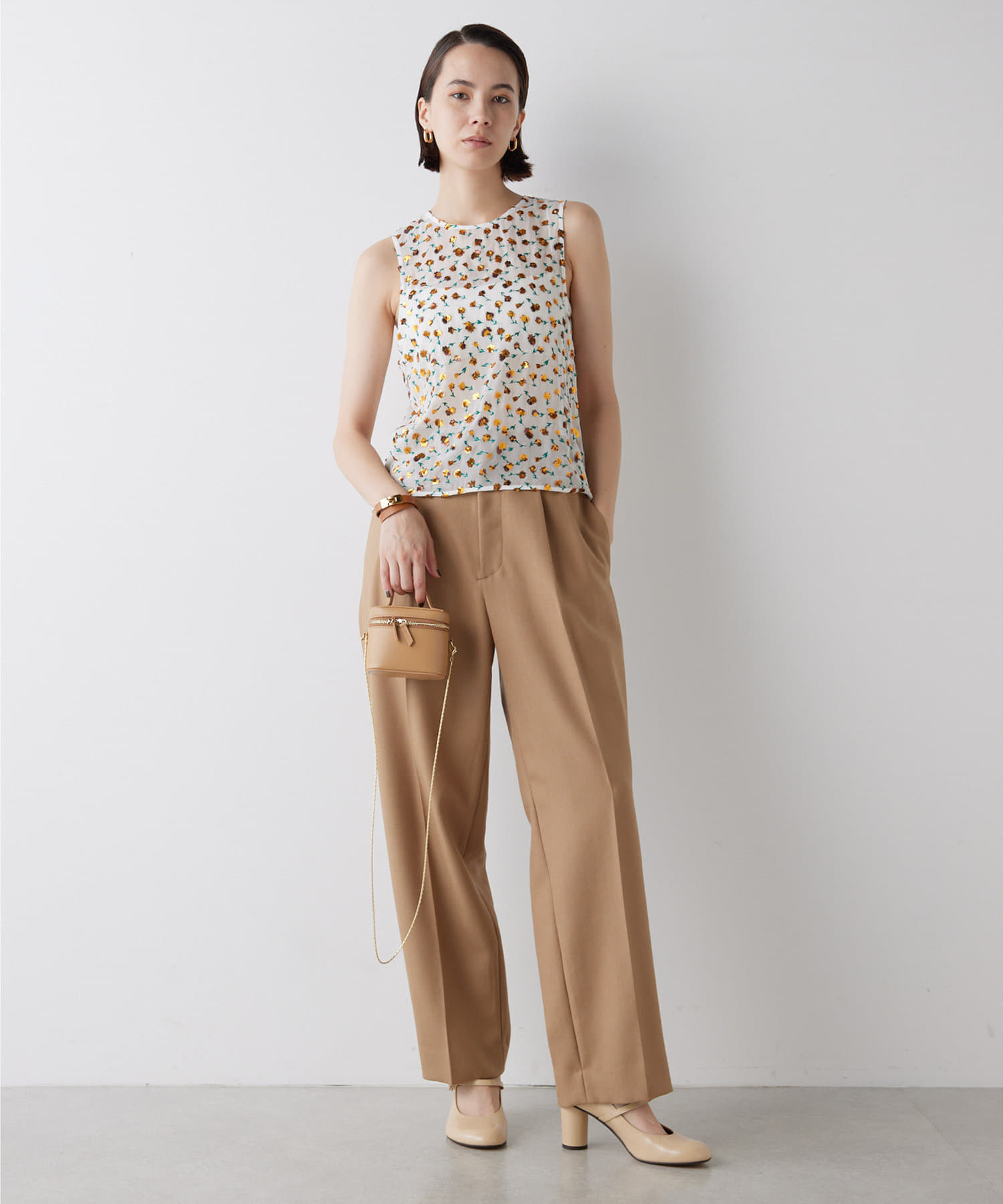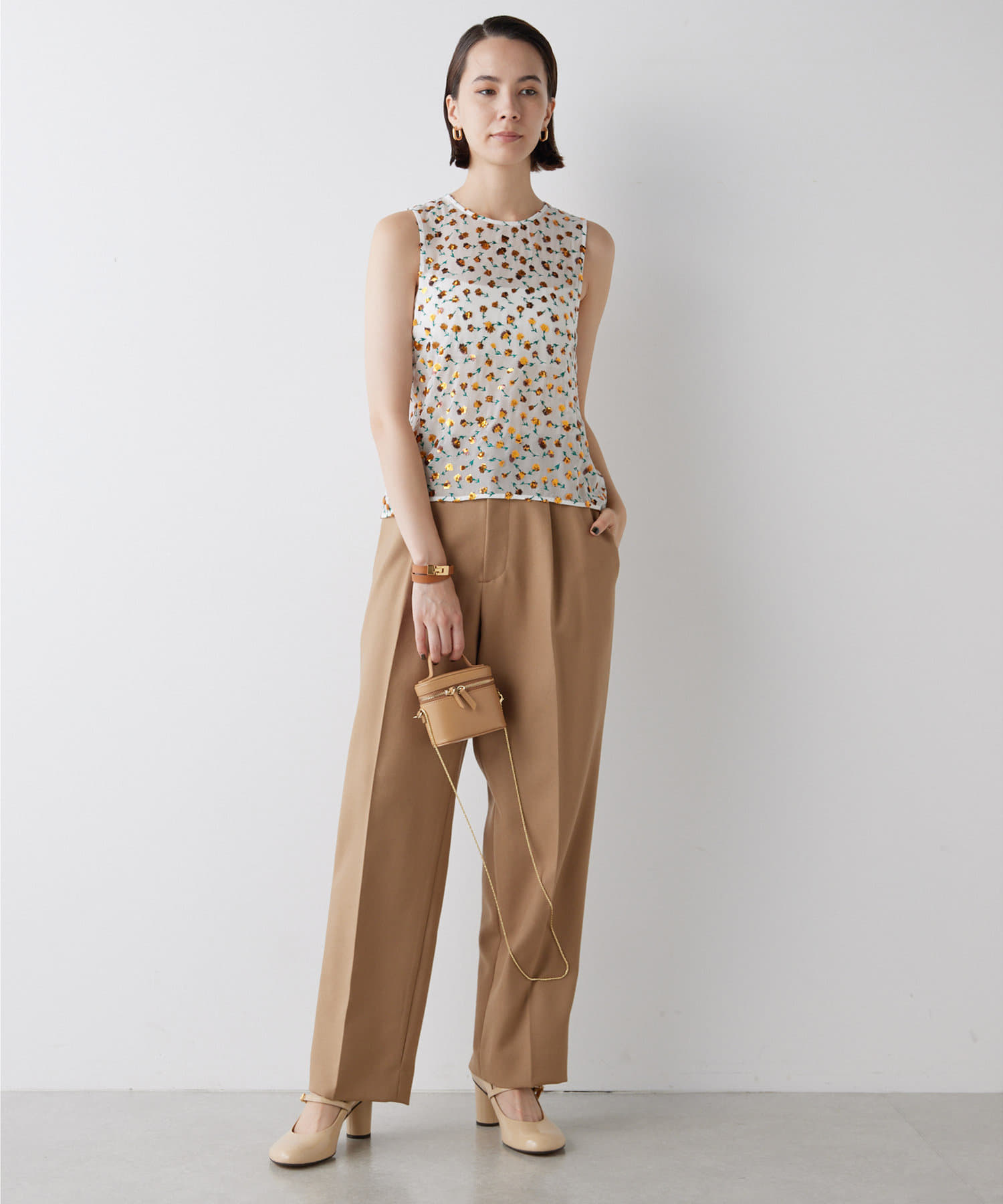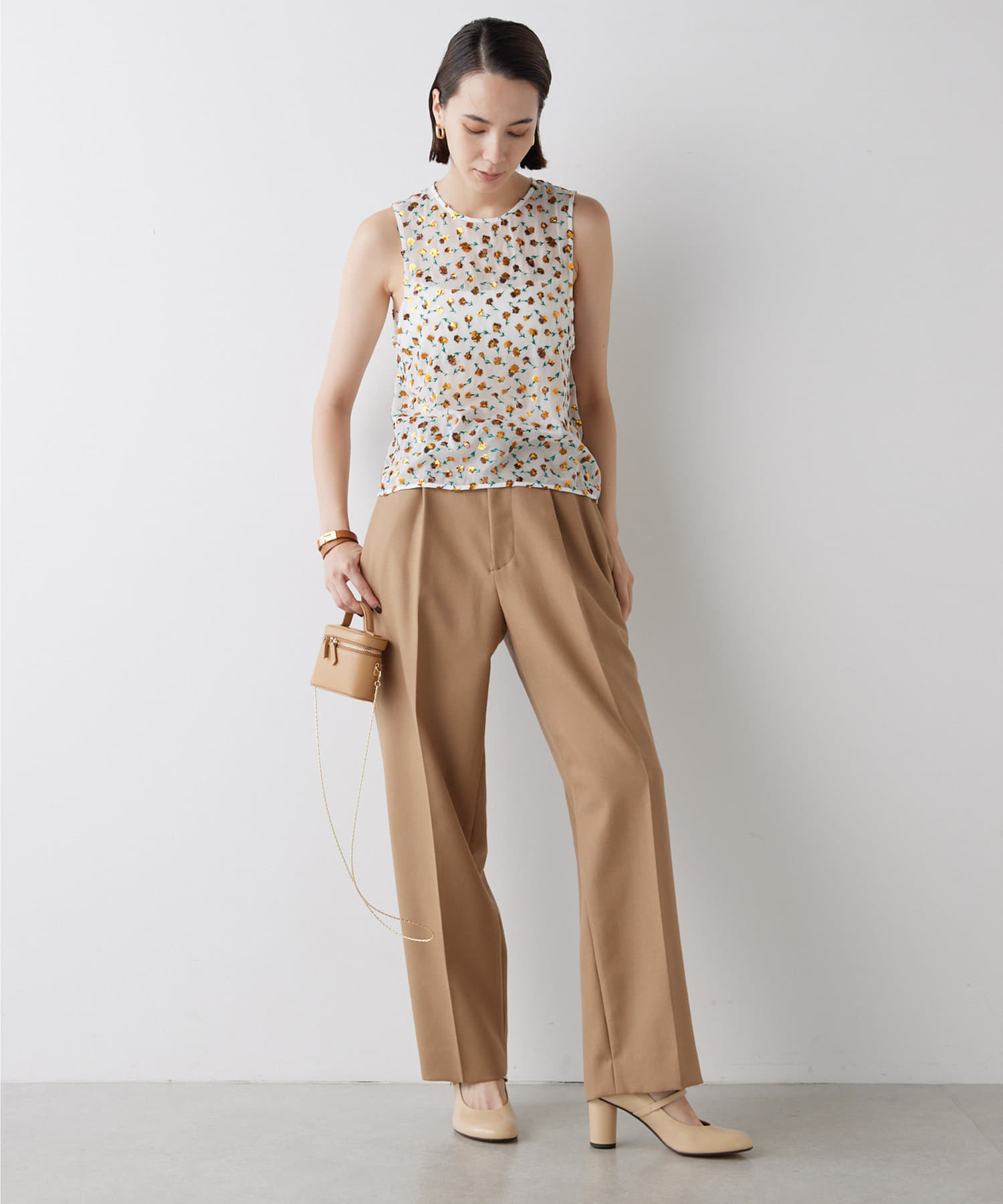 ■繊細なオーガンジーに細かなスパンコール刺繍を施したノースリーブトップス。