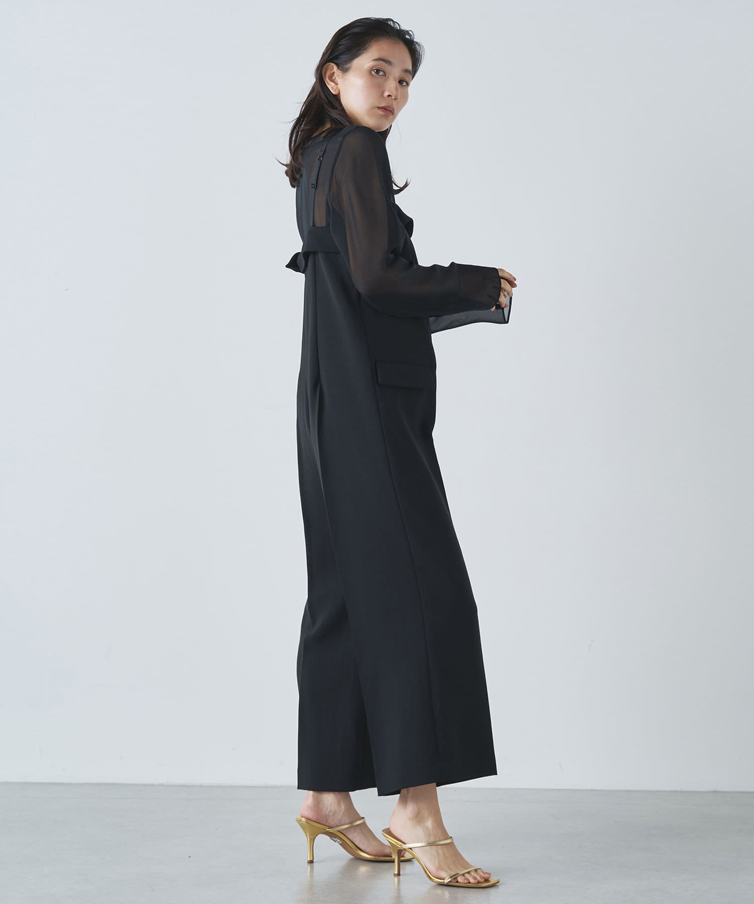 ■春夏はキャミやバンドゥ、秋冬はハイネックニットやジャケットを合わせることでシーズンレスに着回せる一枚。