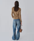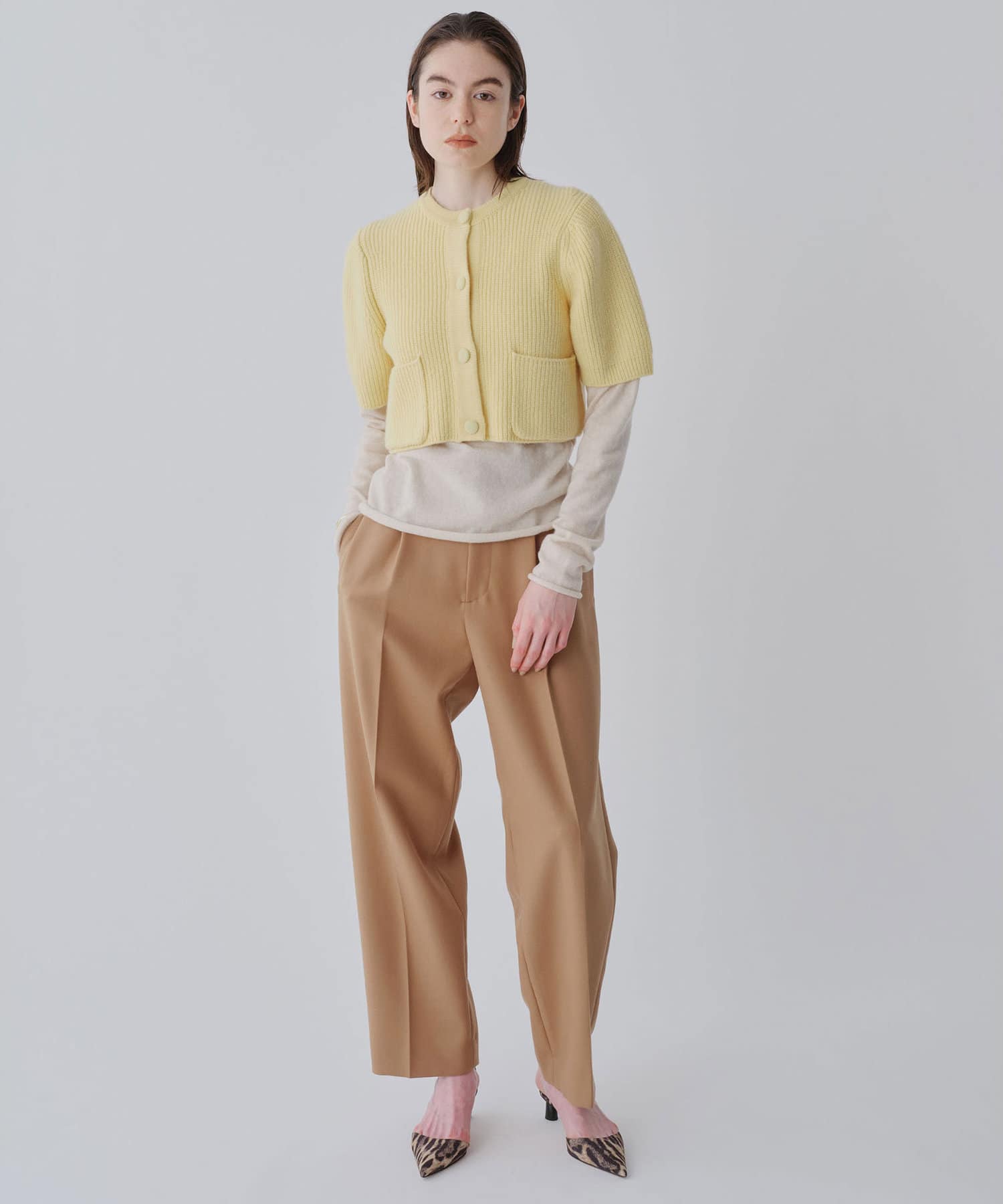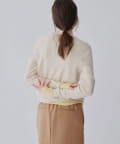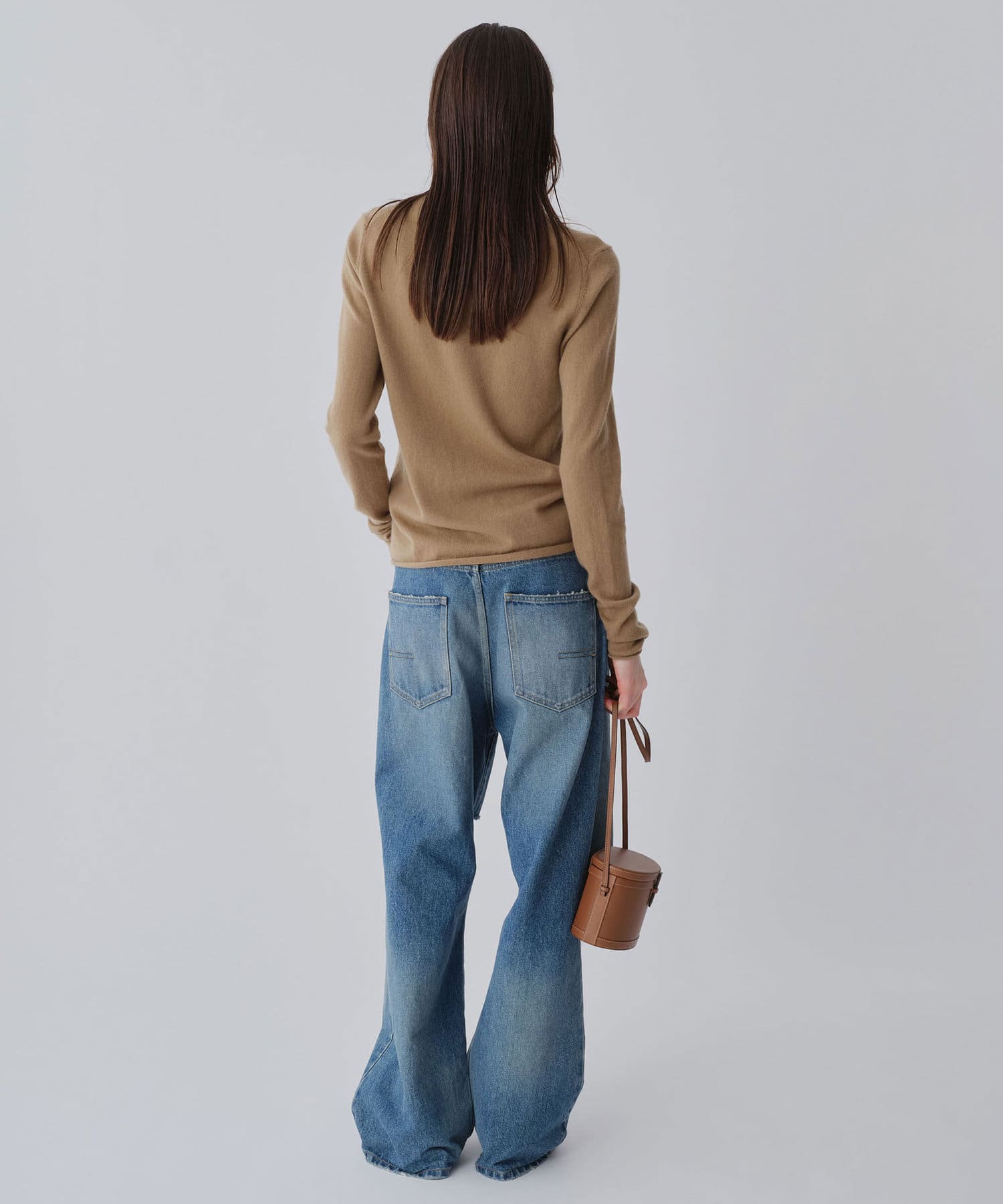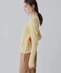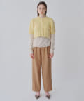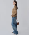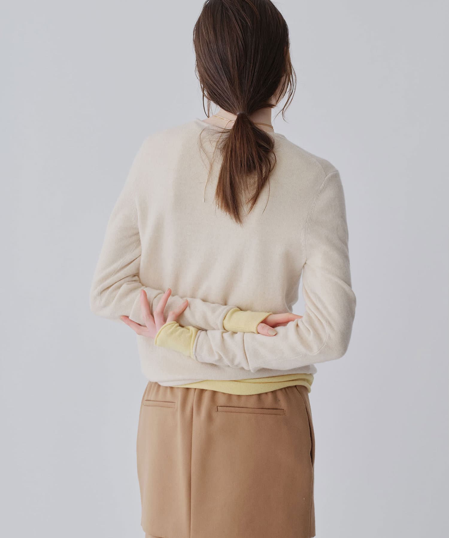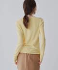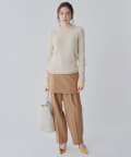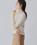 ■ハイゲージで編立てネック周りをすっきりと仕上げつつ、袖口や裾のロールディテールがポイントに。