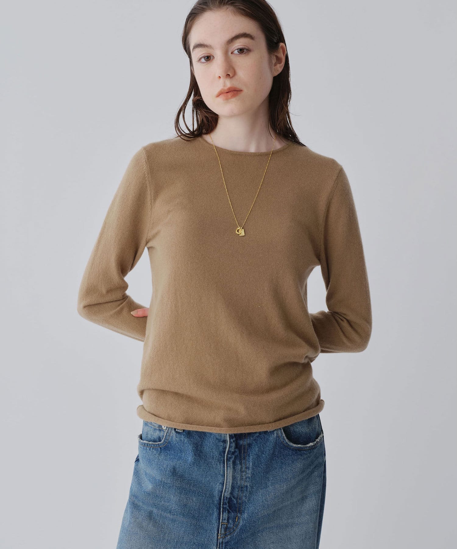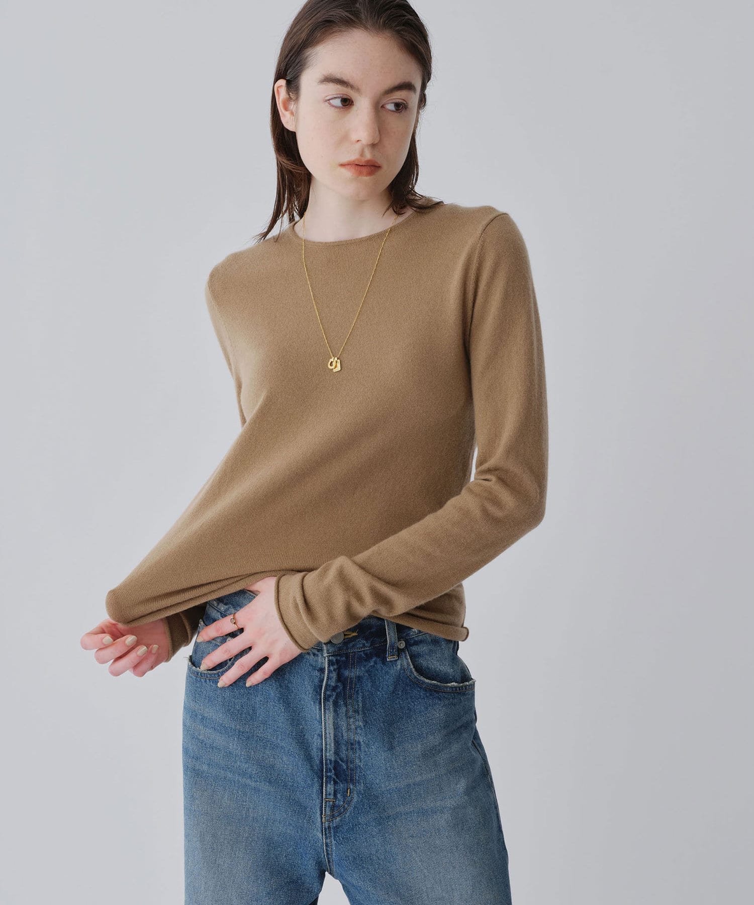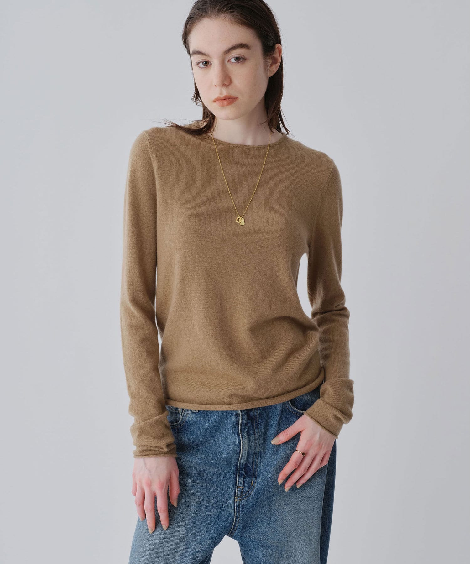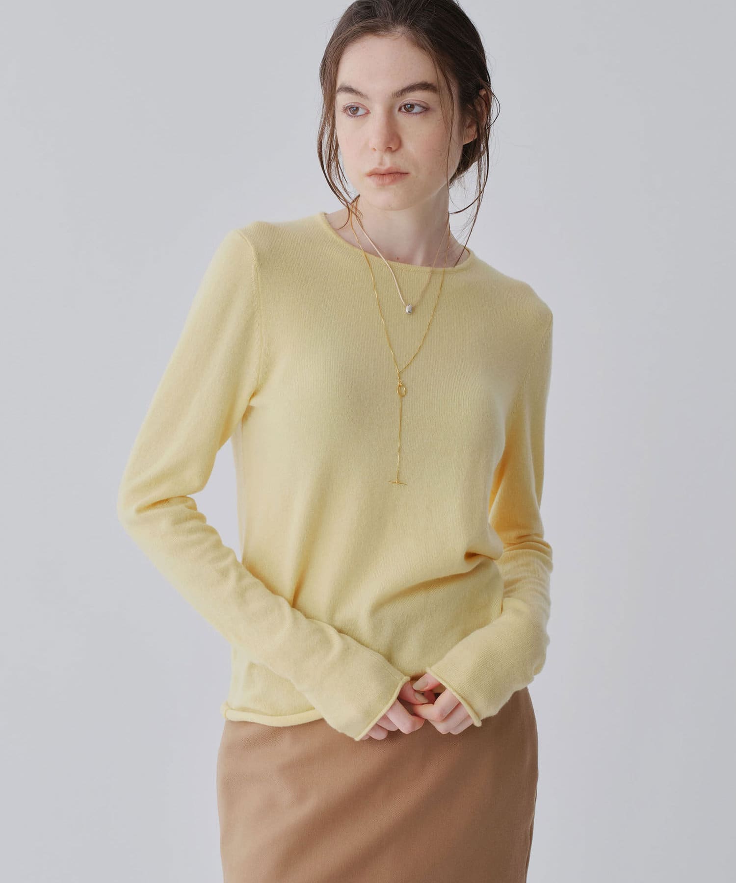 ロンTEE感覚で使える、シンプルなカシミヤニット