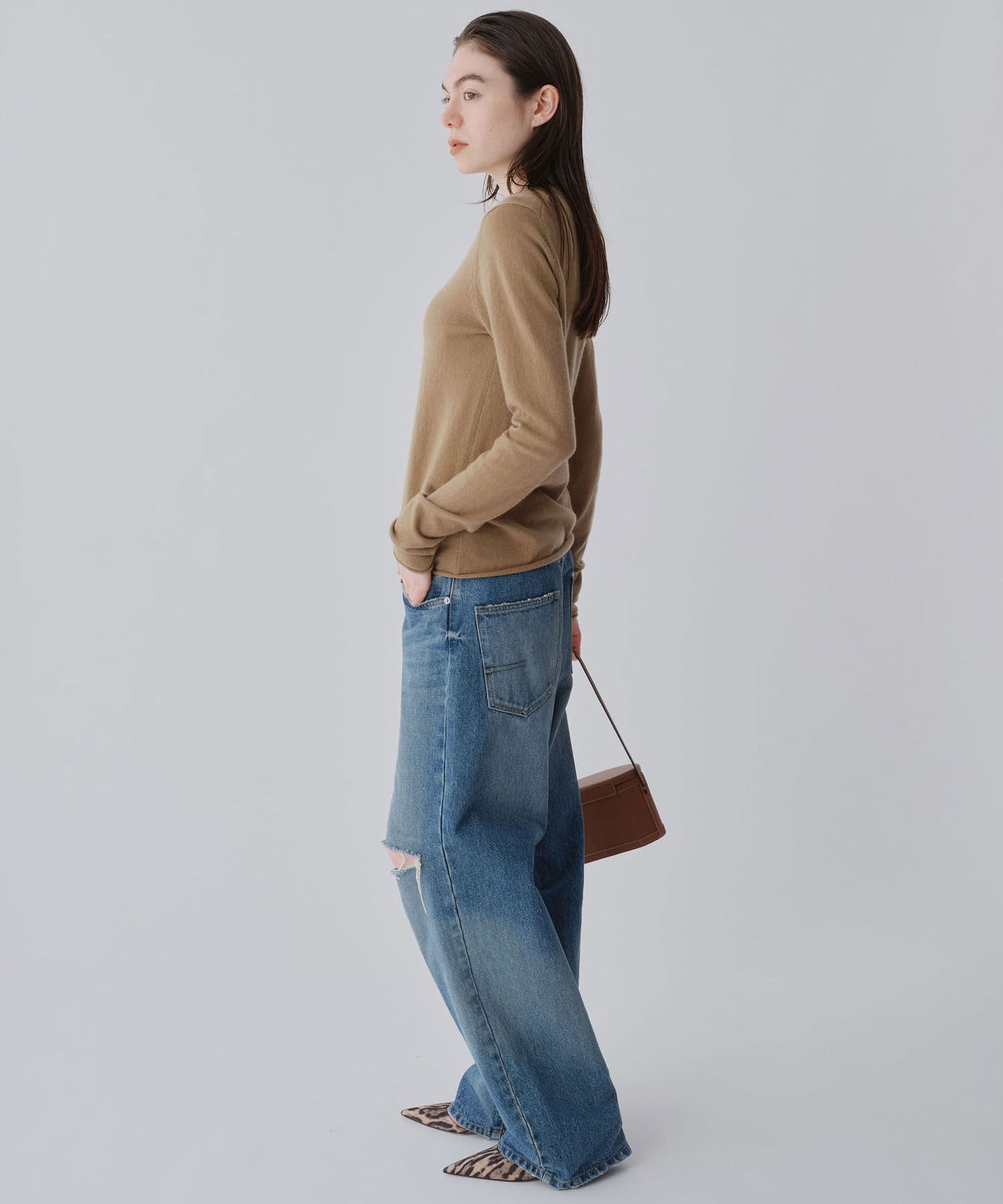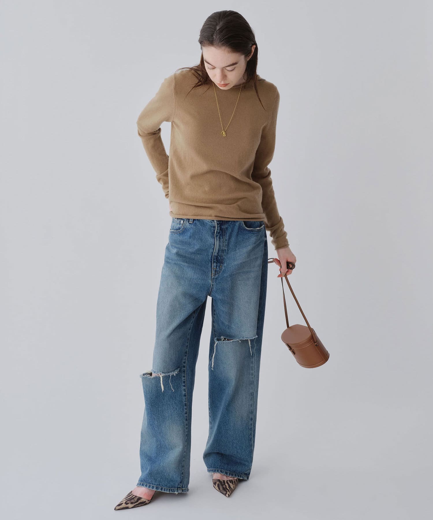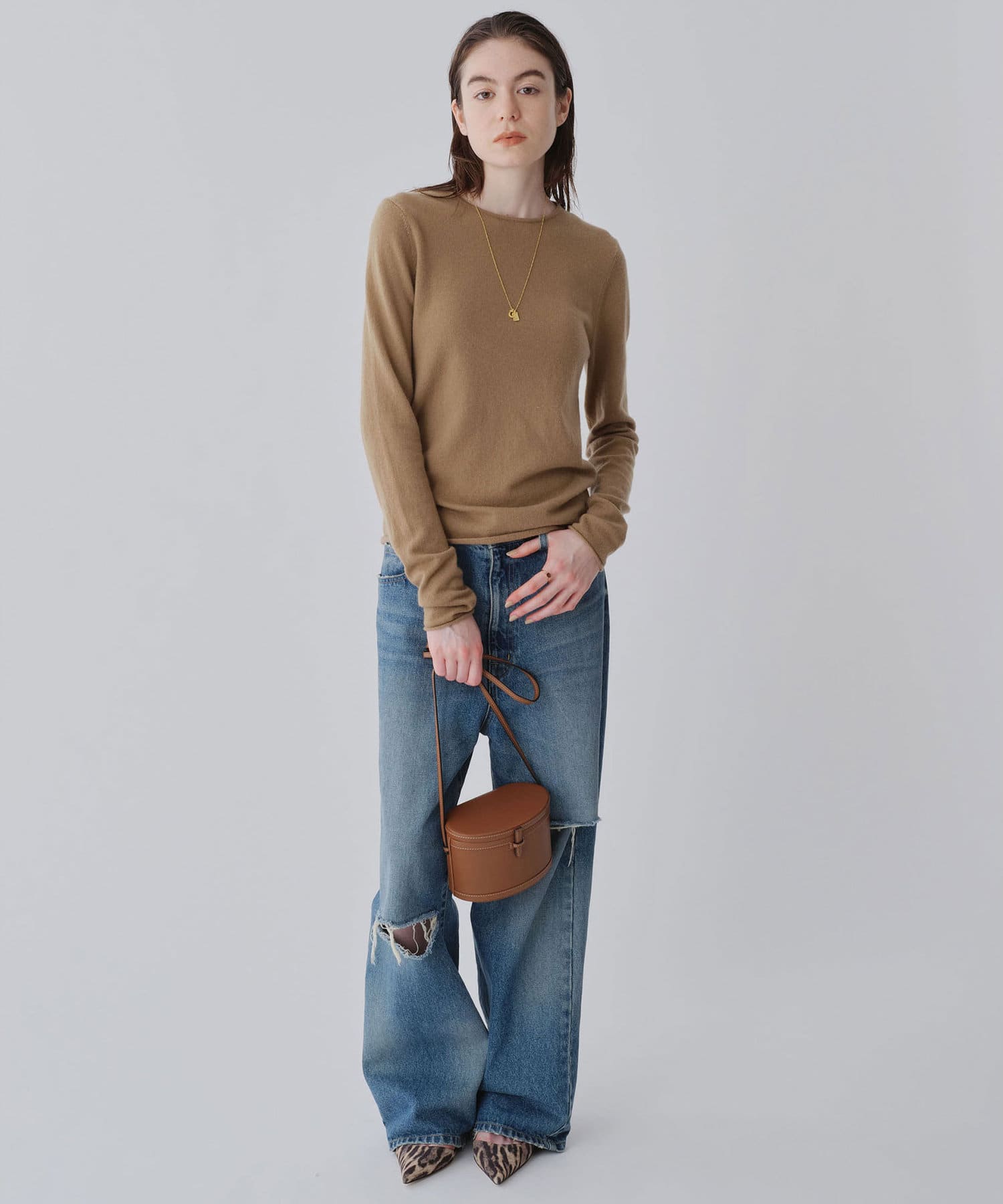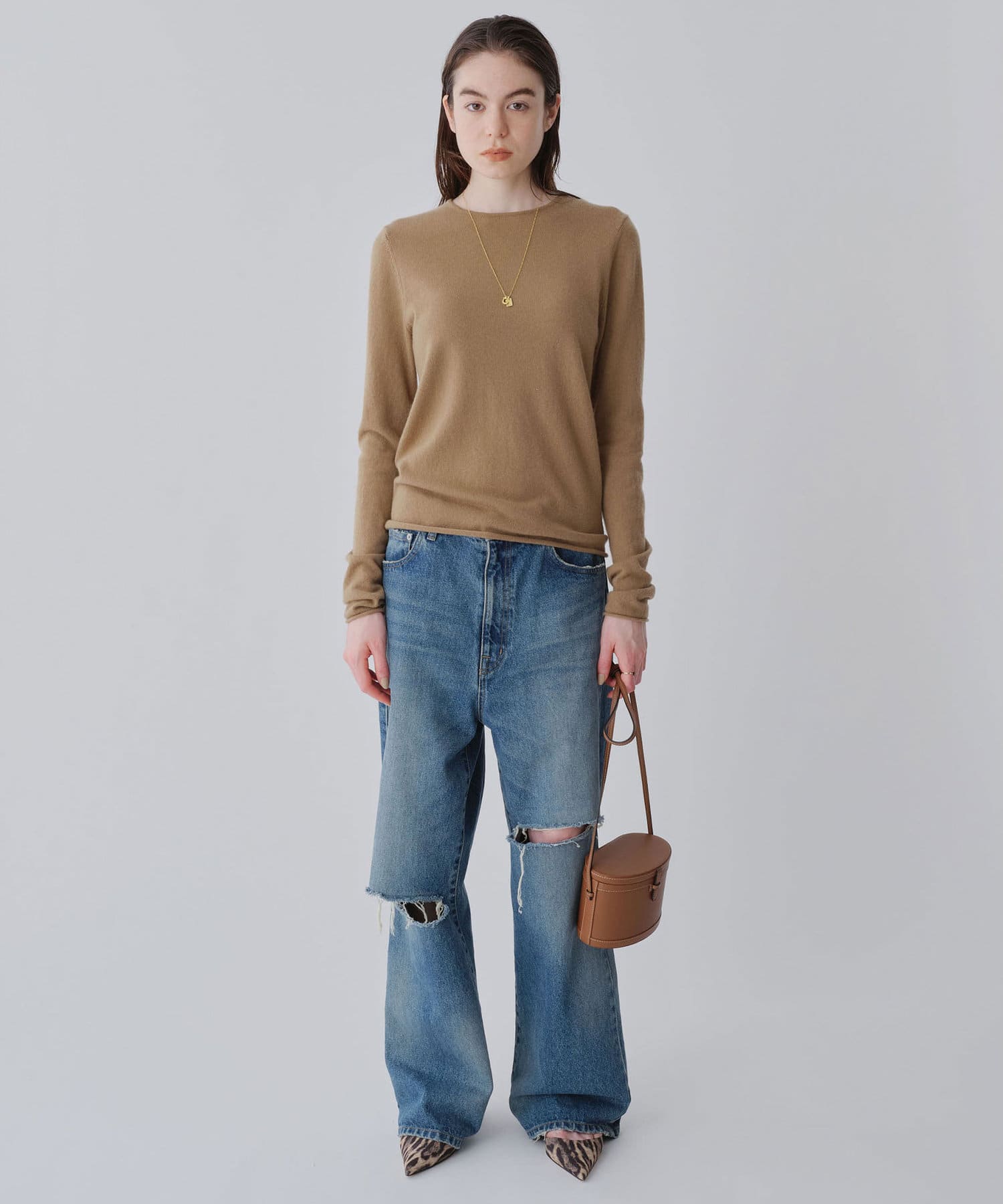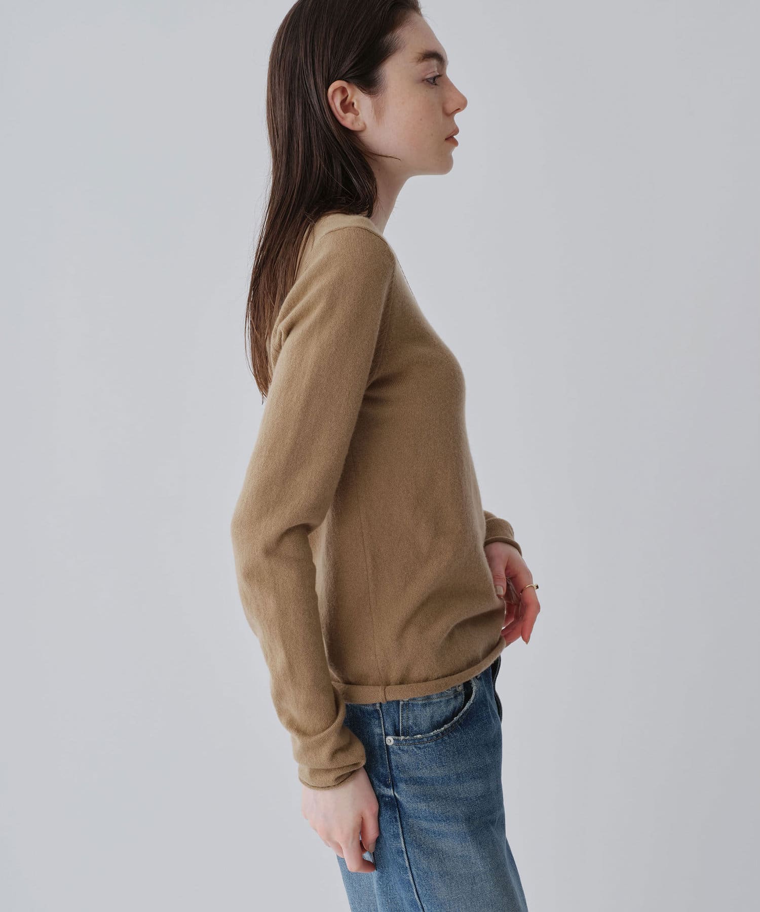 ロンTEE感覚で使える、シンプルなカシミヤニット