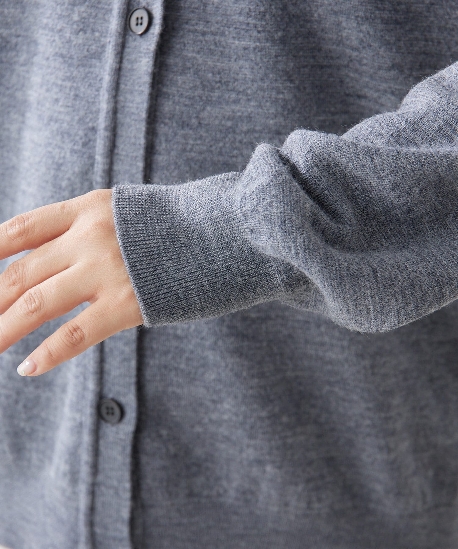 ■しっかりとした生地感のミラノリブで編み上げたニットカーディガン。