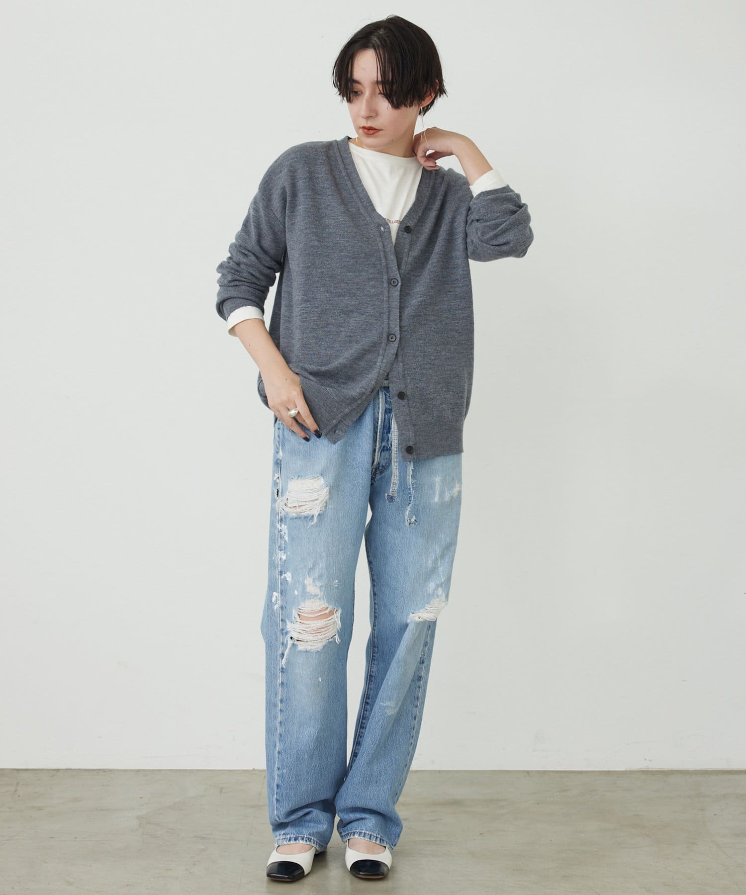 ■カットソーやシャツの上からさらりと羽織ったり、ボタンを留めてプルオーバーのように楽しむのもおすすめ。