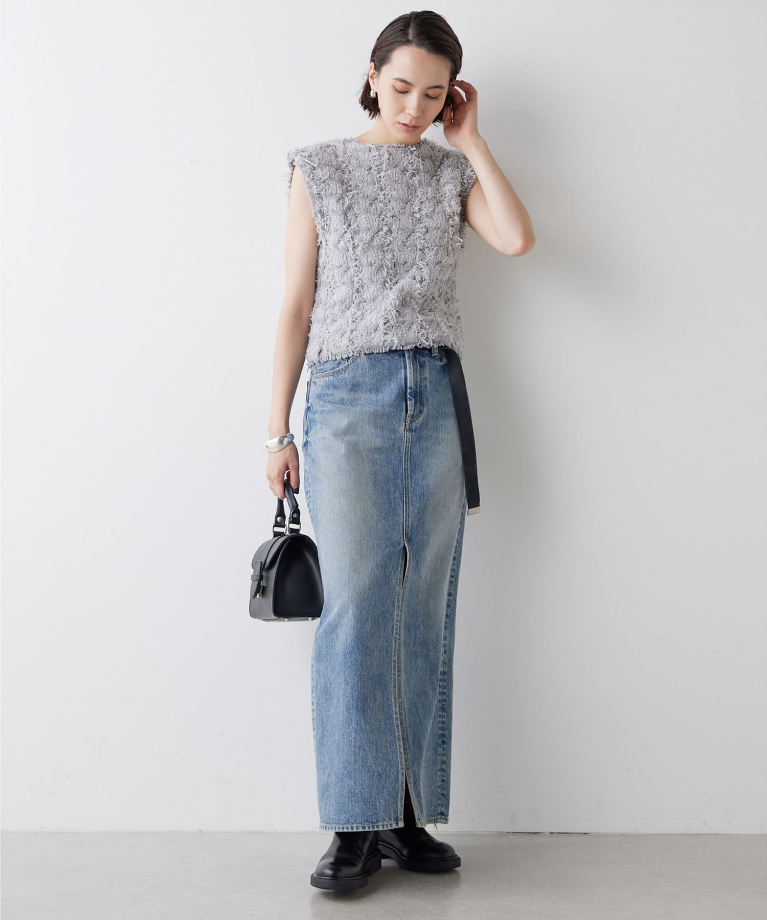 ■ノースリーブトップスとしてはもちろん、シャツやブラウス、カットソーとレイヤードするのもおすすめ。