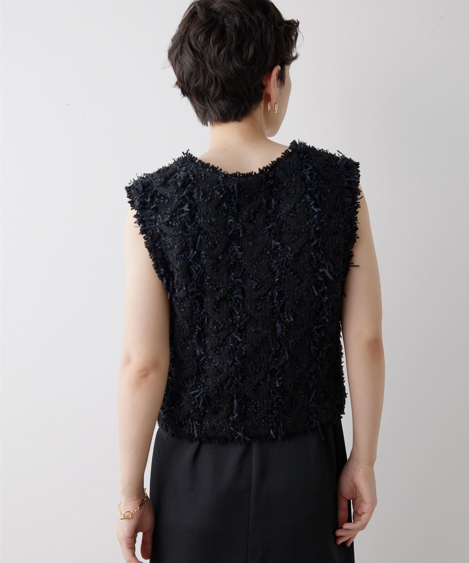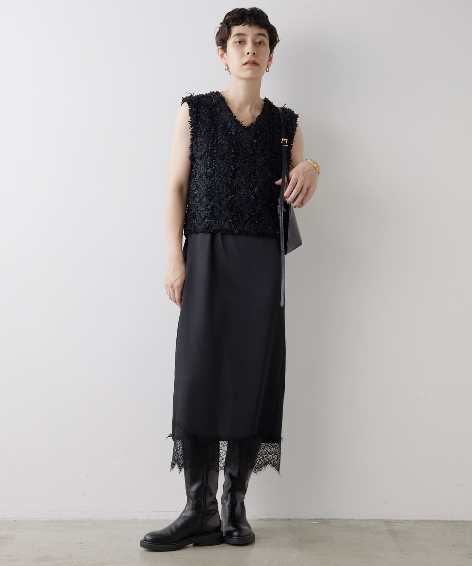 ロングシーズン楽しめる、ミニマルなツイードニットベスト