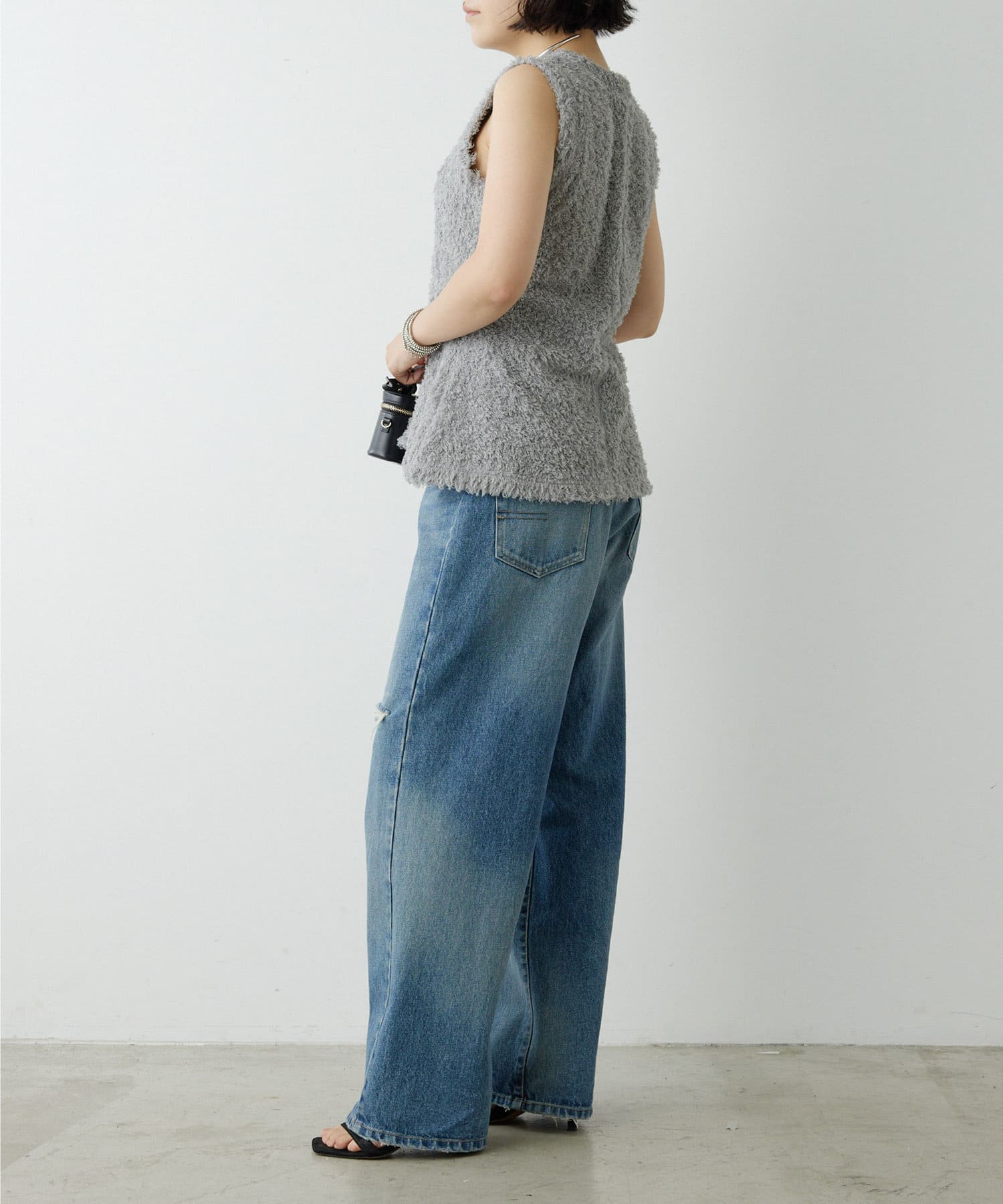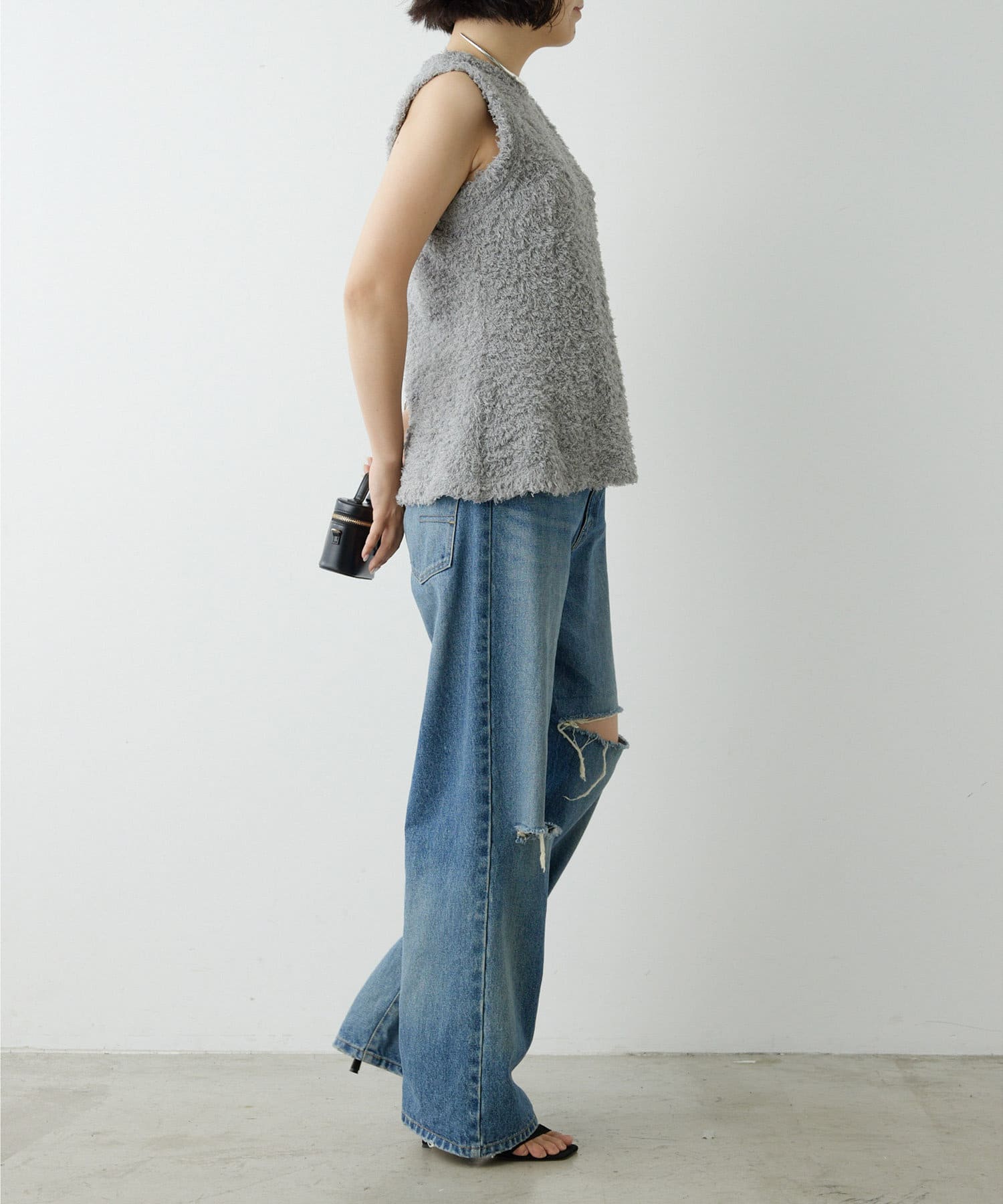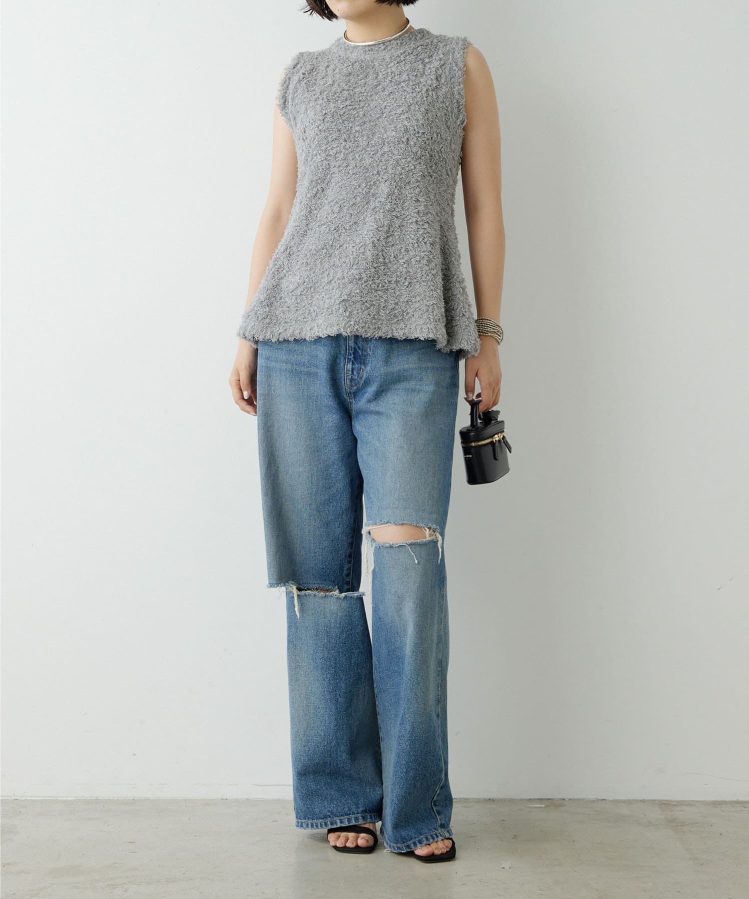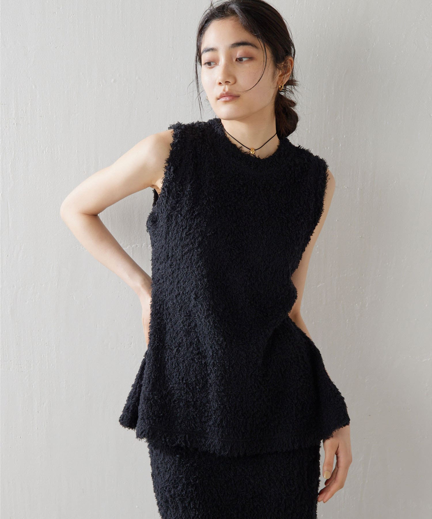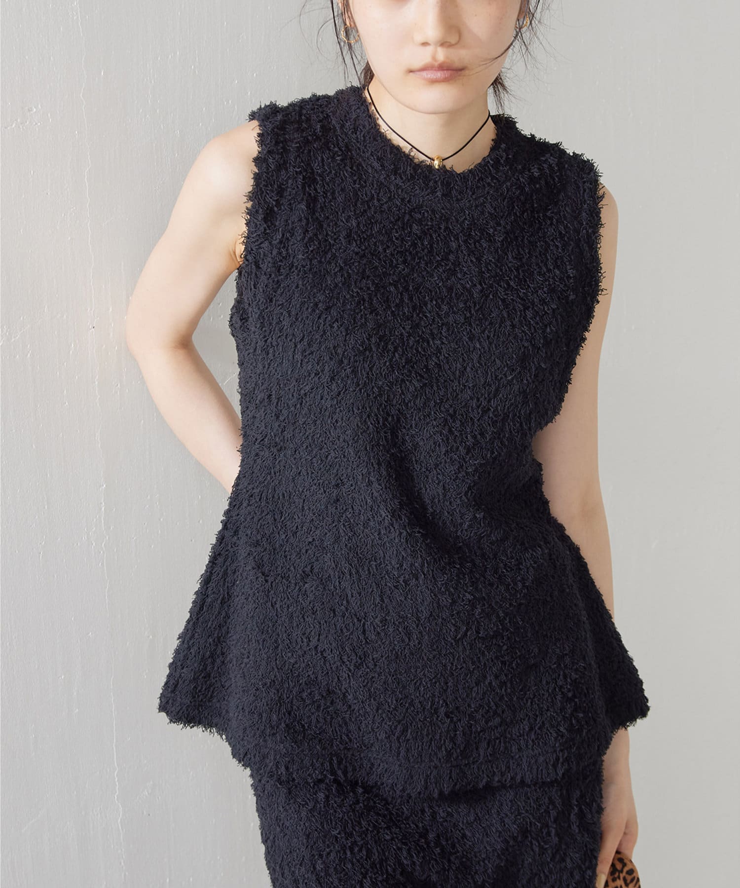 ■パイル素材の表情がポイントのノースリーブプルオーバー。