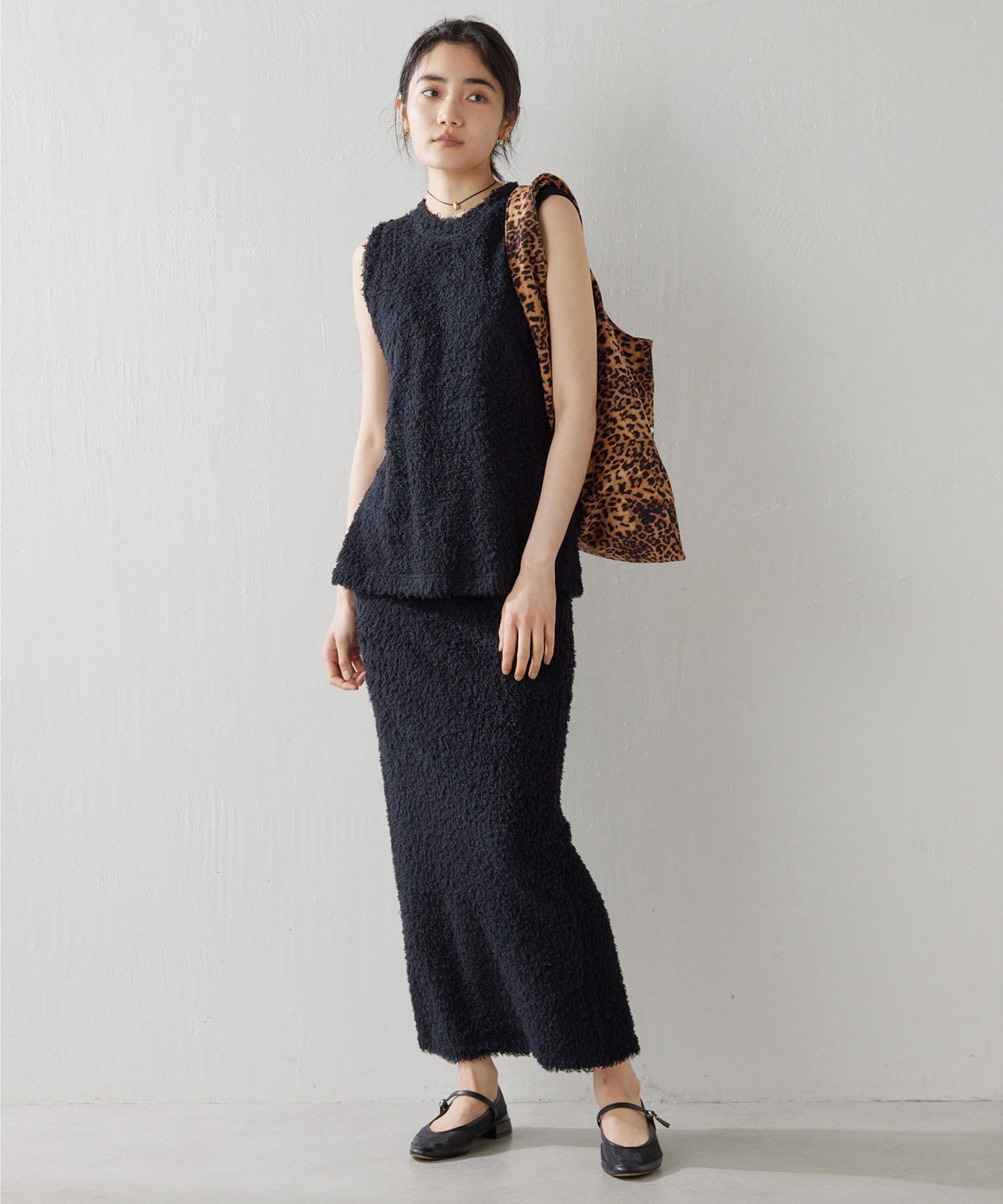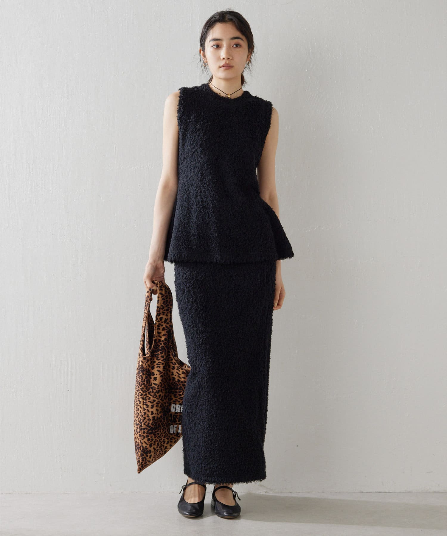 ■同素材のロングパイルスカート(ブランド品番:WGZ1042101A0007)とのセットアップもおすすめ。