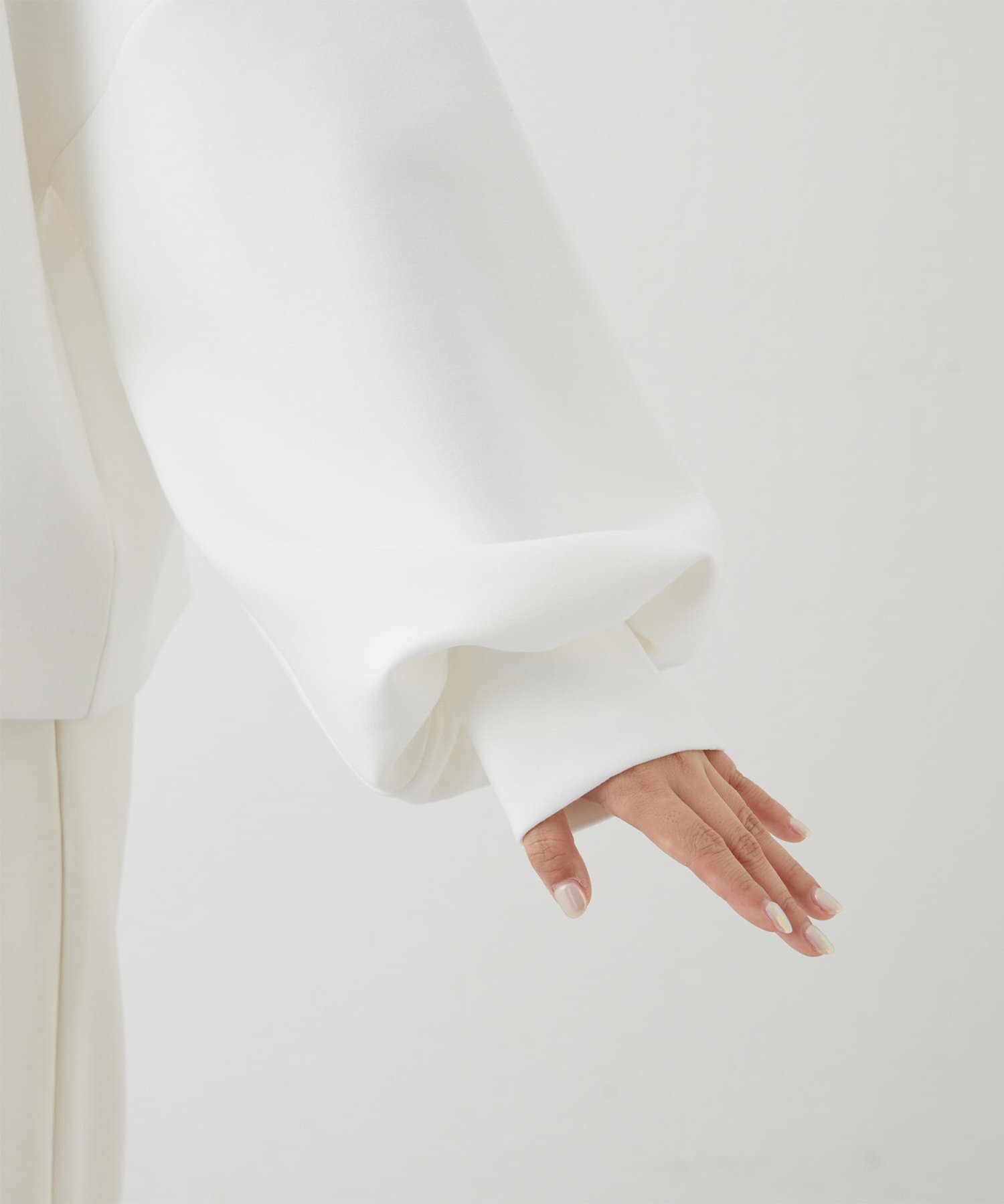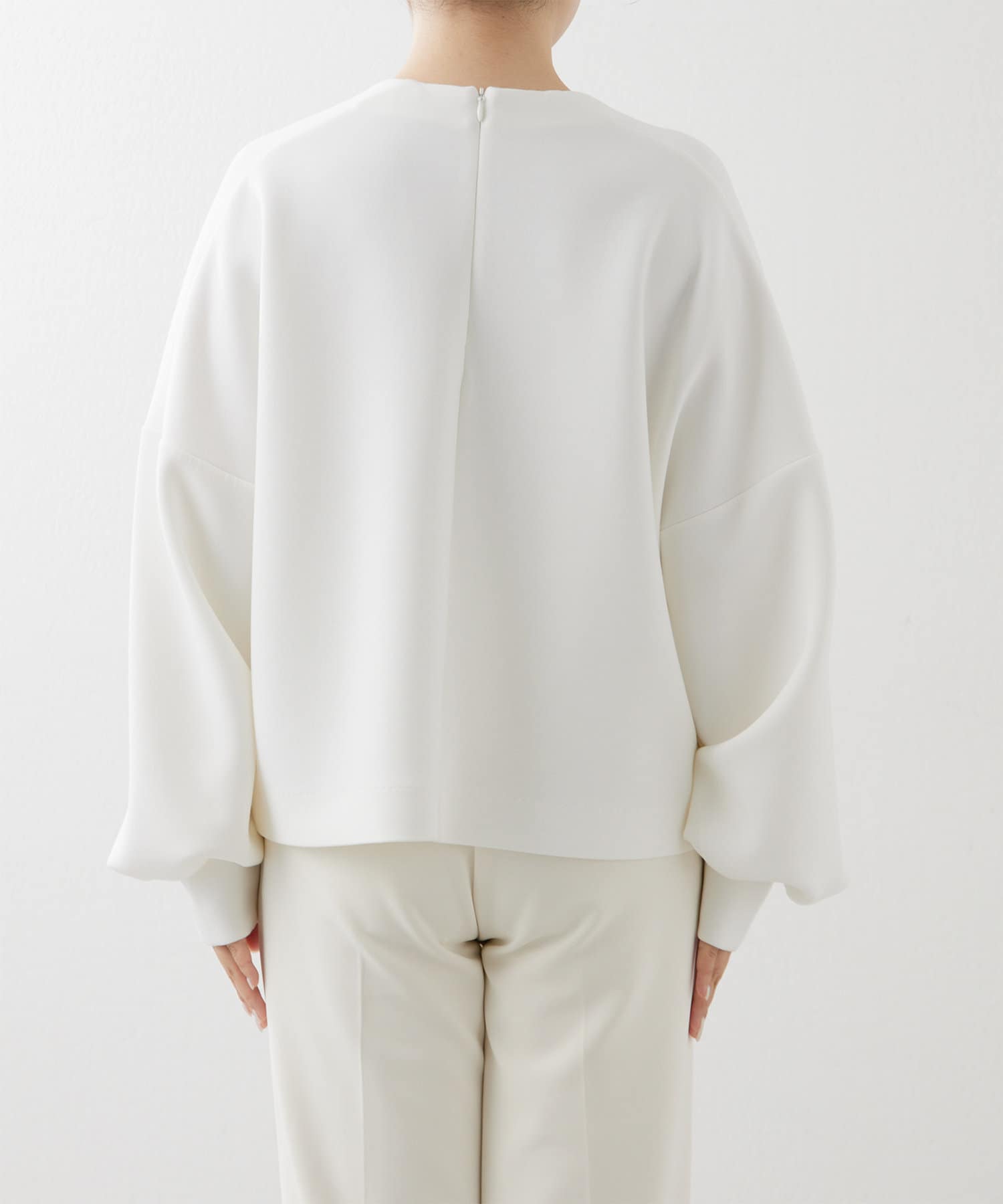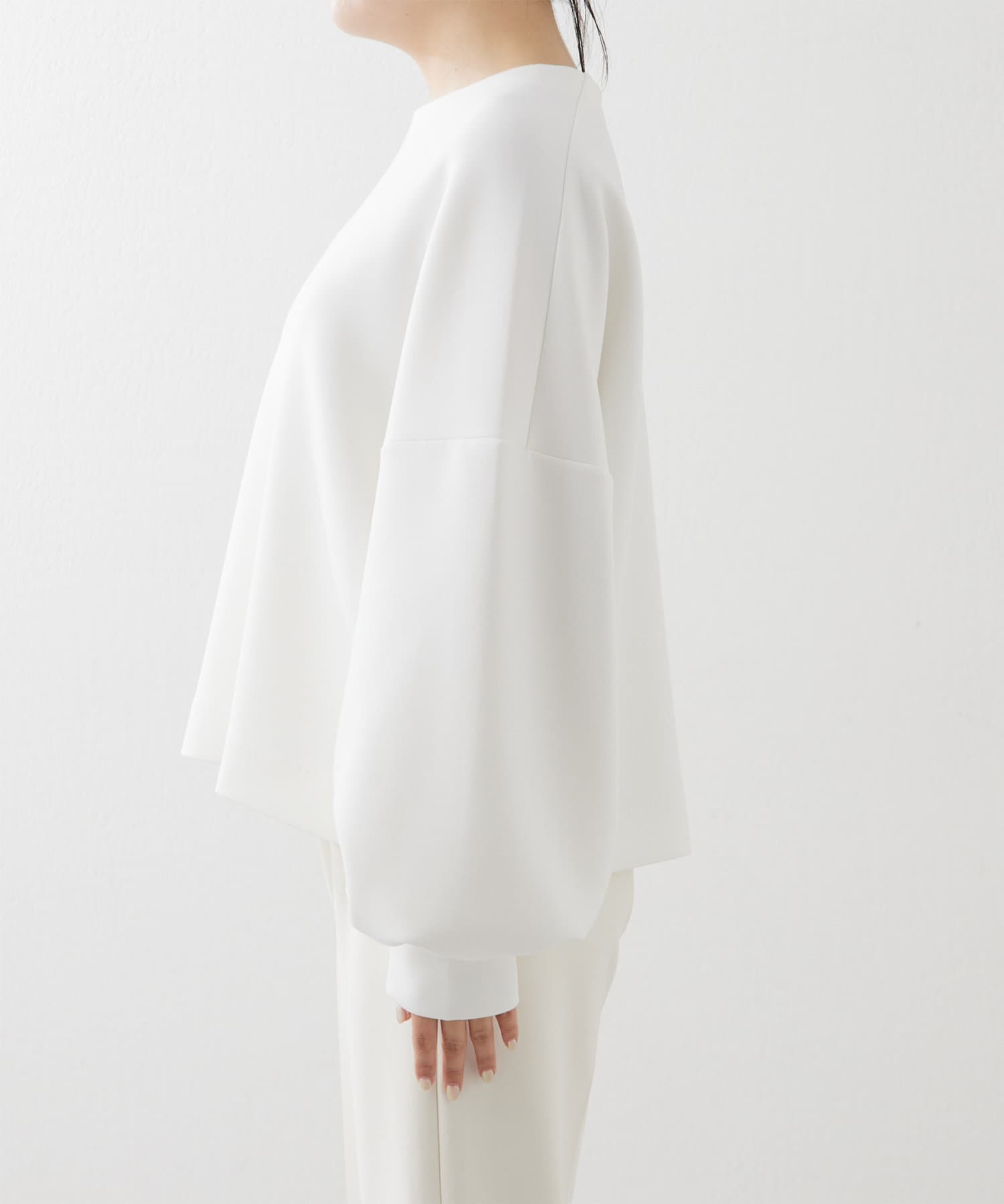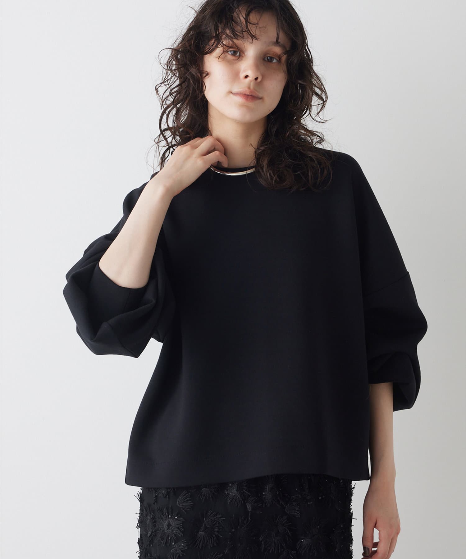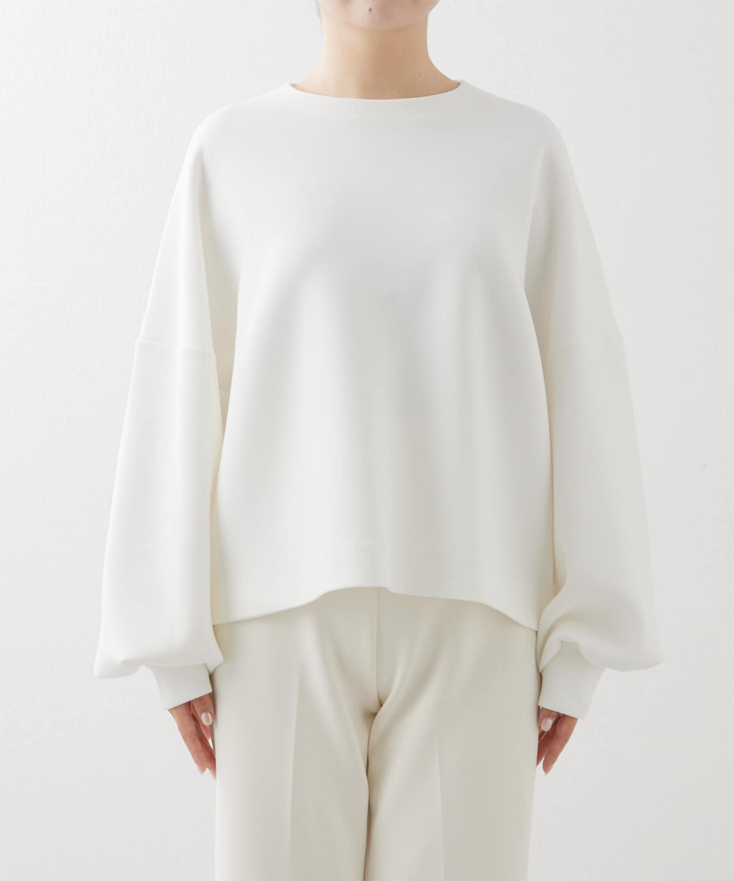 ■オーバーシルエットでリラックス感を出しつつ、ふんわりとしたスリーブで女性らしさをプラス。