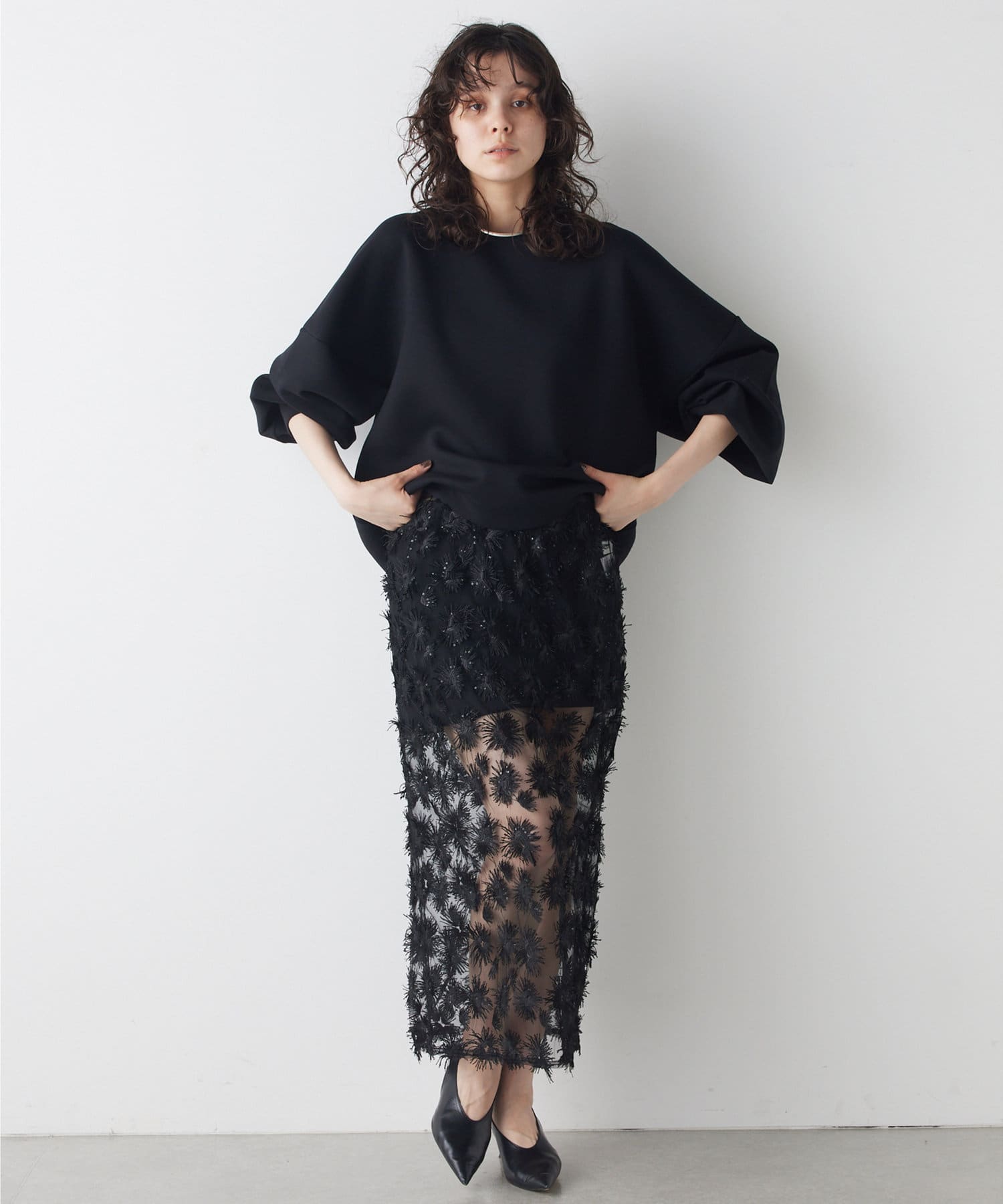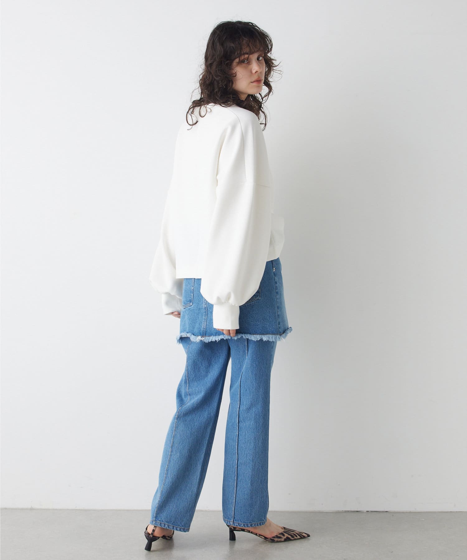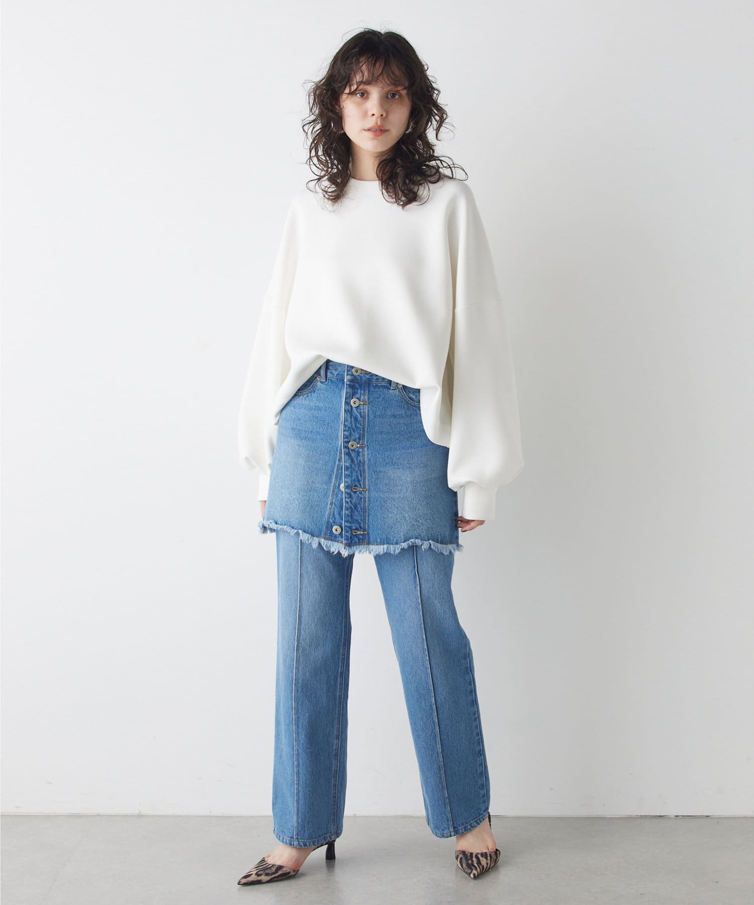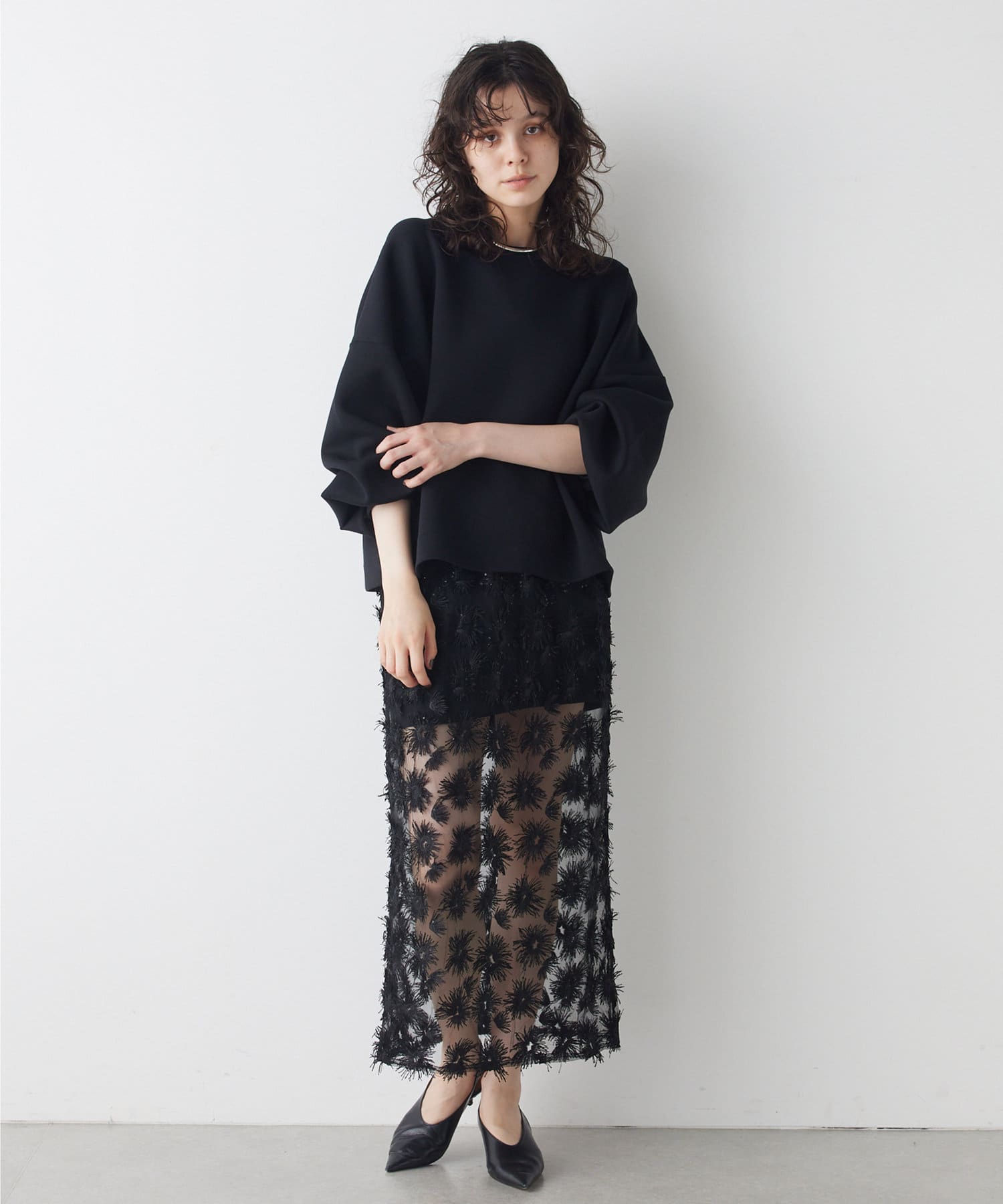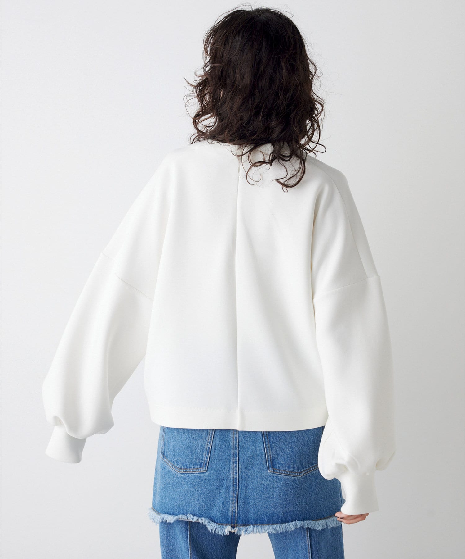 ■オーバーシルエットでリラックス感を出しつつ、ふんわりとしたスリーブで女性らしさをプラス。