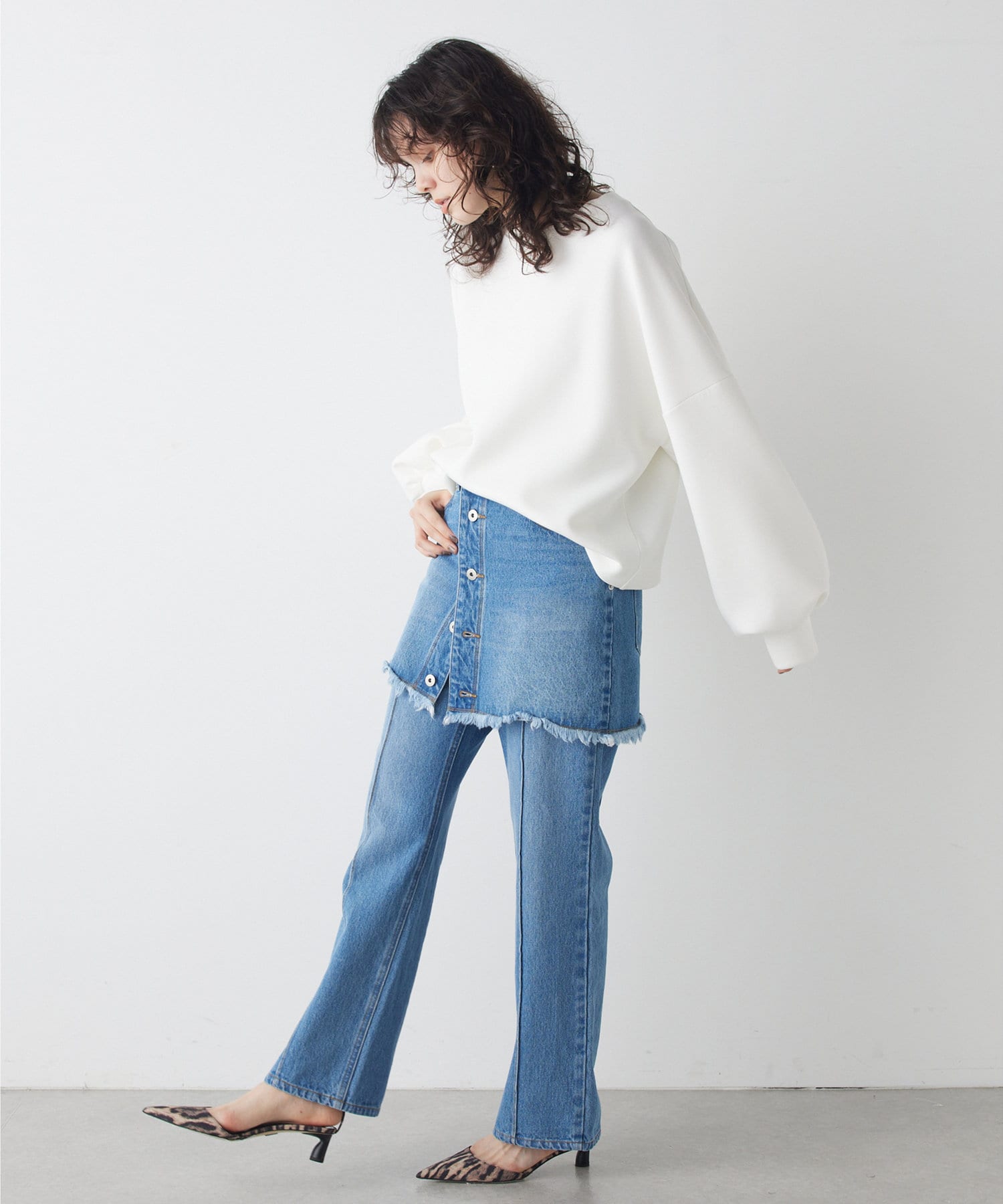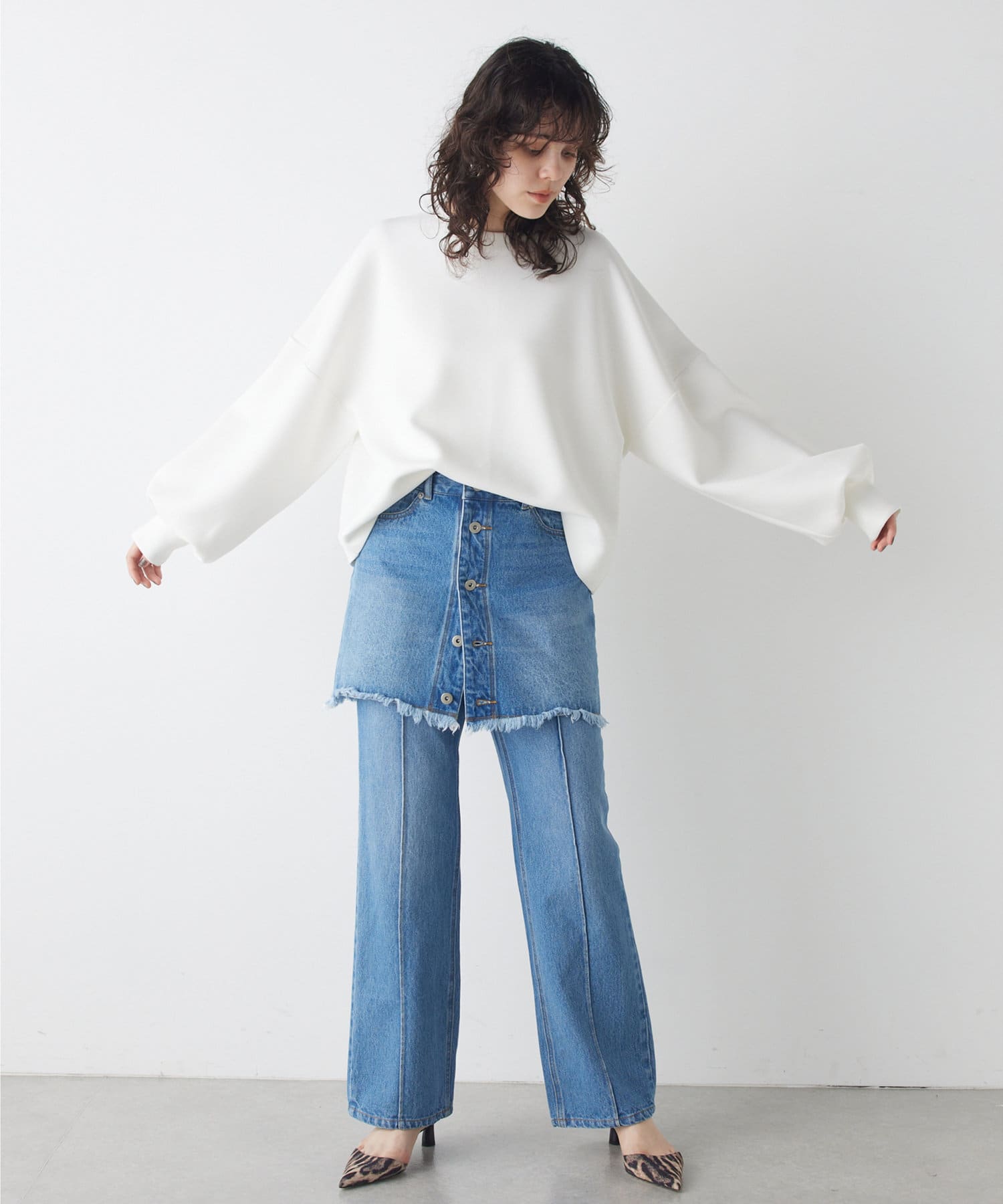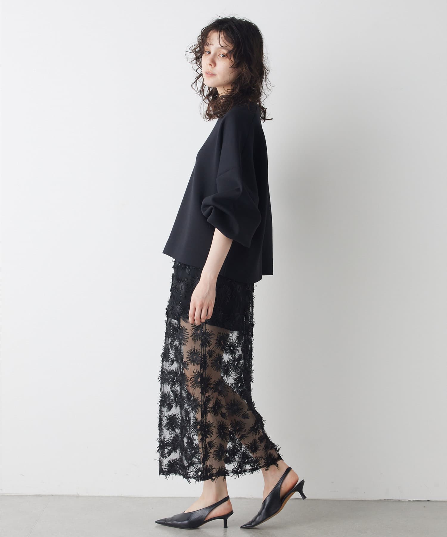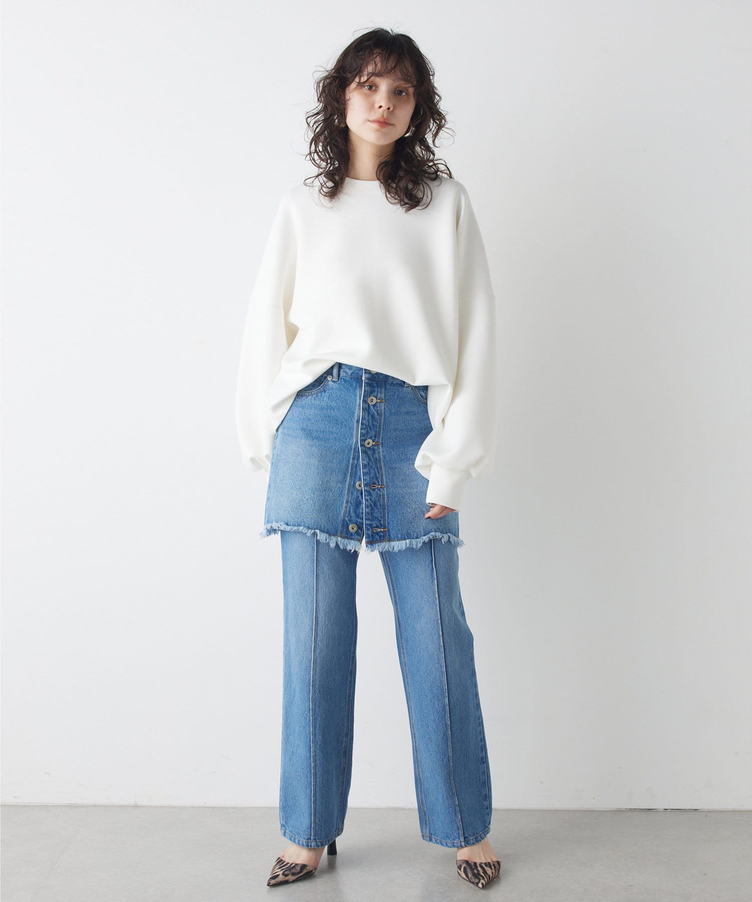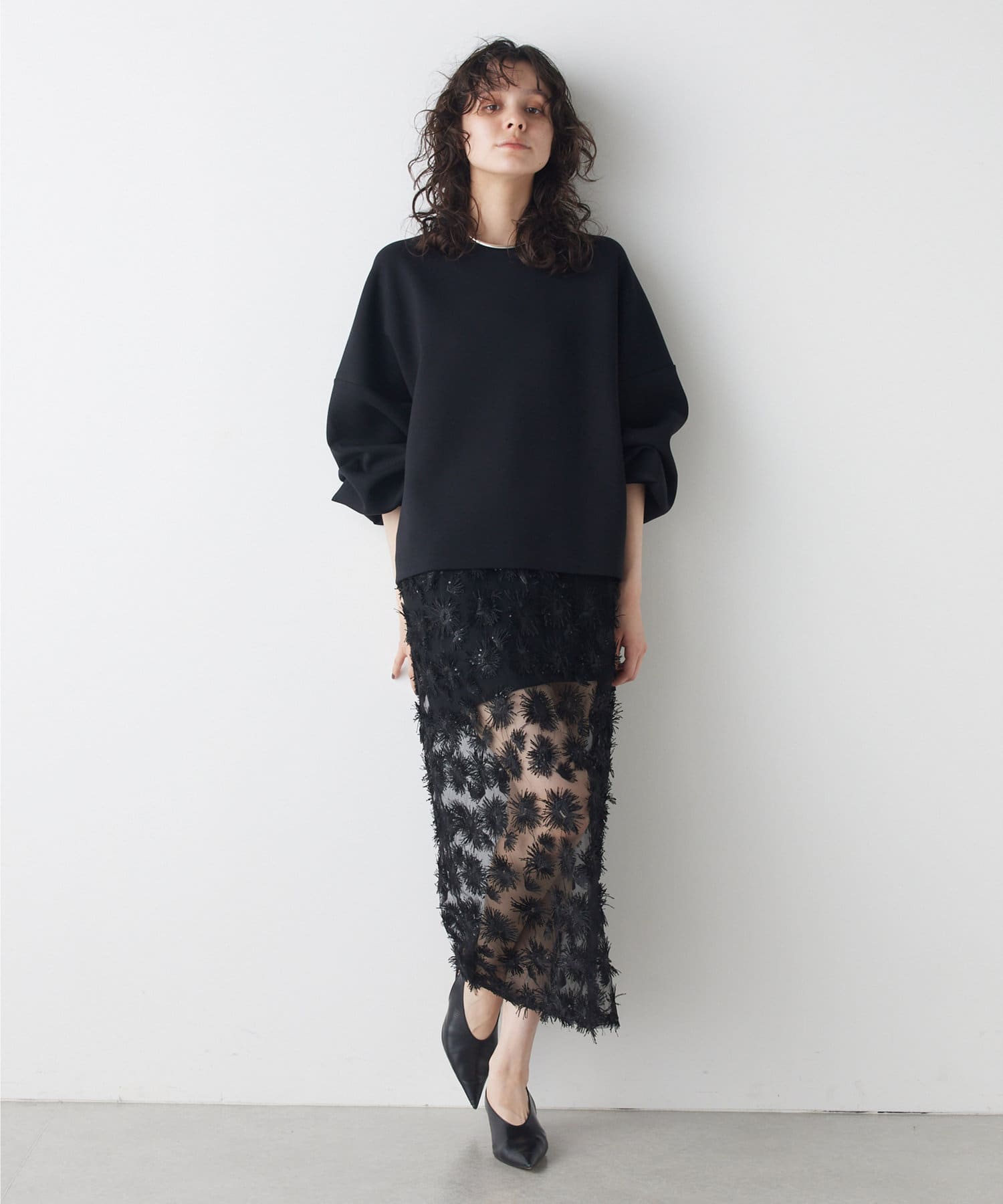 ■オーバーシルエットでリラックス感を出しつつ、ふんわりとしたスリーブで女性らしさをプラス。