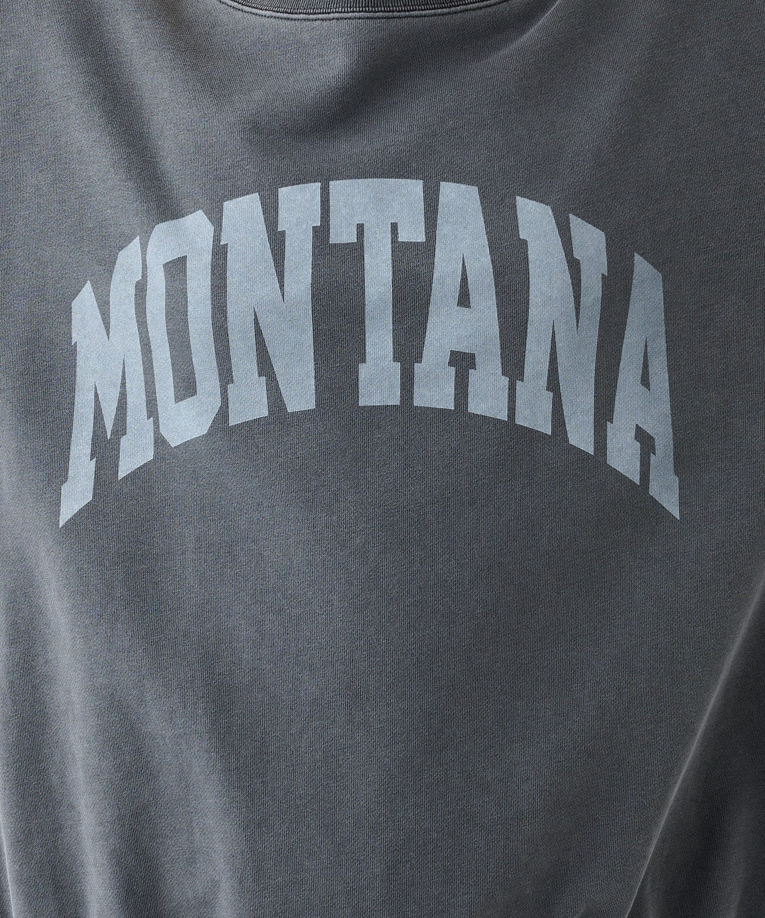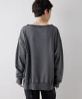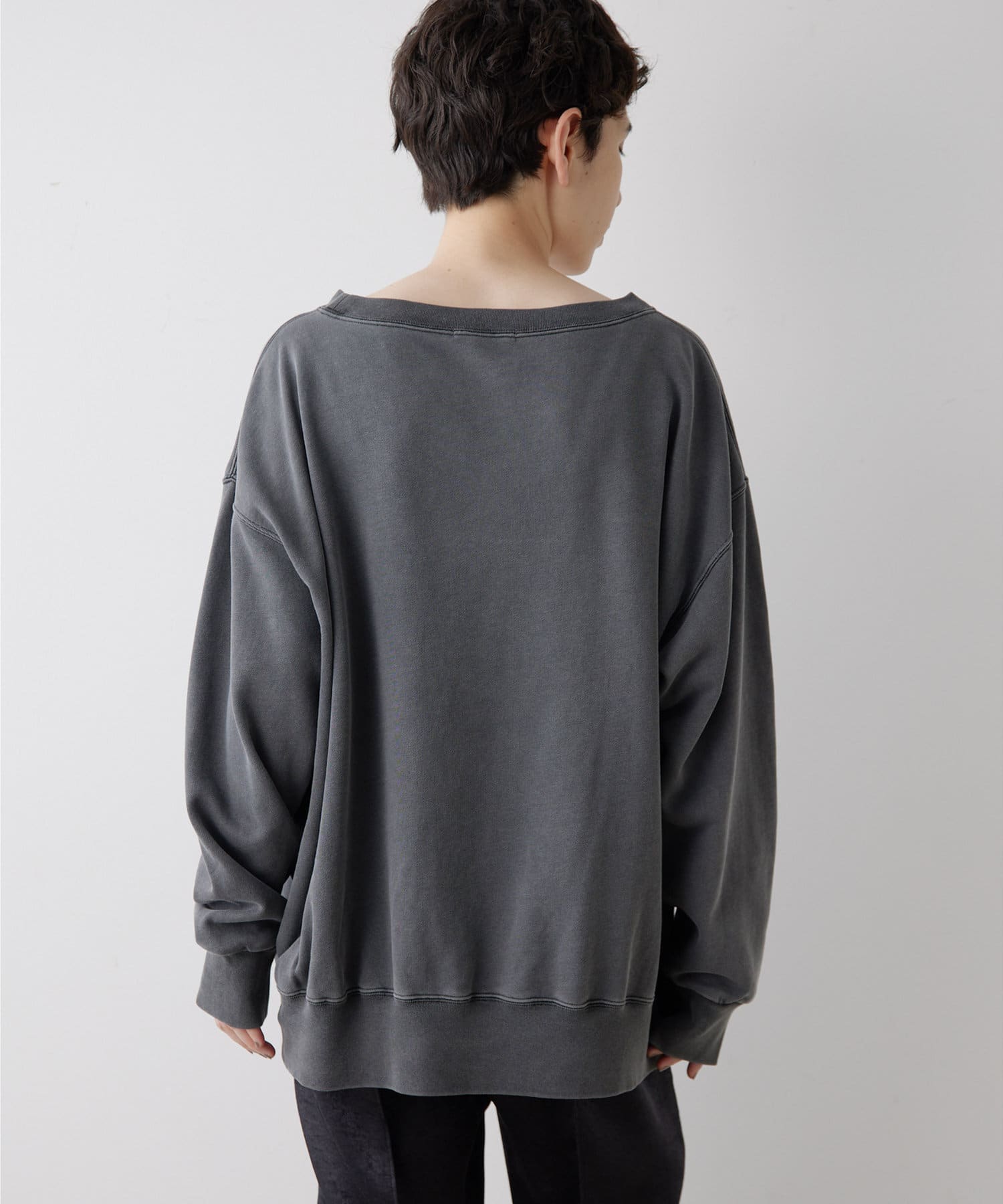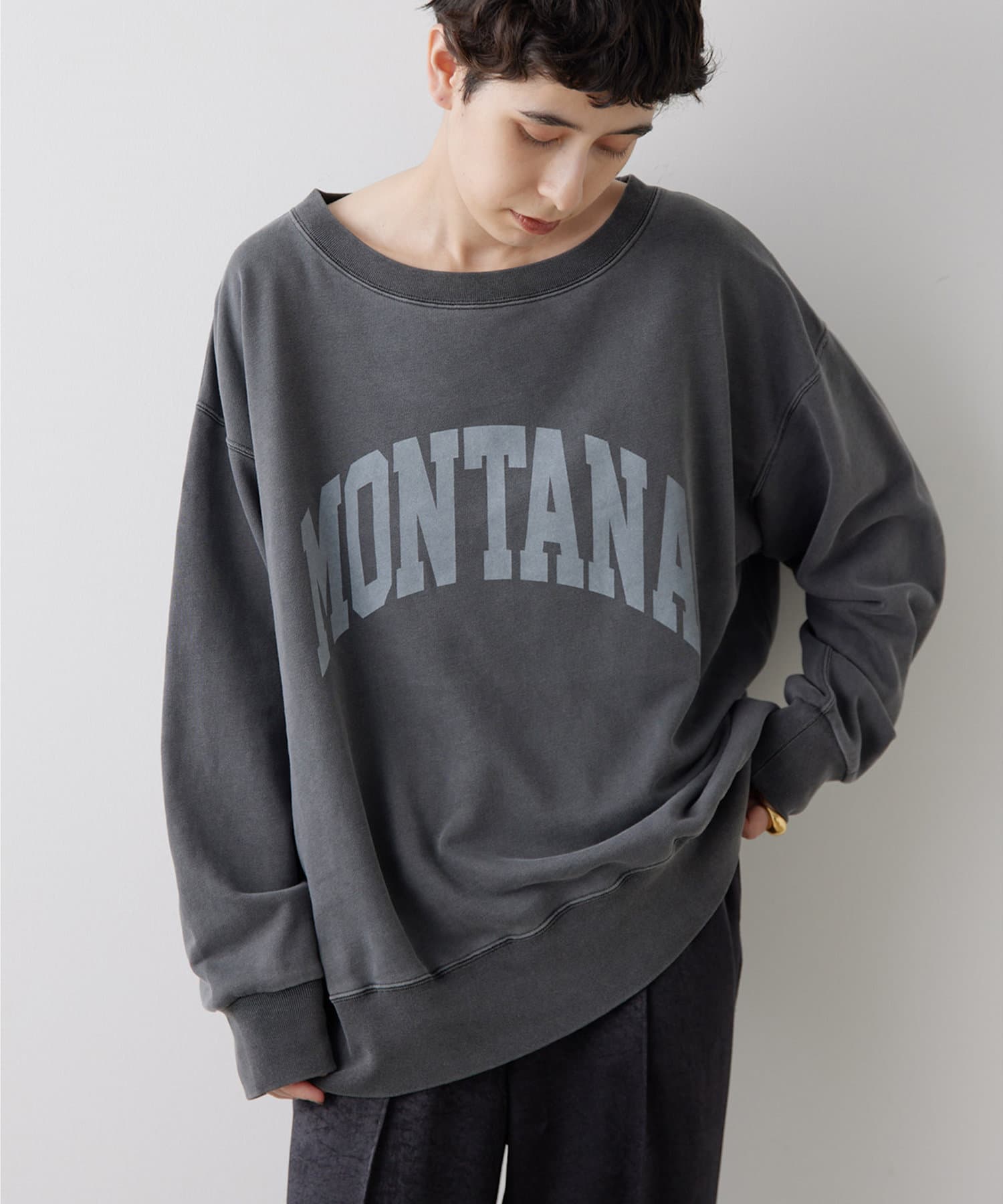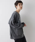 毛羽たちが少ない糸を使用した裏毛素材にピグメント加工をする事により、絶妙なムラ感と風合いを表現した生地。