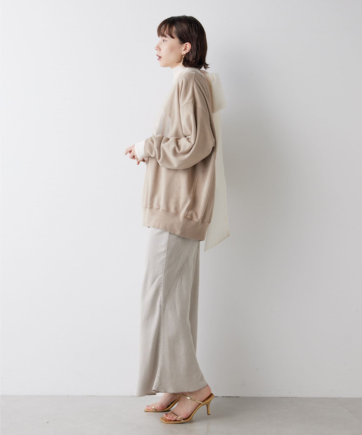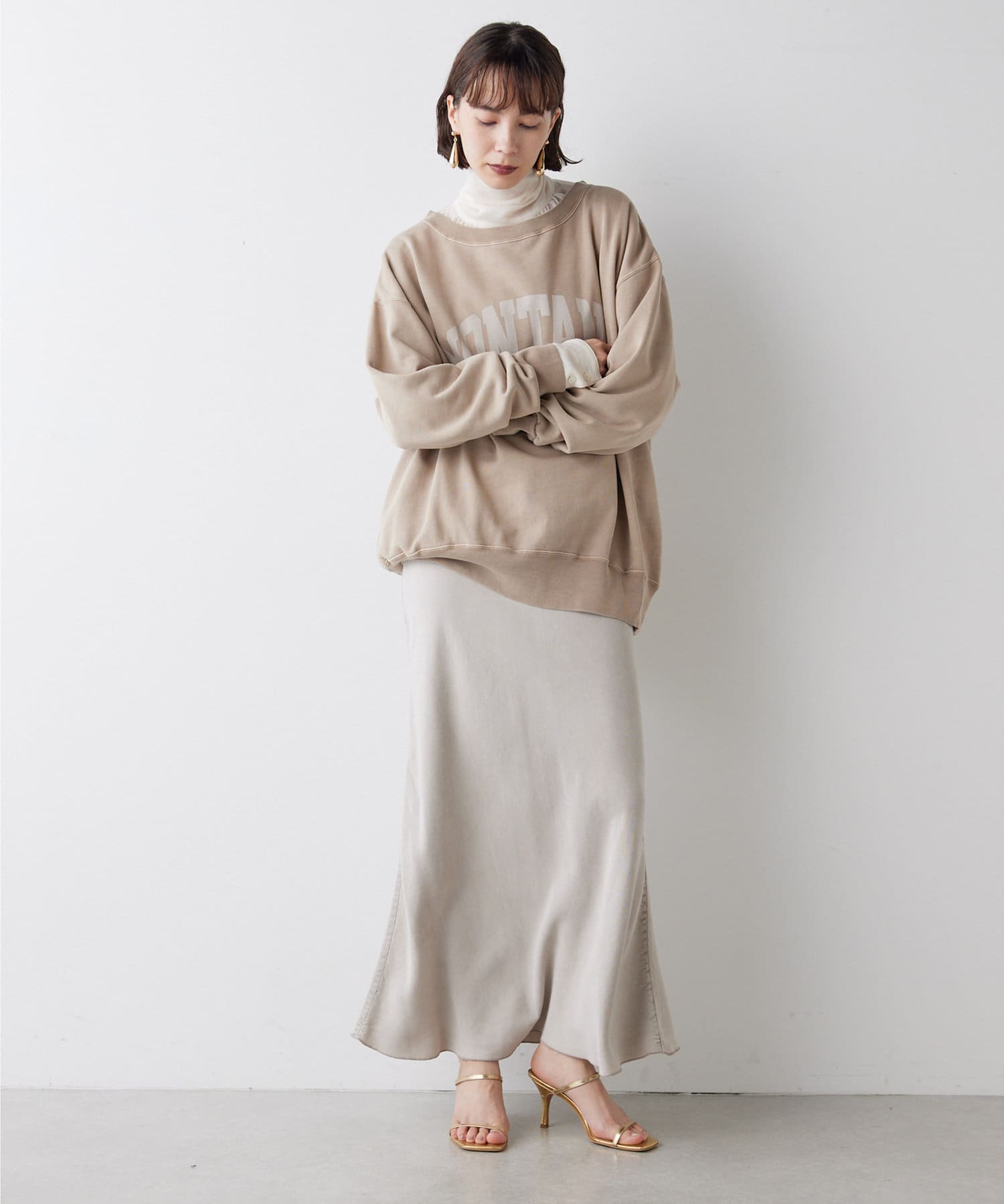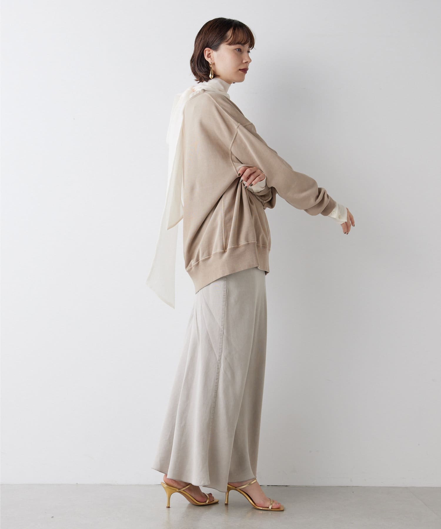 ■ゆったりとしたネックラインが女性らしく、ヒップにかかる丈感で気になるラインをカバー。