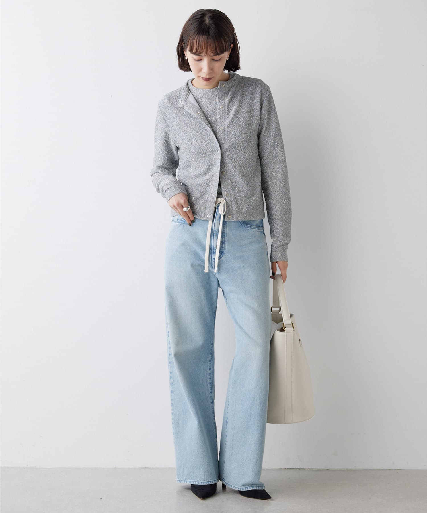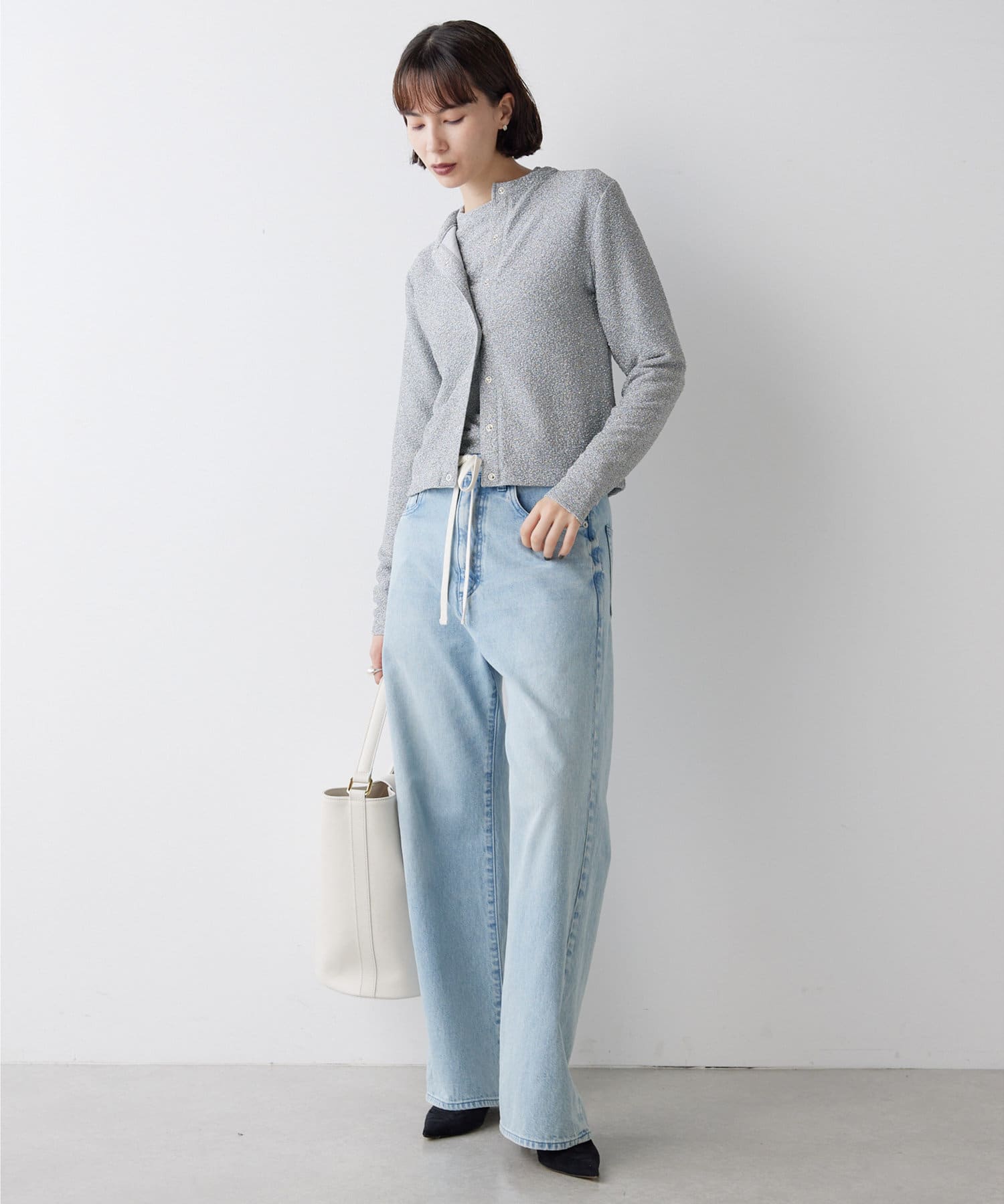 上品な垢抜けコーデが完成する、大人のラメカーディガン