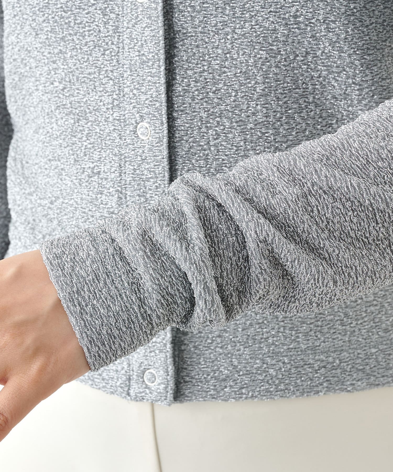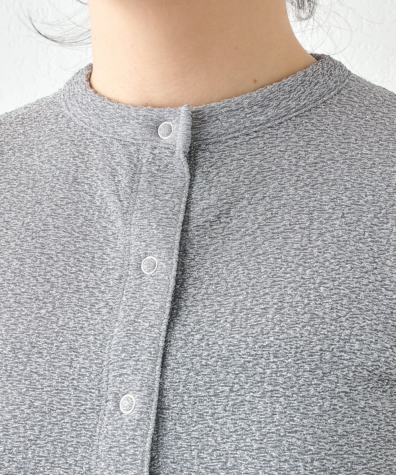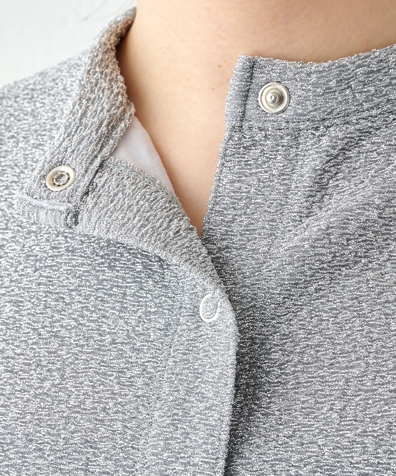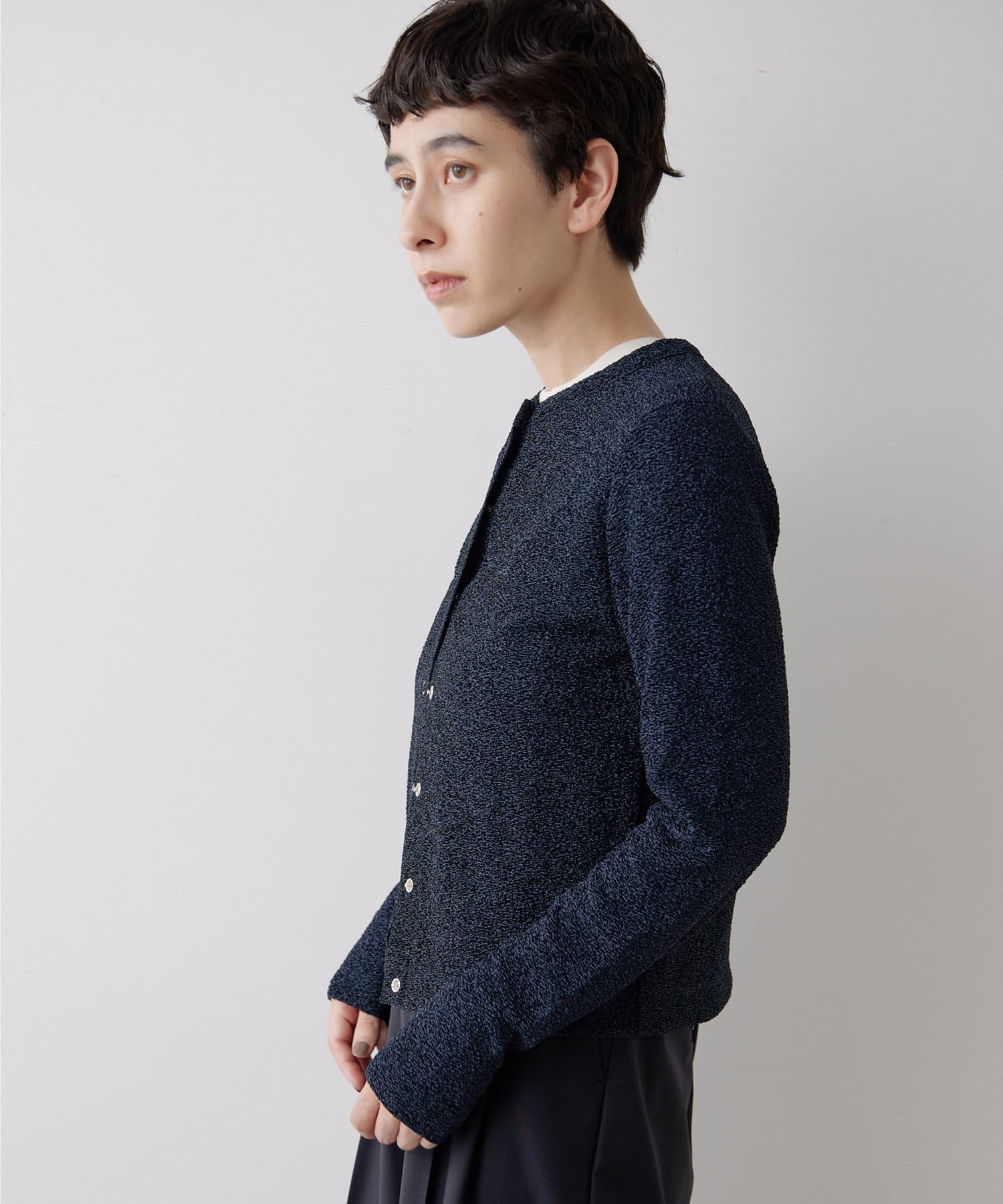 ■ジャカード編み機を使用することで凹凸のある表情に仕上げたラメの表情が魅力。