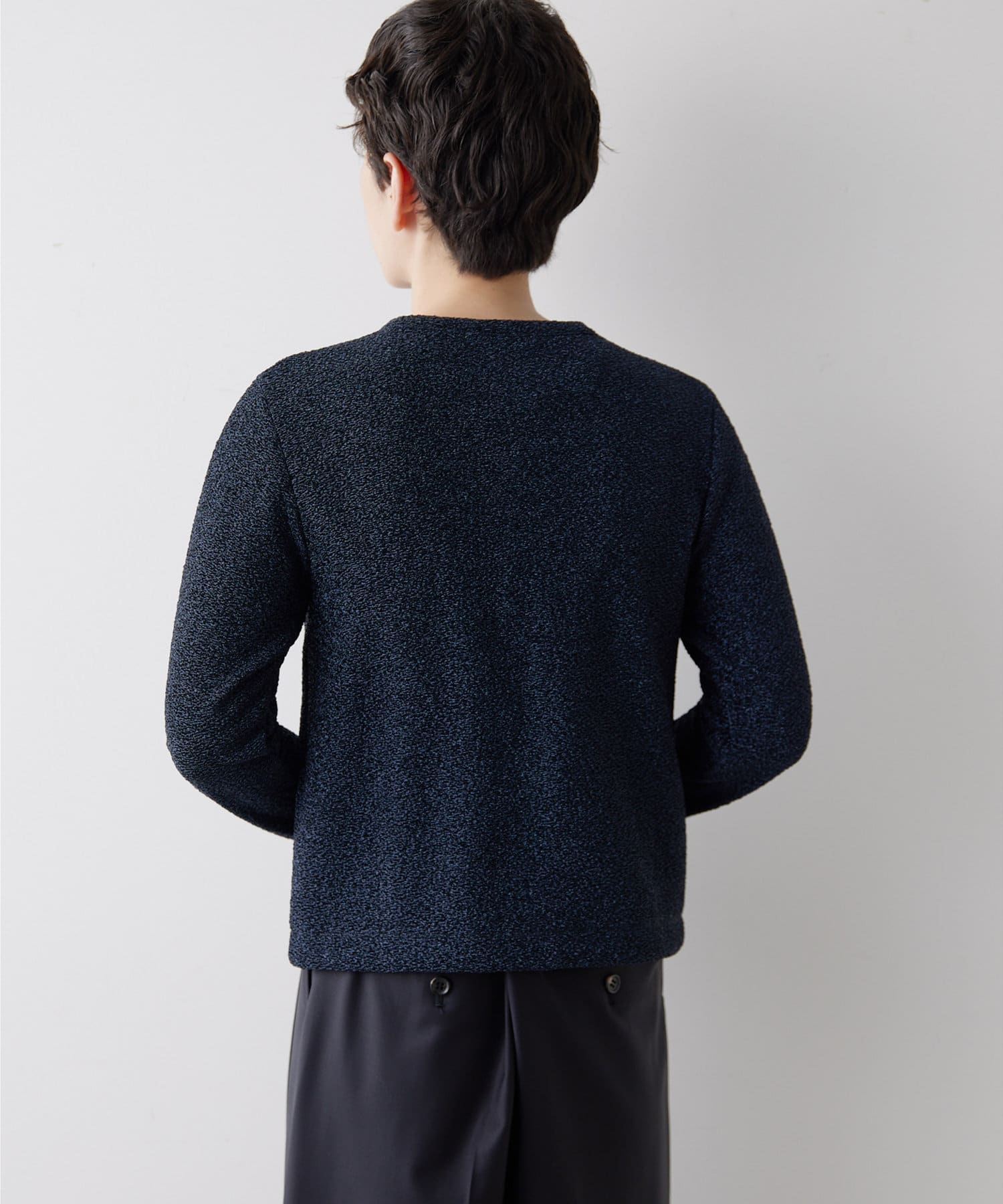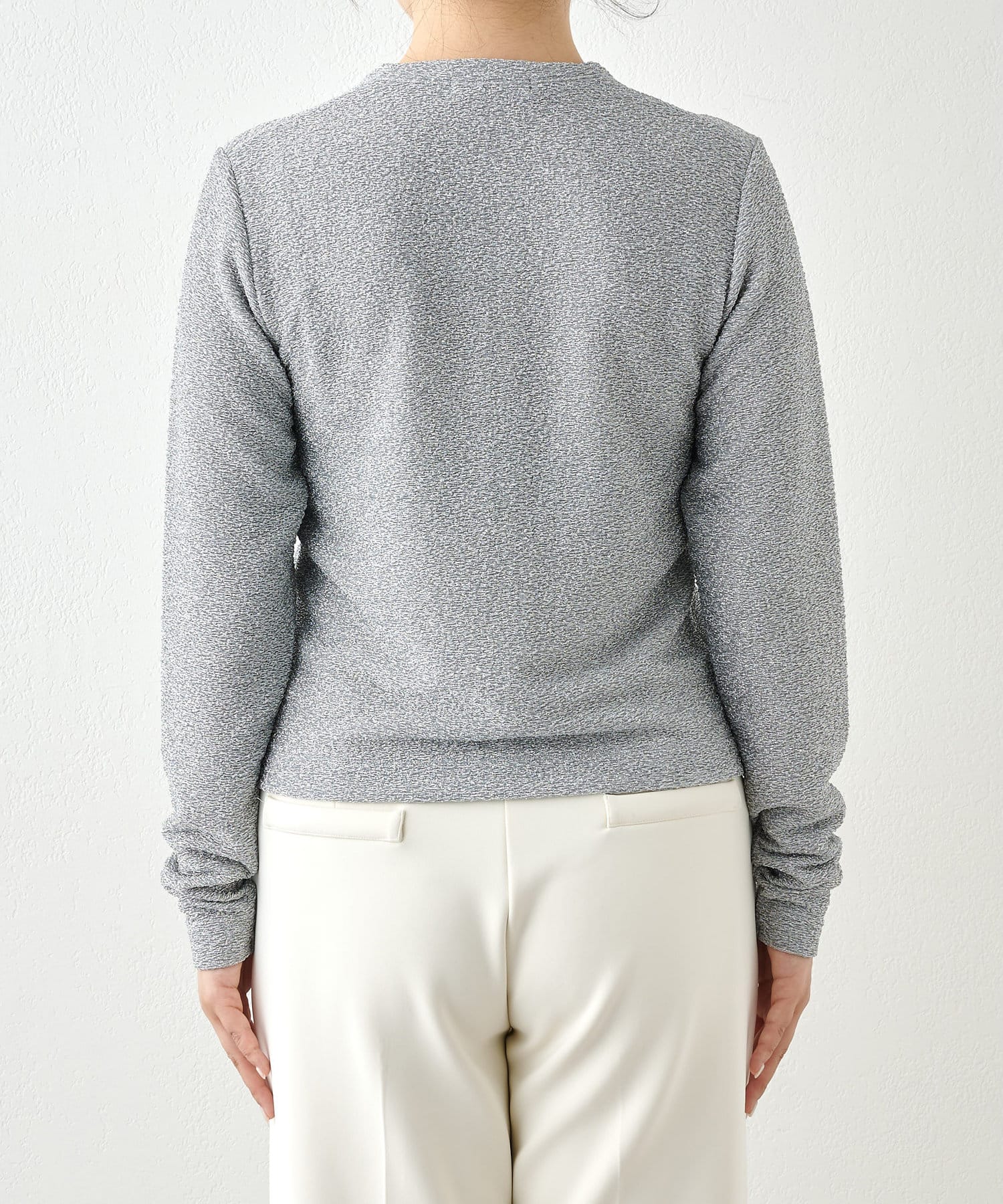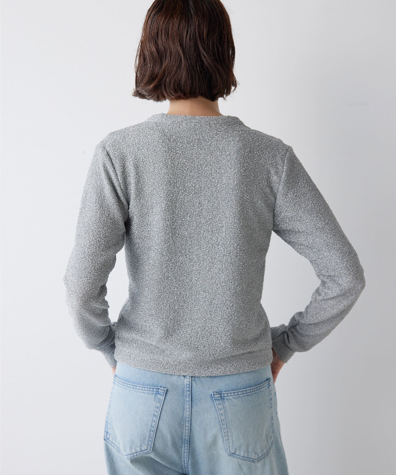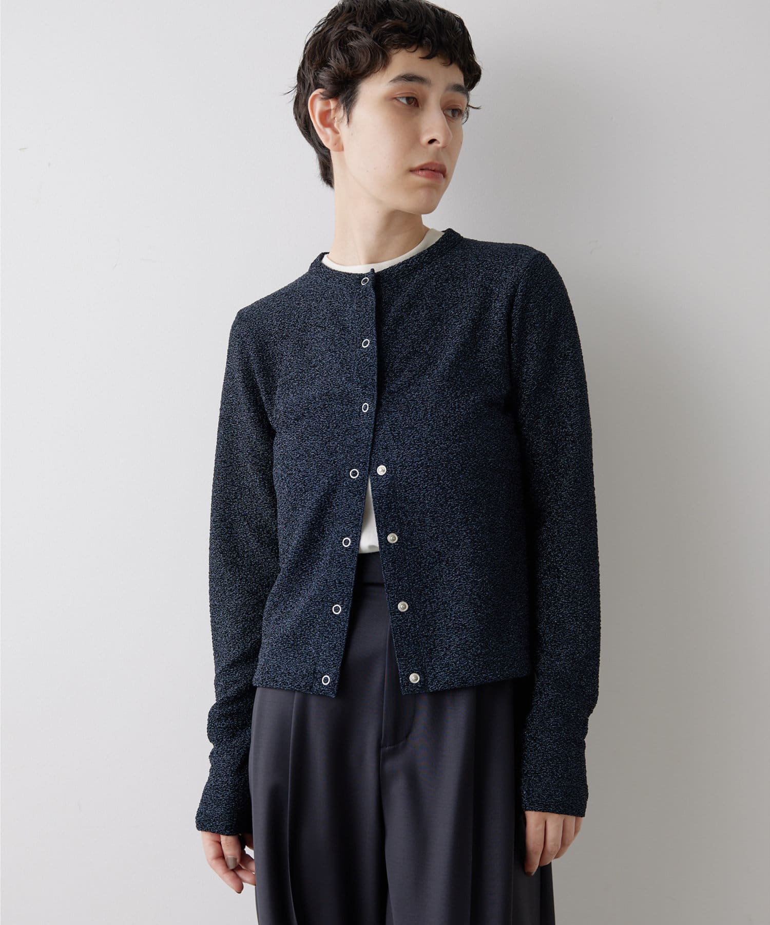 ■ジャカード編み機を使用することで凹凸のある表情に仕上げたラメの表情が魅力。