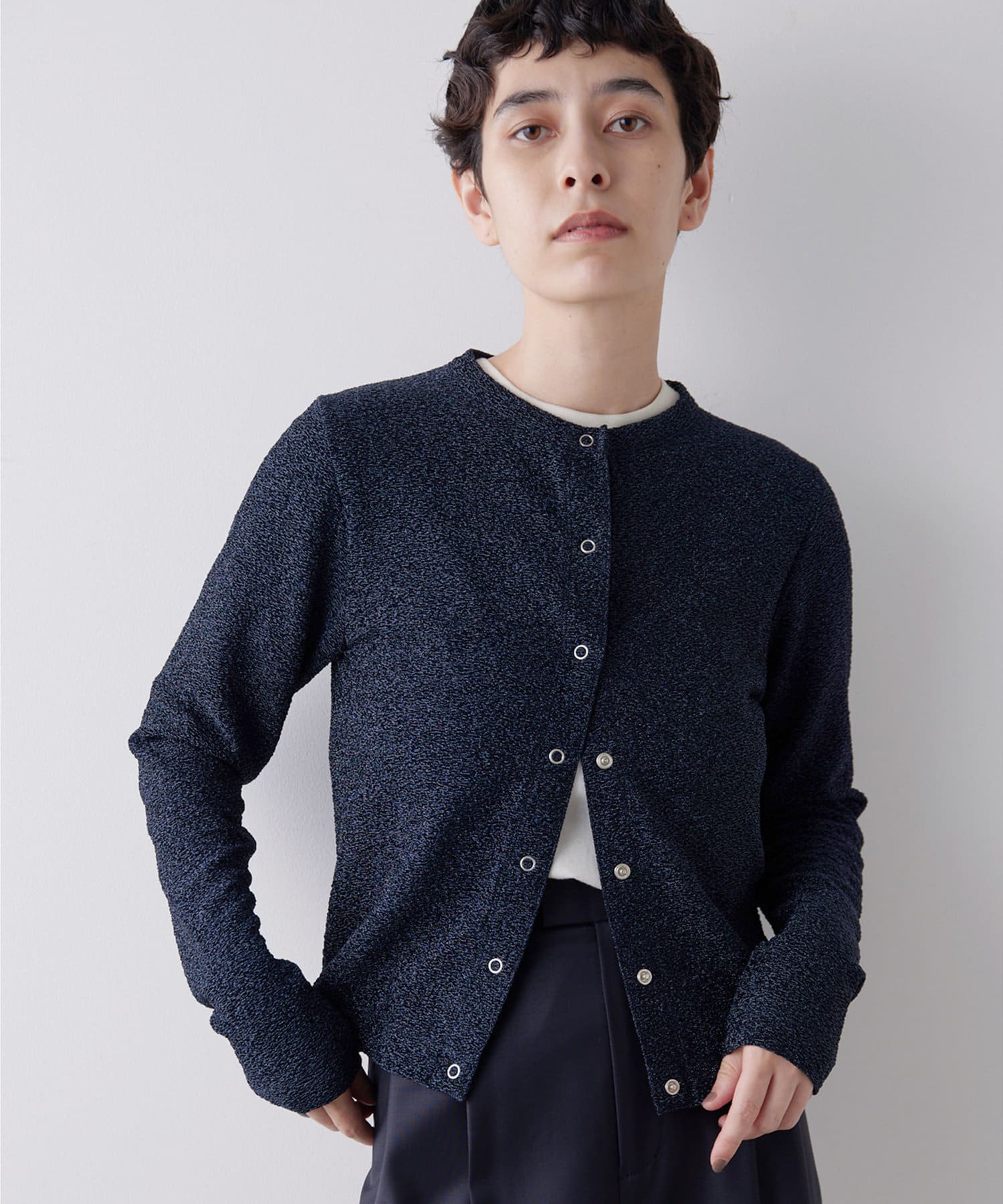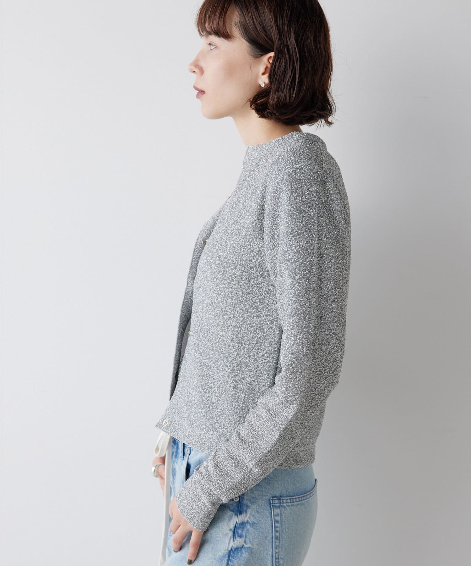 ■キラキラとしたラメの輝きが存在感のあるカーディガン。