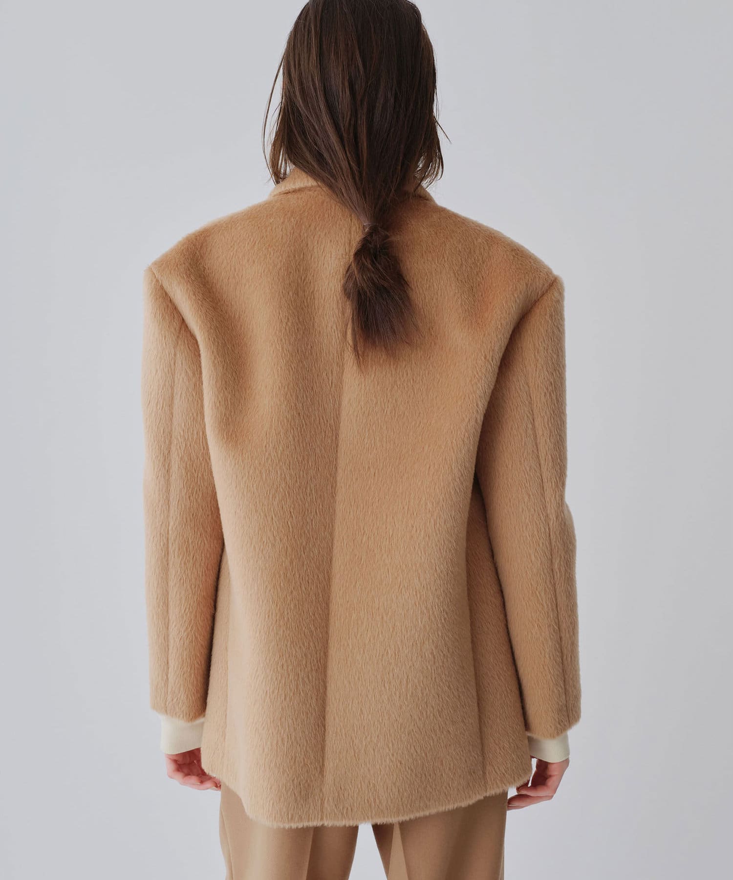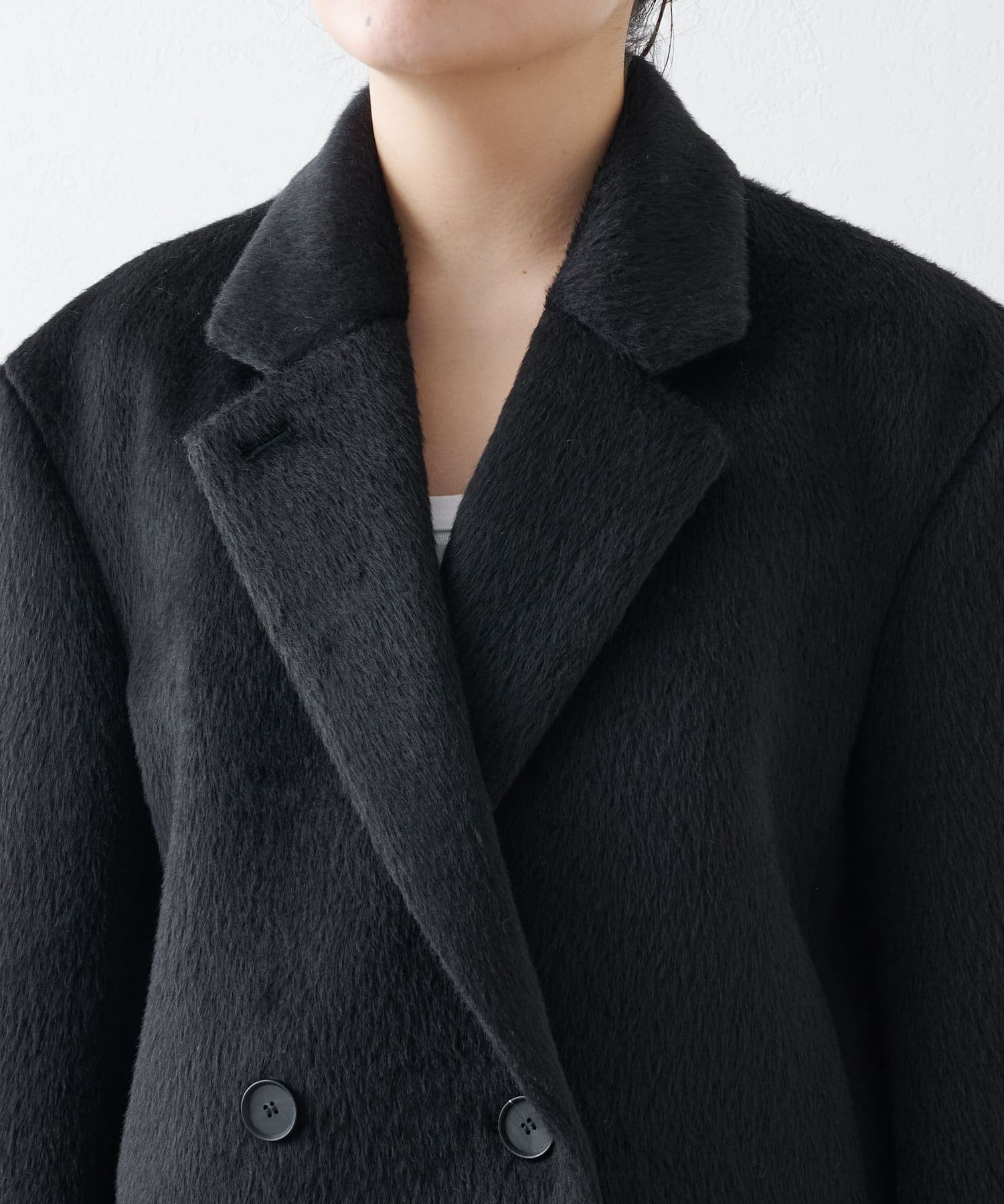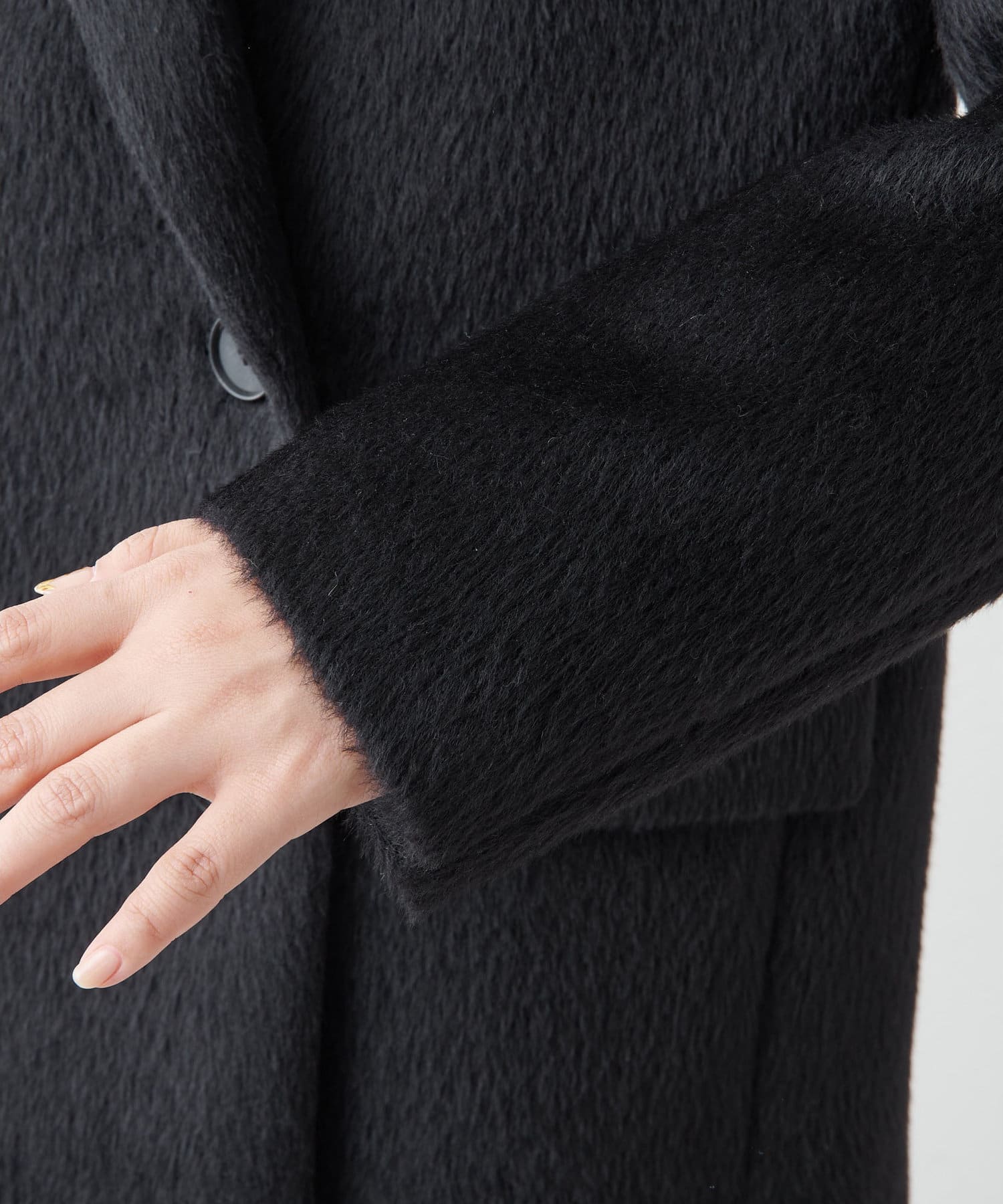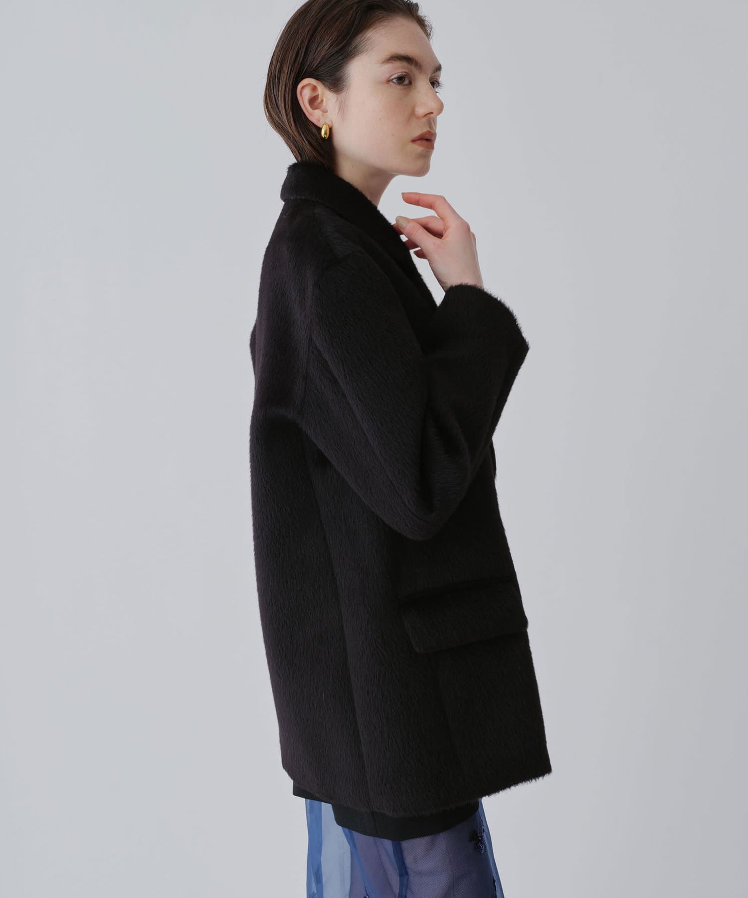 ■希少なスーリーアルパカシャギーに、ボンデイングをしたハリ感のある素材を使用した一着。