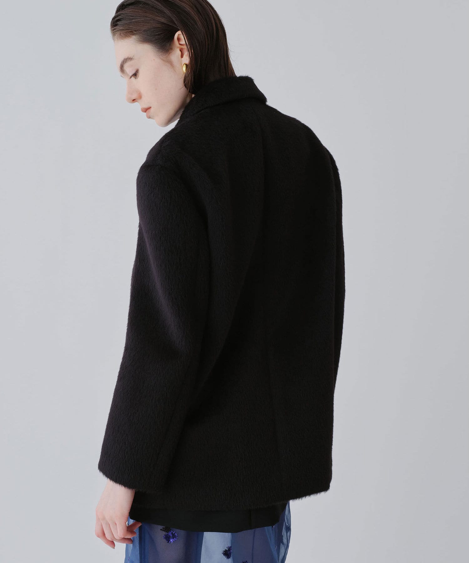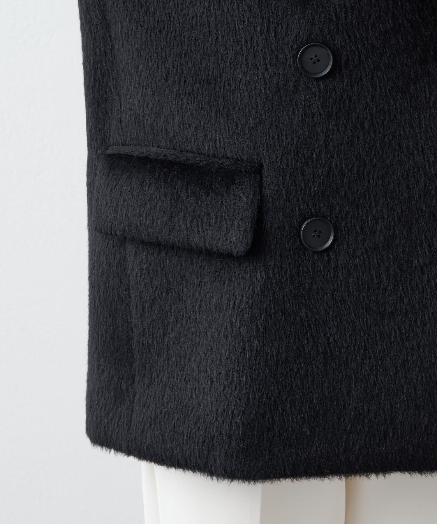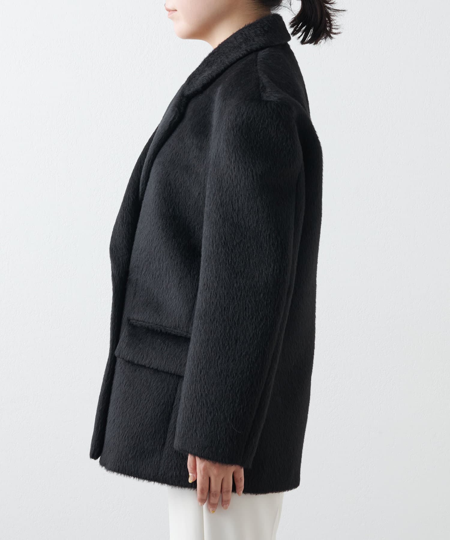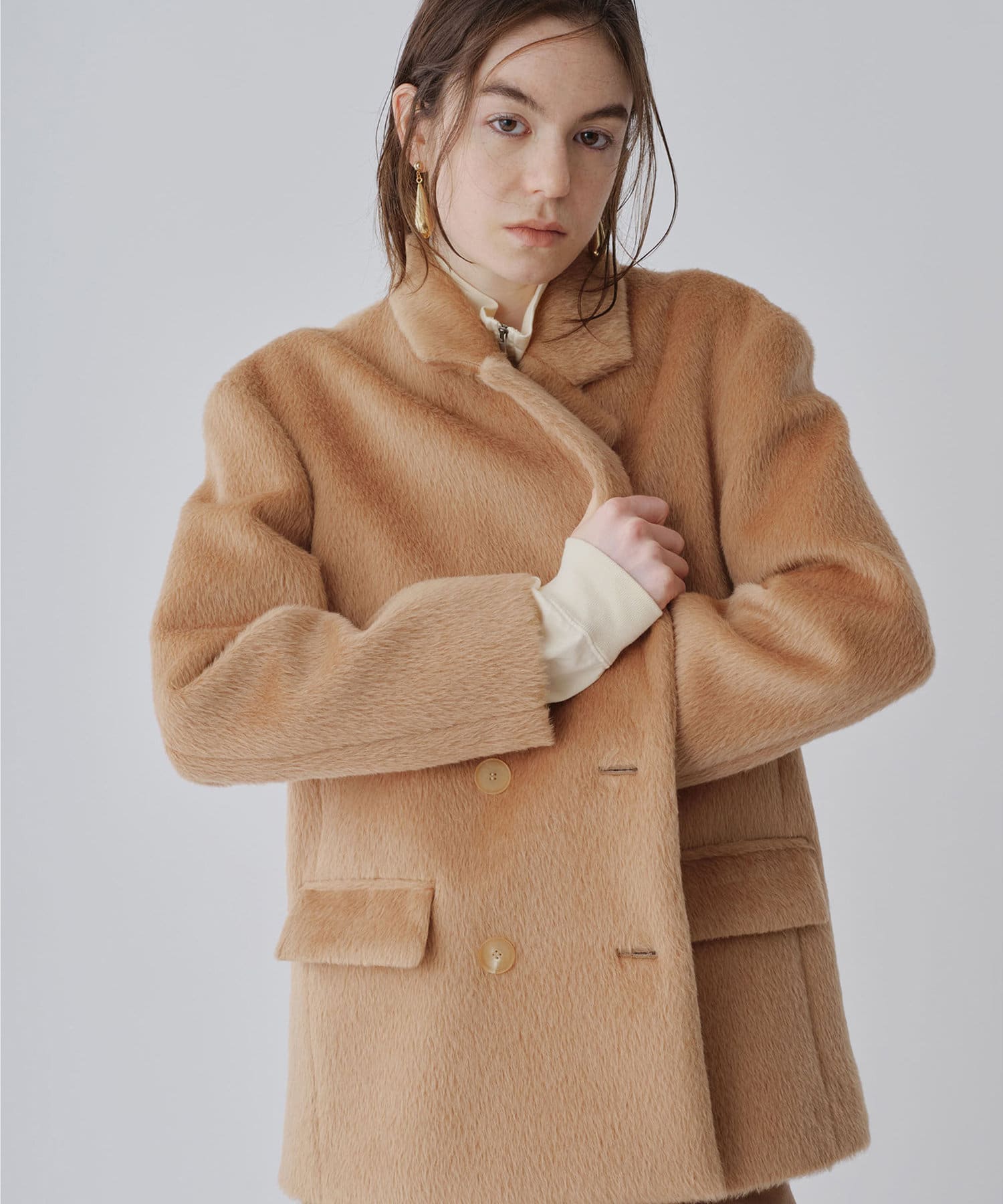 ■希少なスーリーアルパカシャギーに、ボンデイングをしたハリ感のある素材を使用した一着。