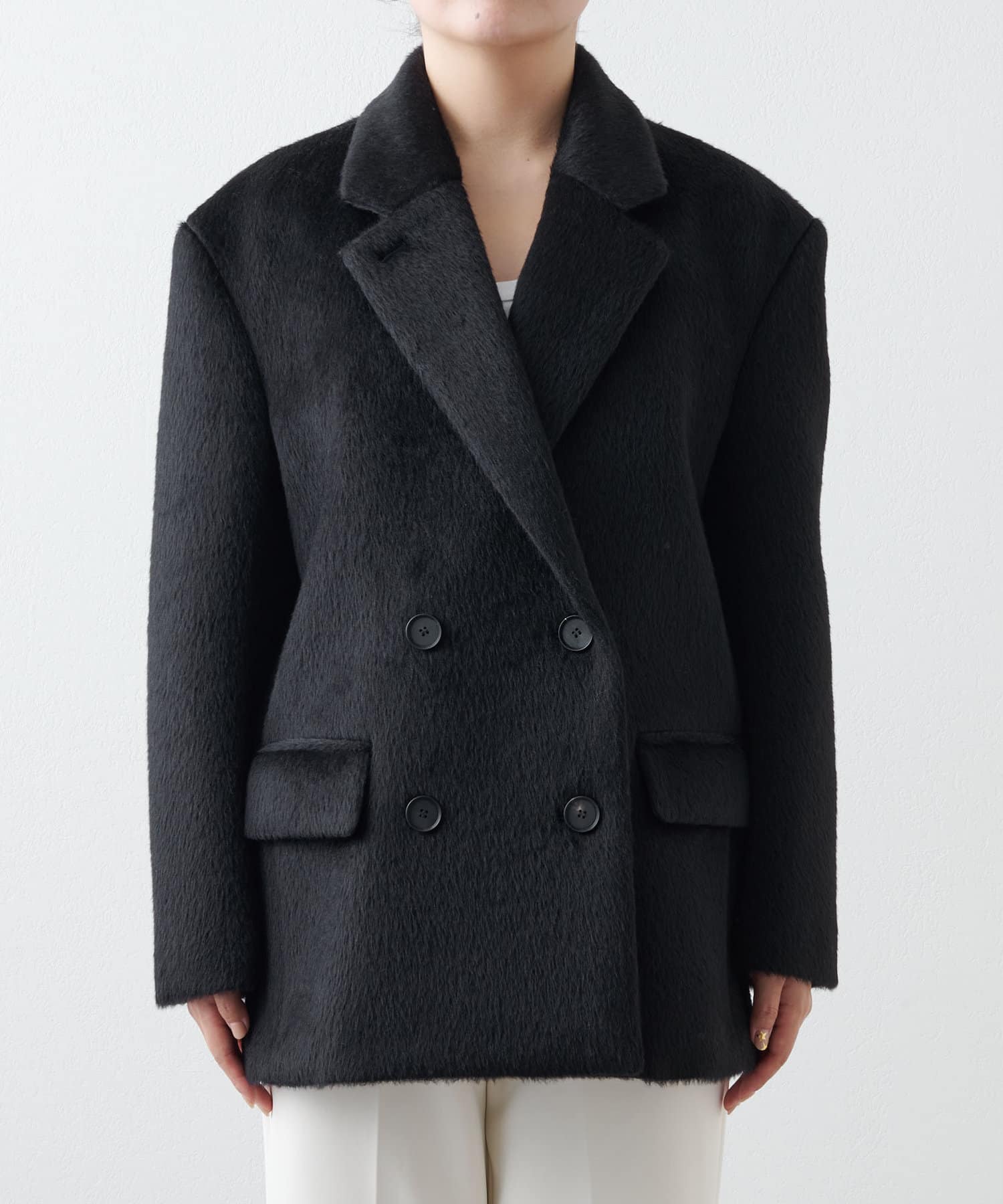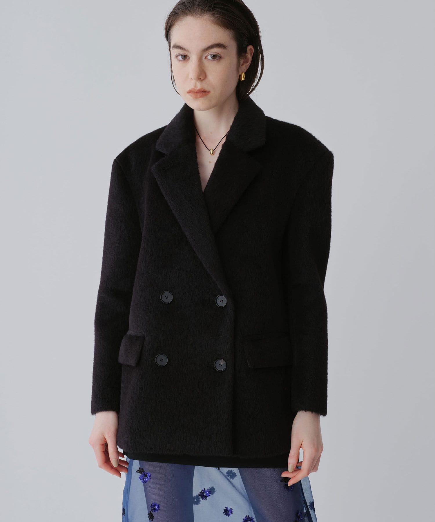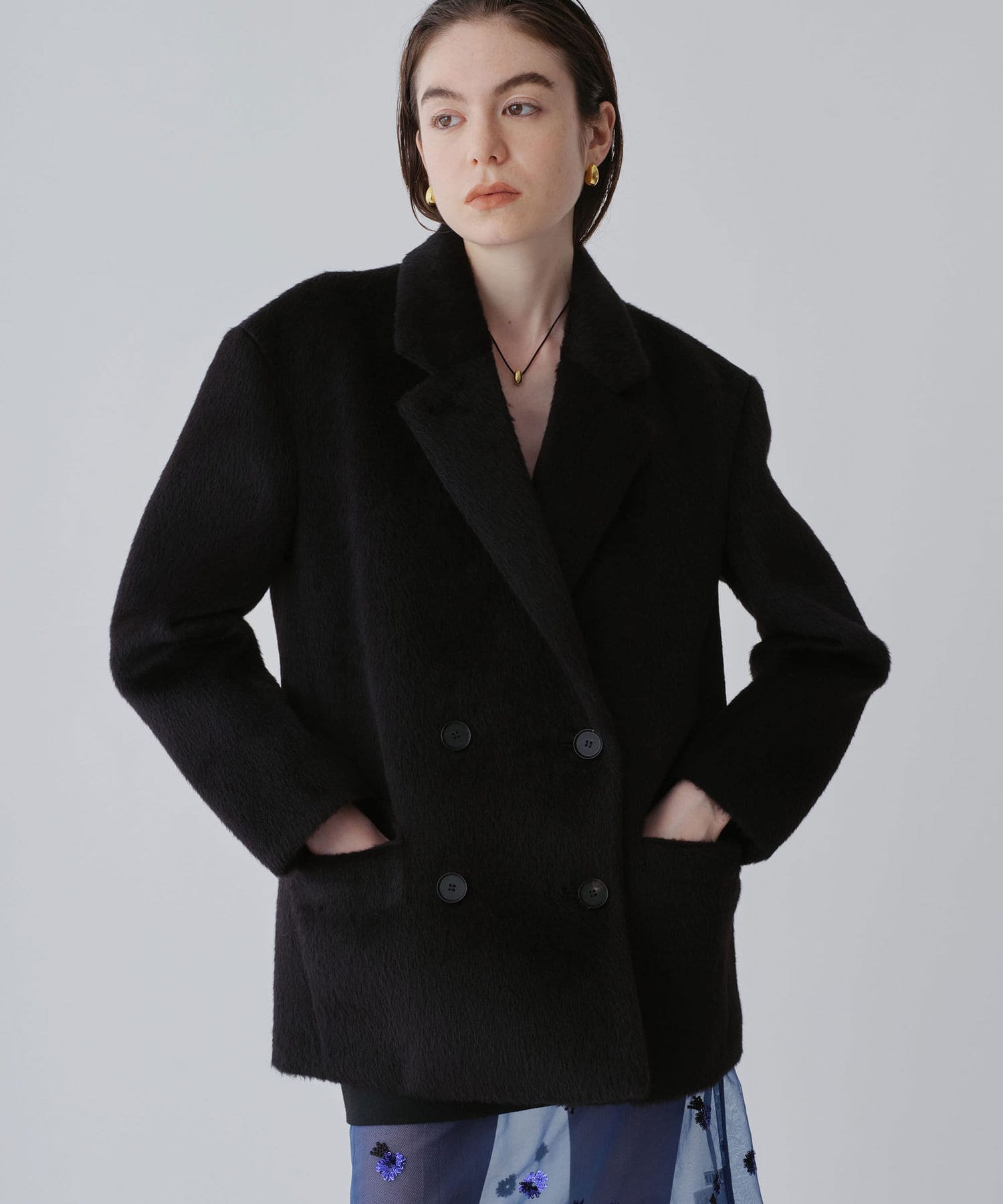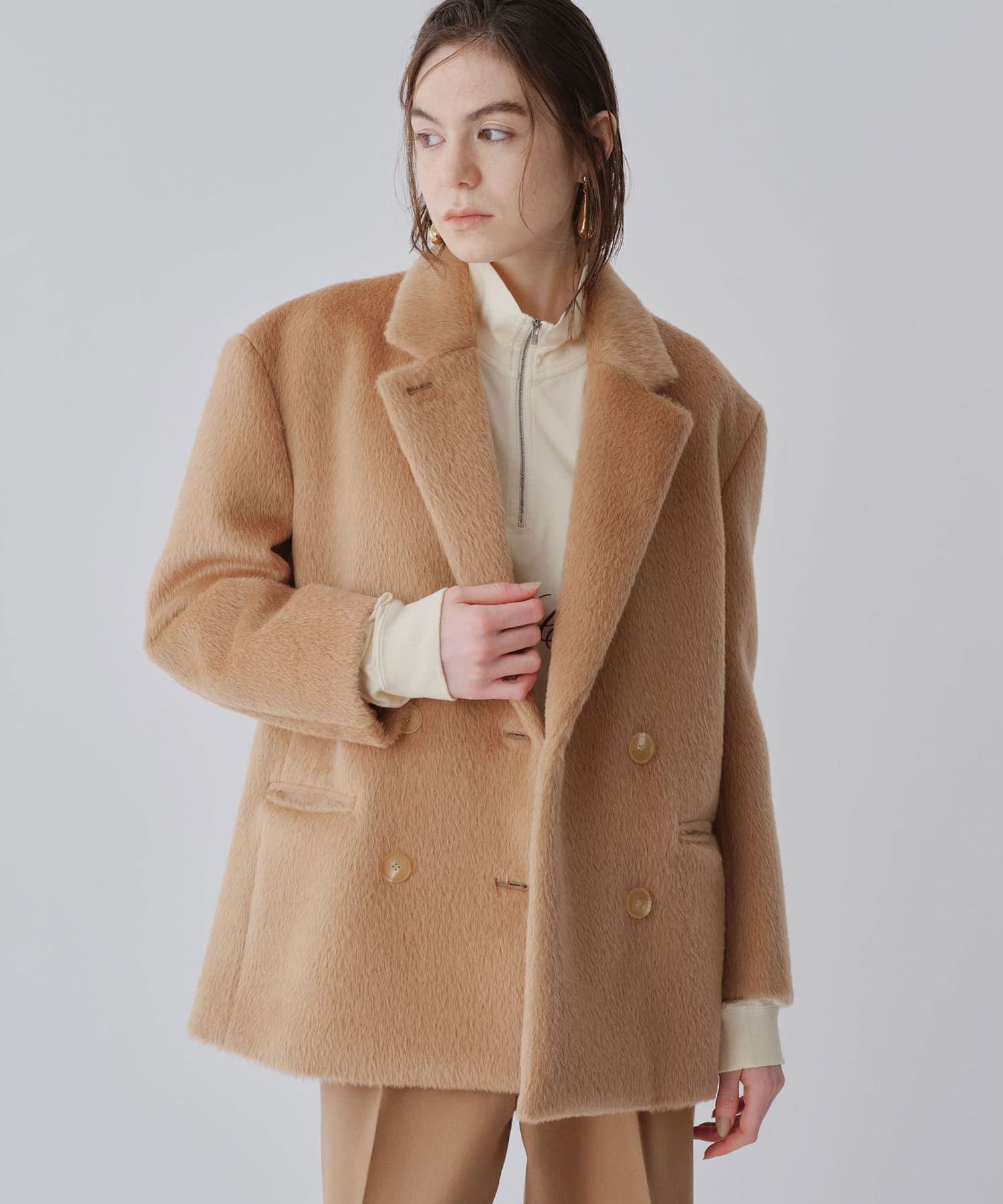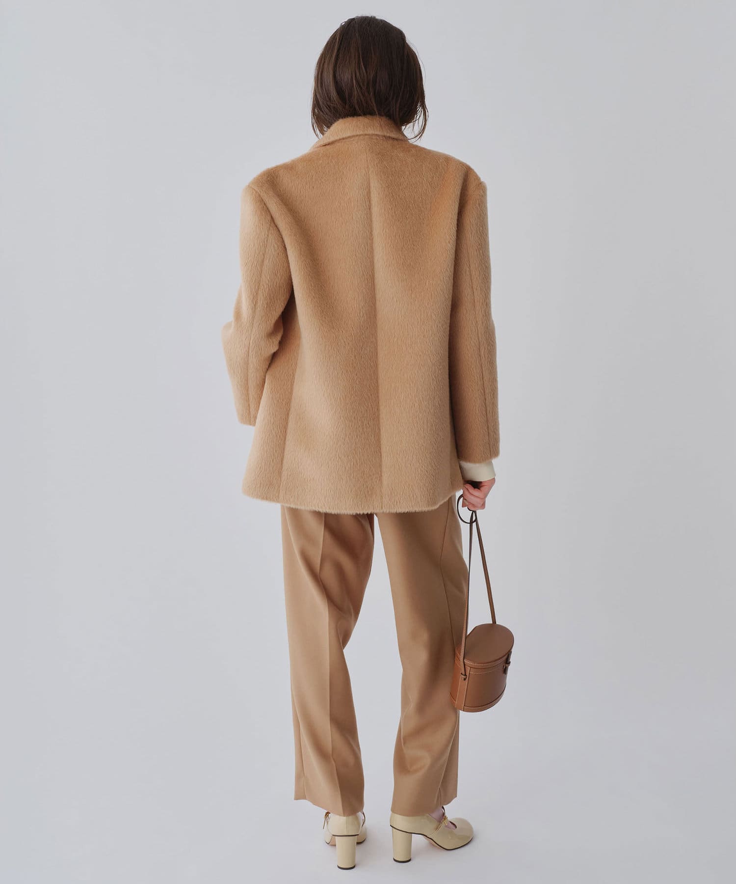 ■希少なスーリーアルパカシャギーに、ボンデイングをしたハリ感のある素材を使用した一着。