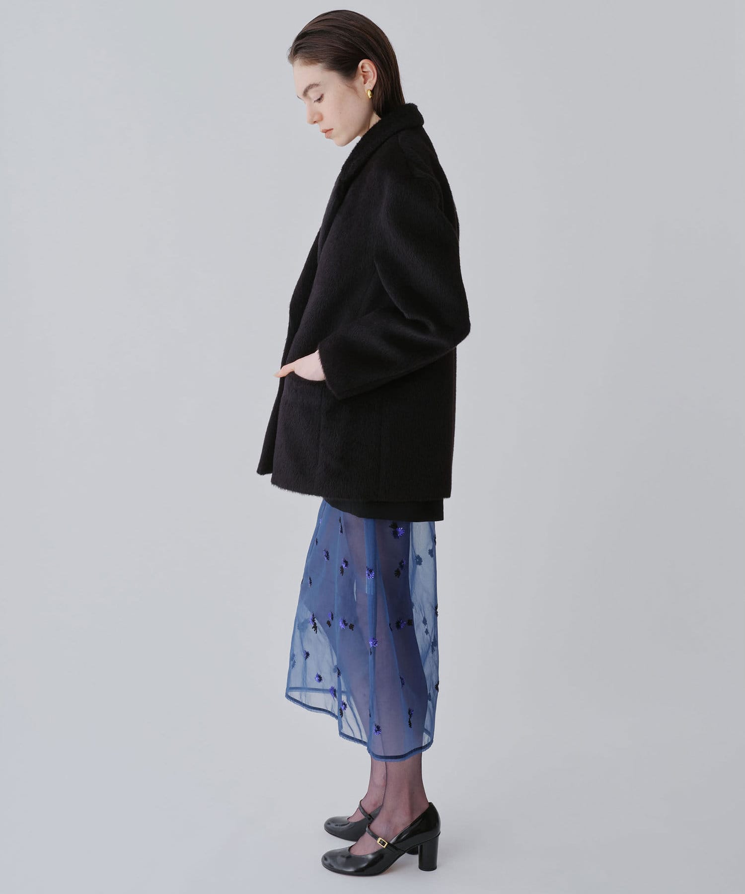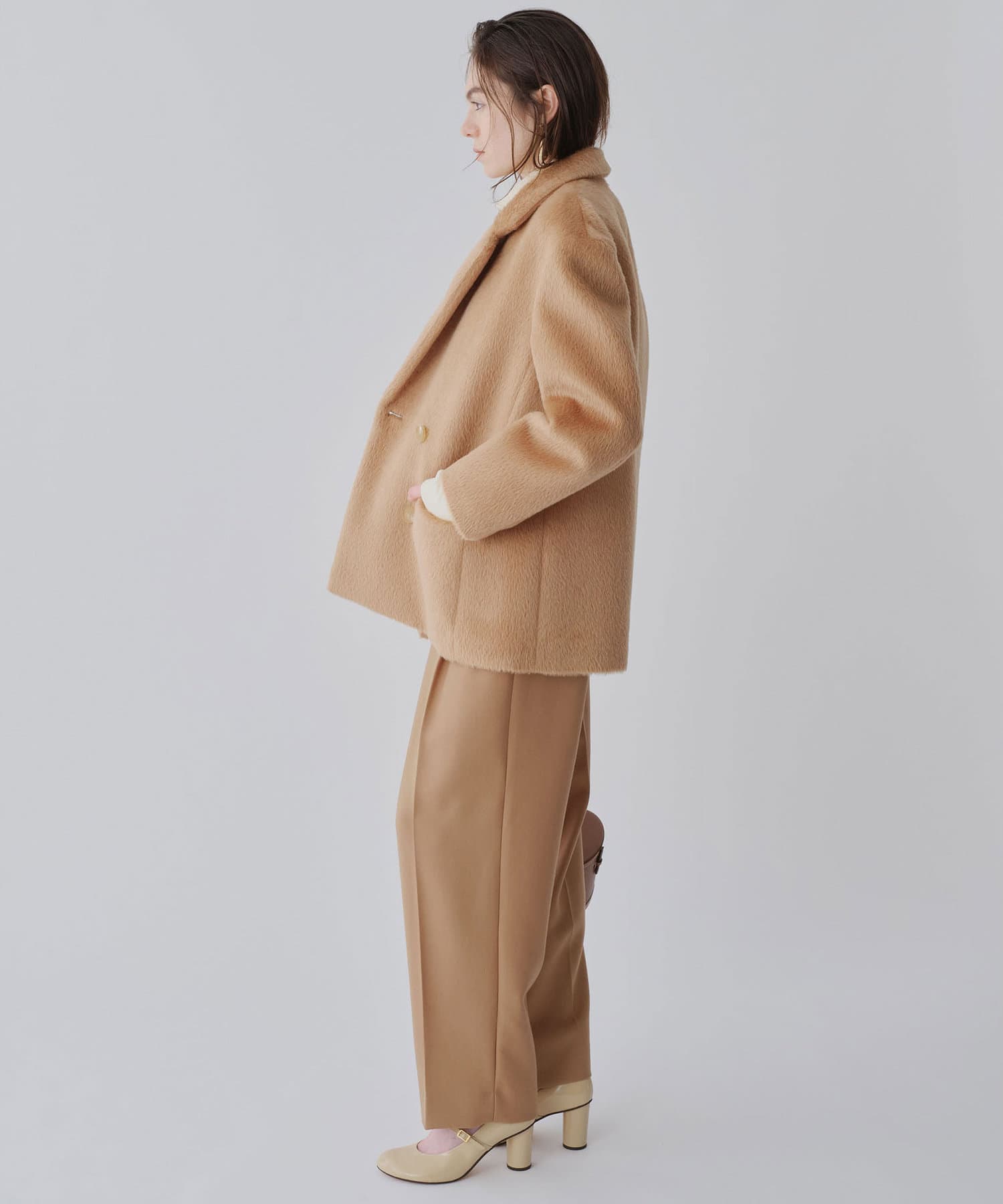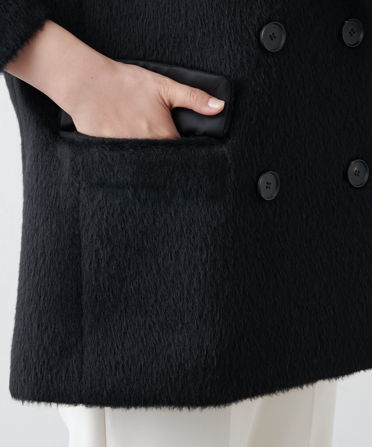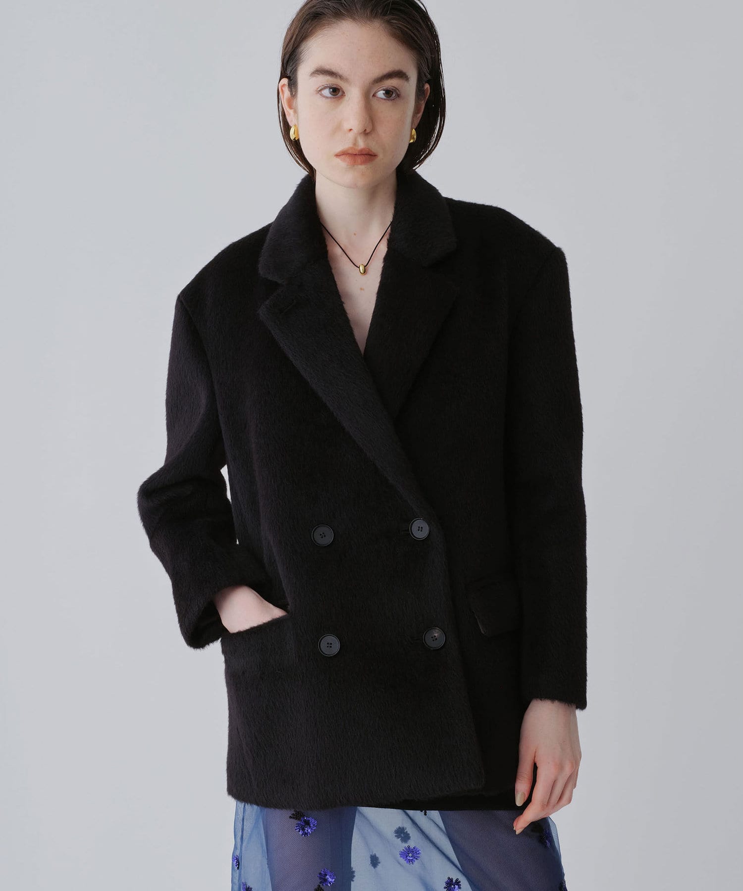 ■希少なスーリーアルパカシャギーに、ボンデイングをしたハリ感のある素材を使用した一着。