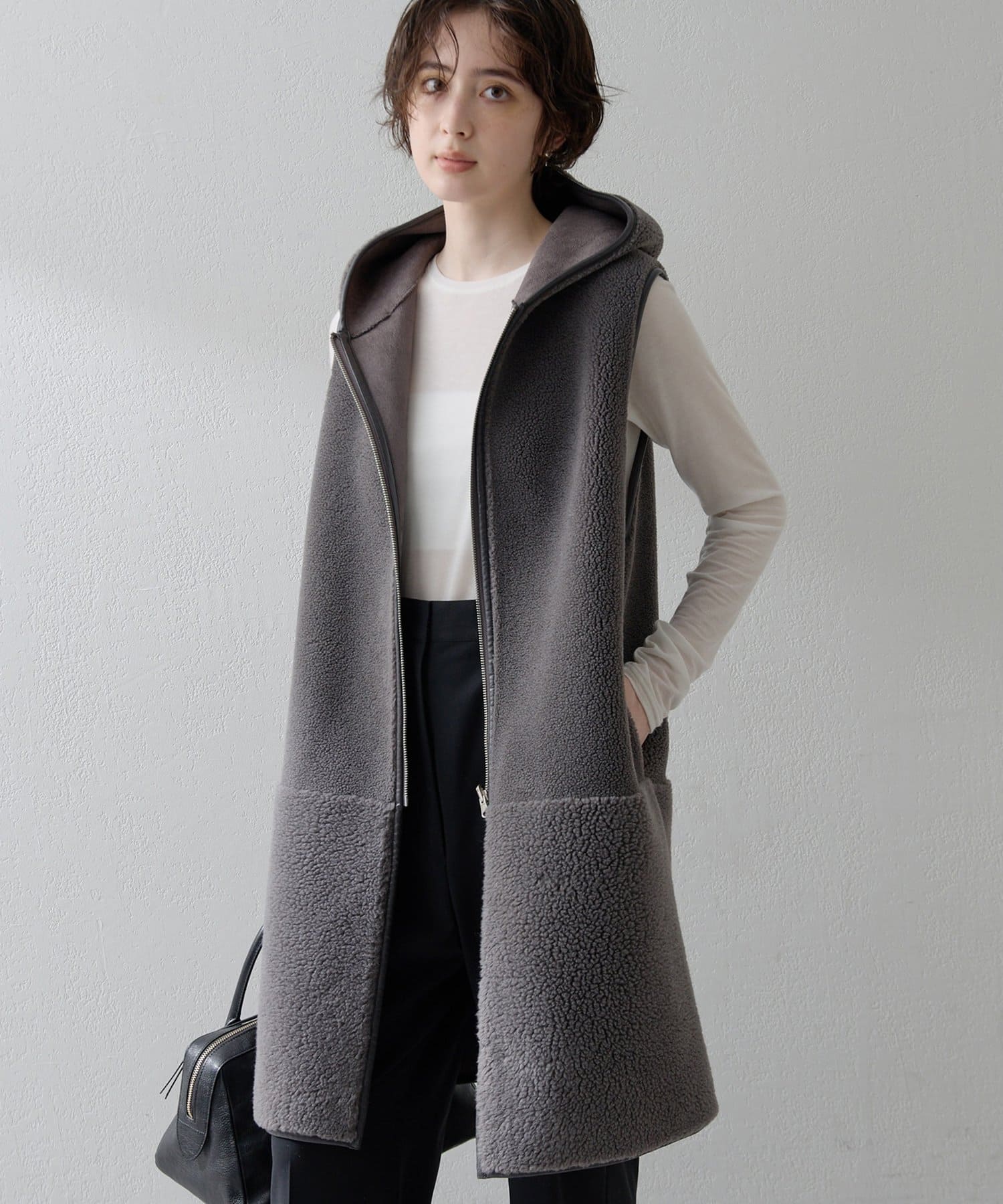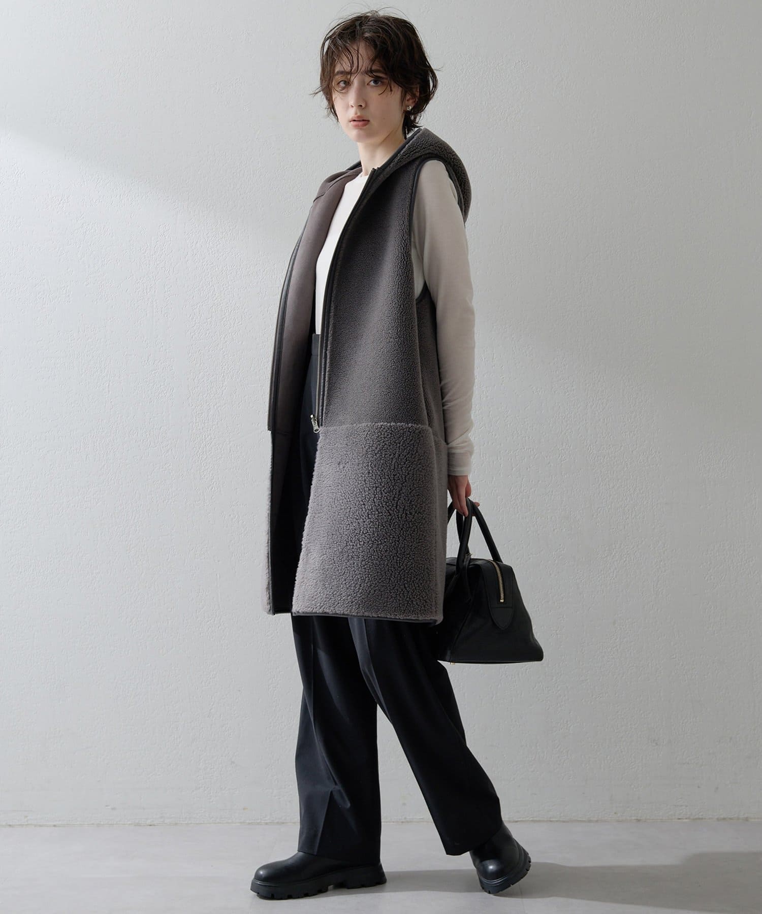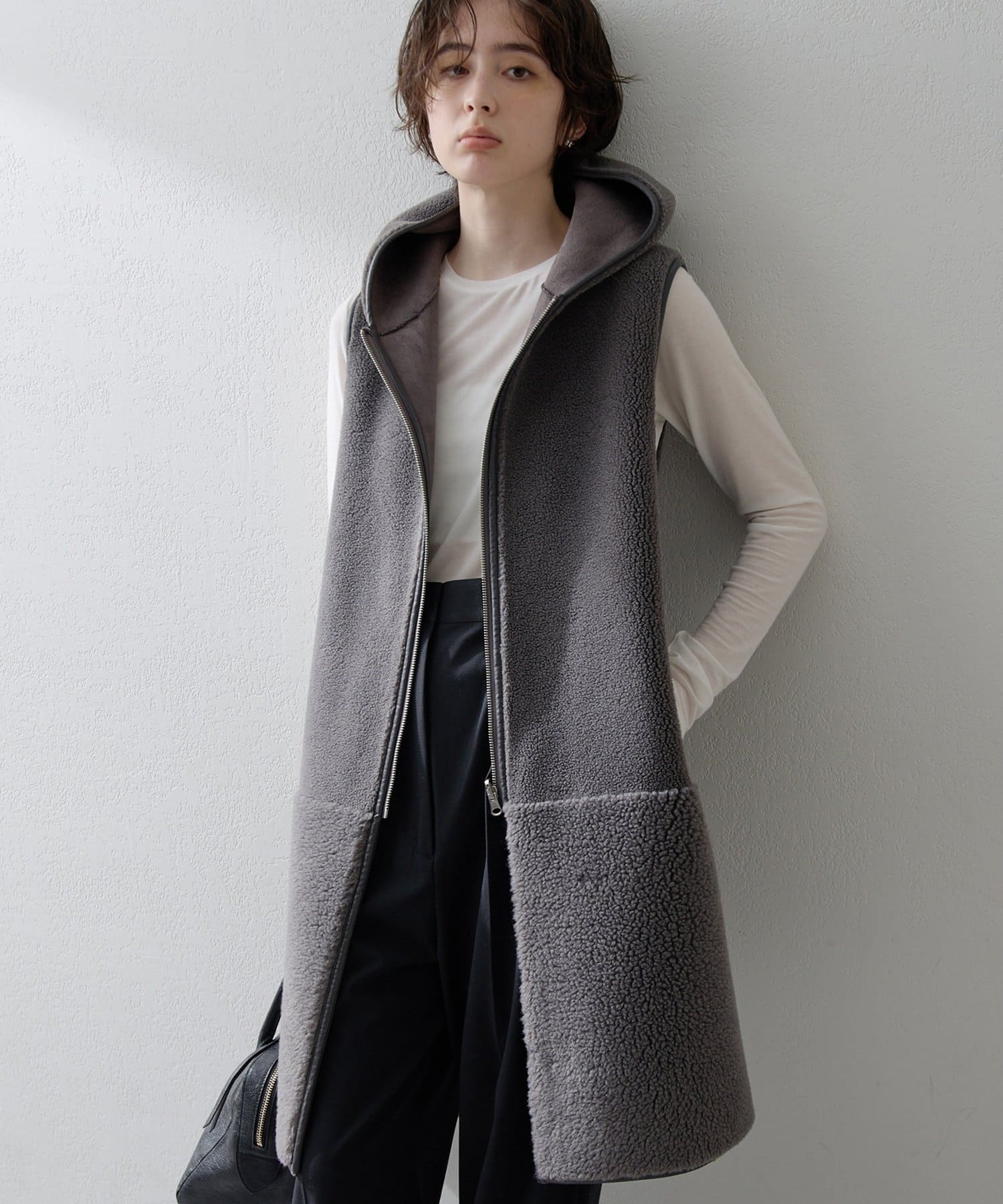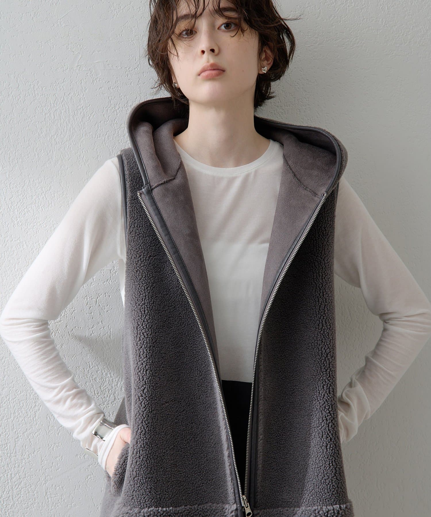 ■ボア面とフェイクスエード面どちらも着用出来る2wayジレ。