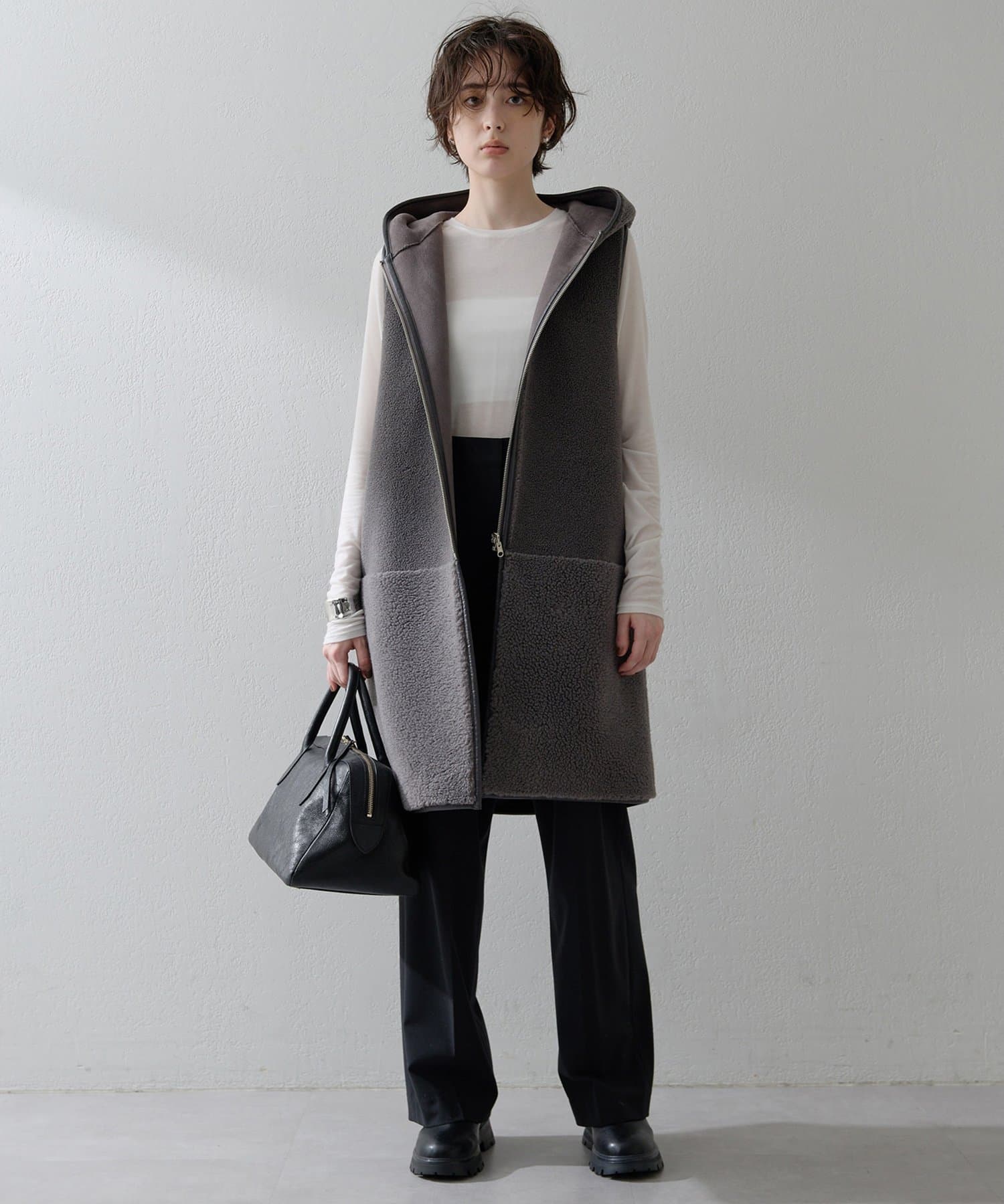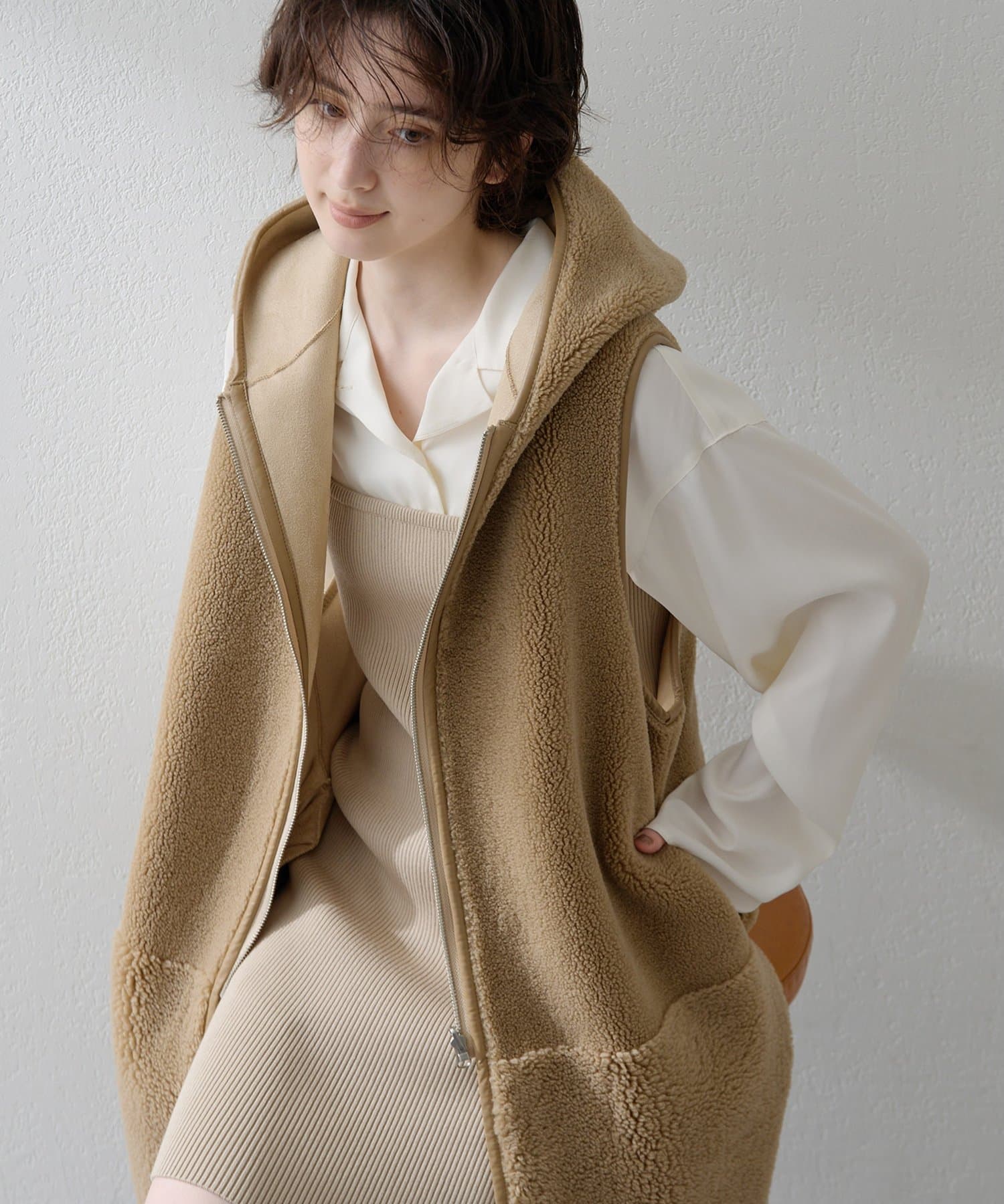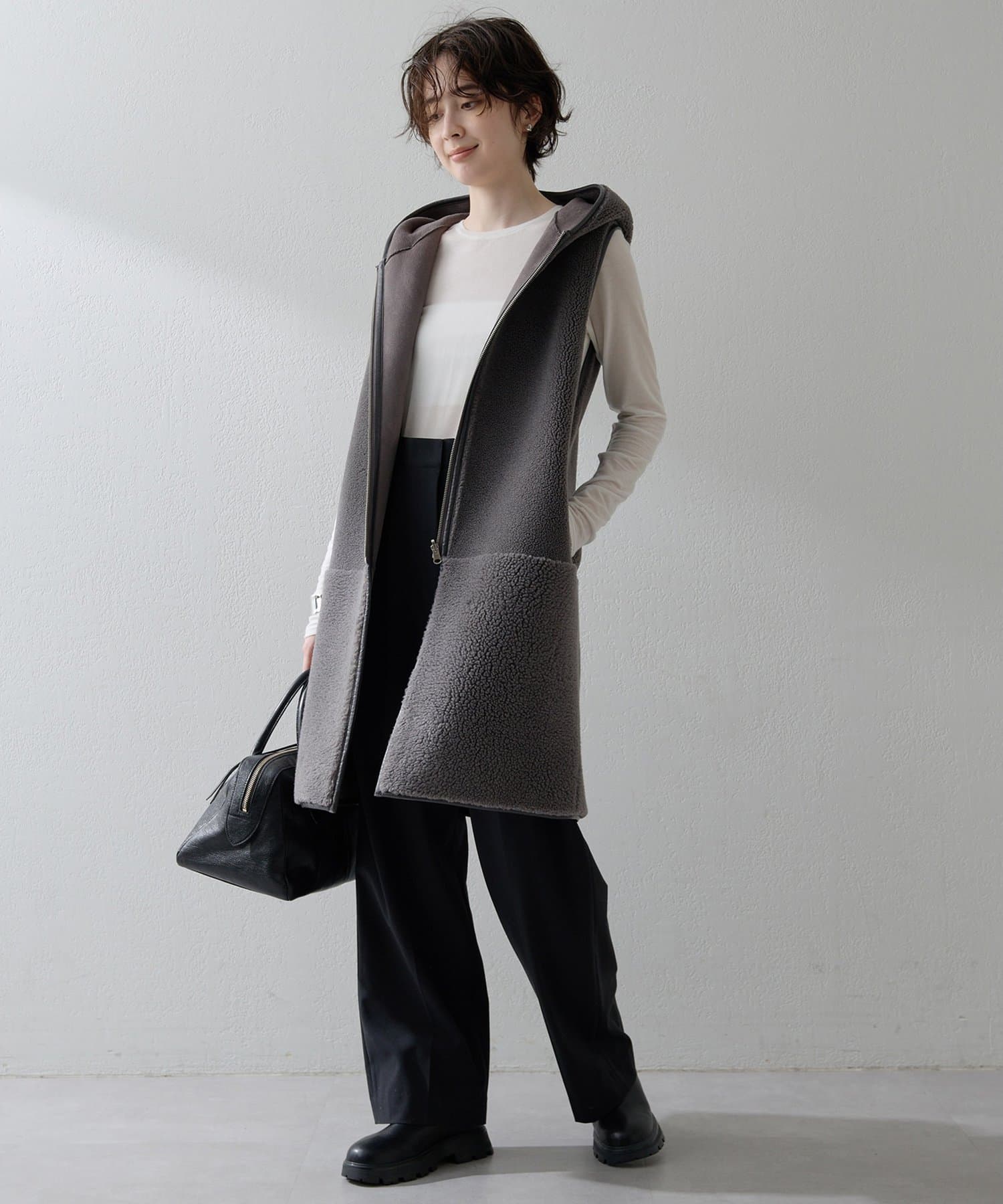 ■ボア面とフェイクスエード面どちらも着用出来る2wayジレ。