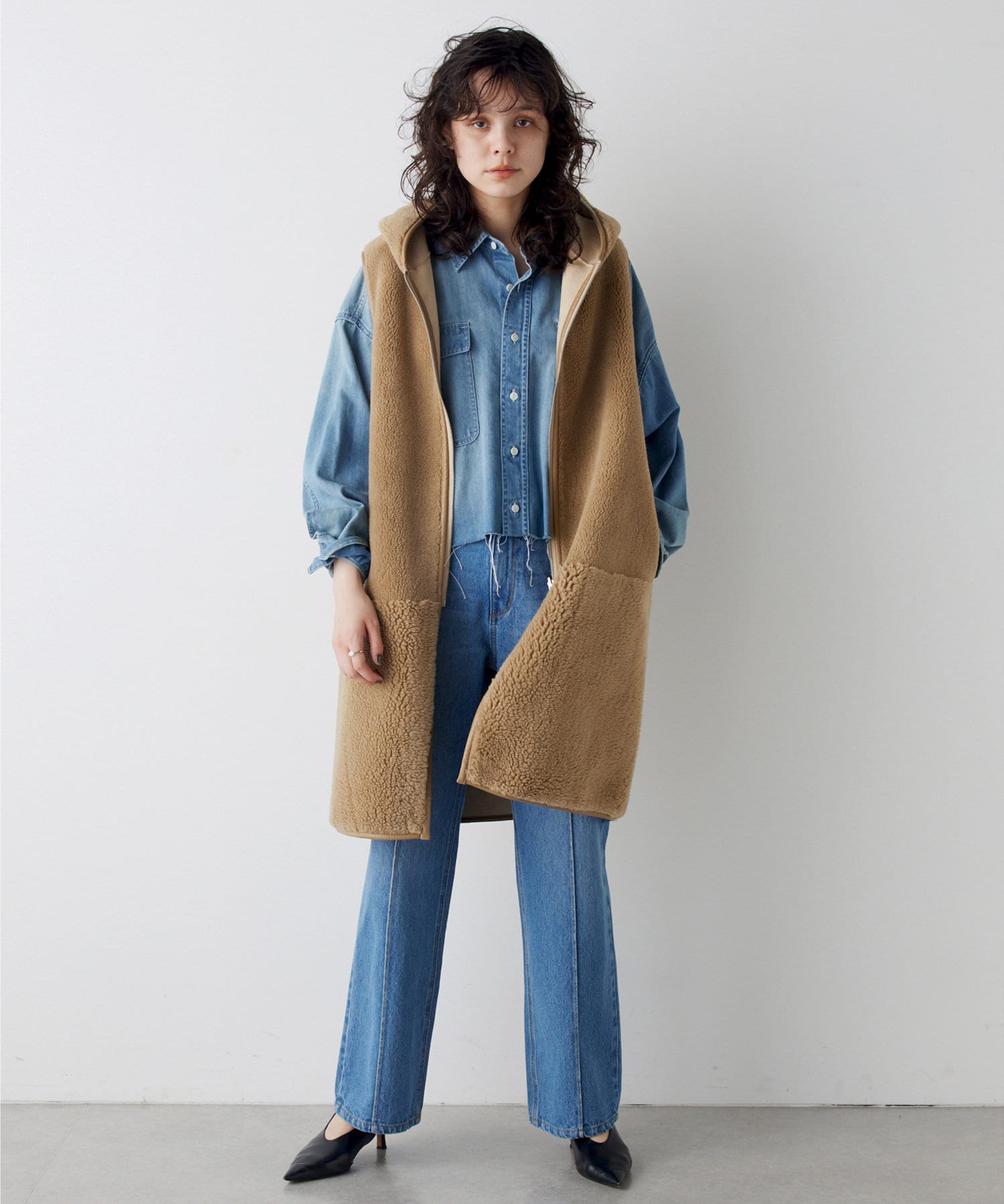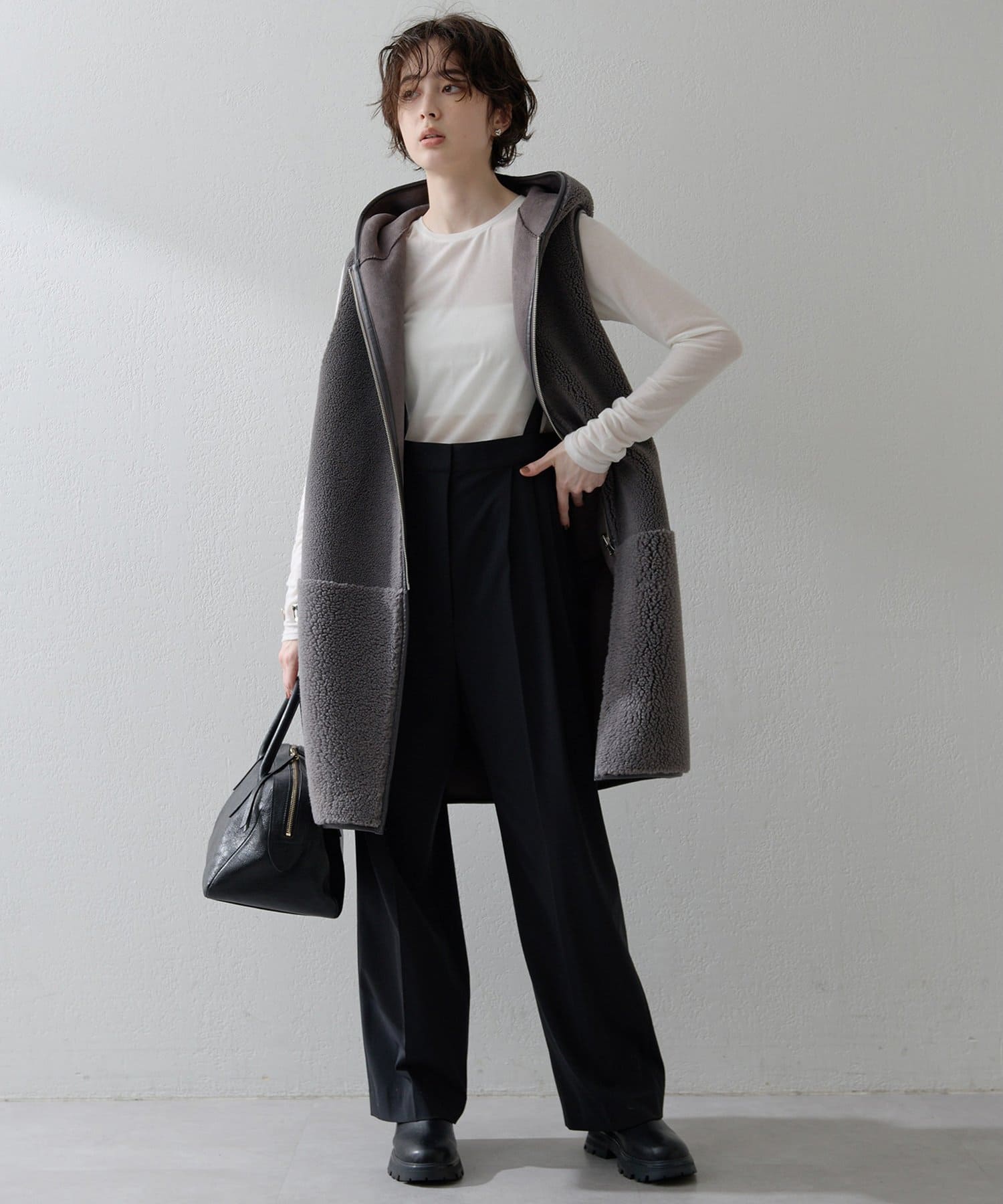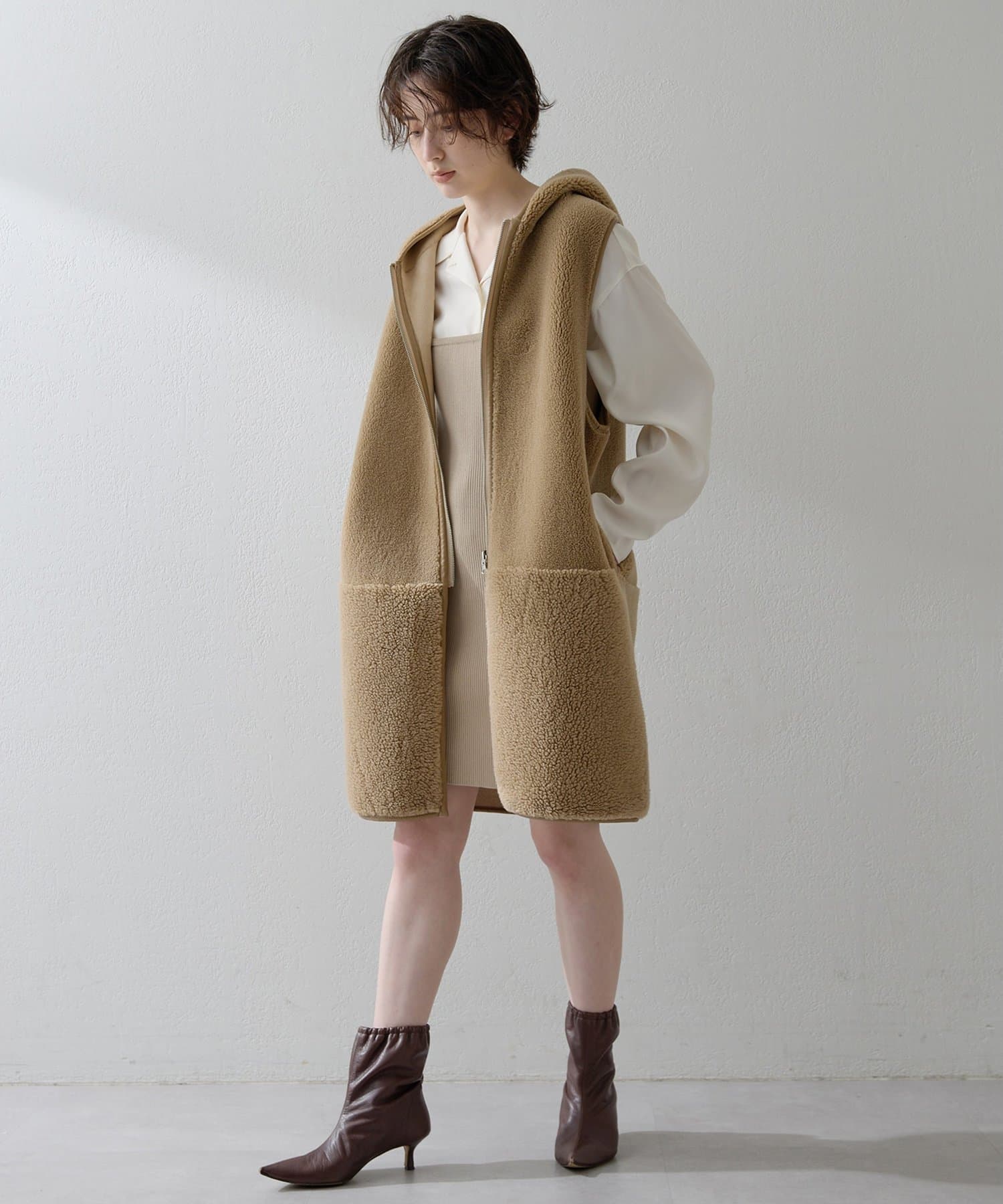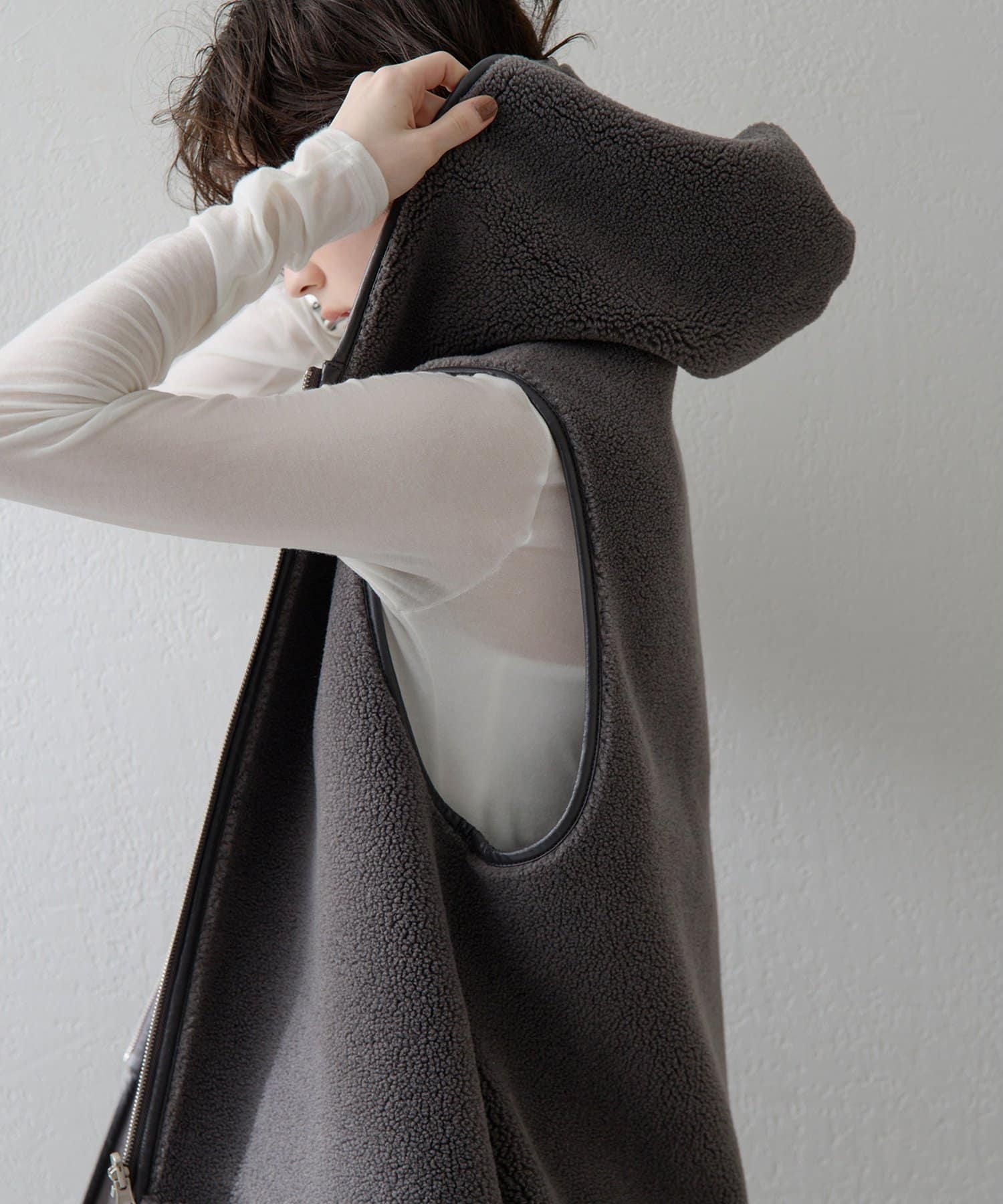 ■ボア面とフェイクスエード面どちらも着用出来る2wayジレ。