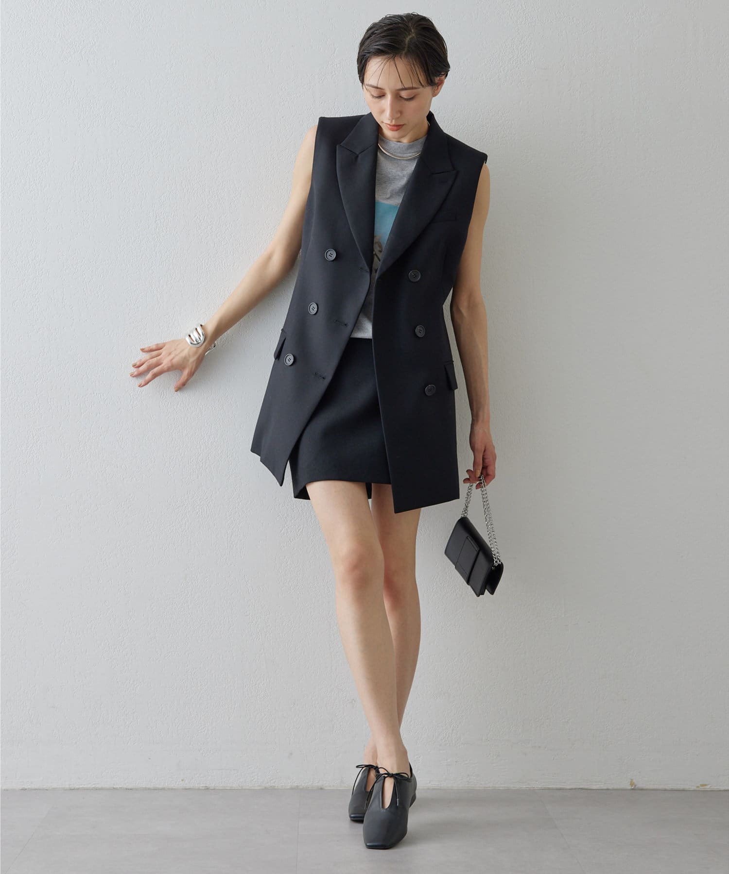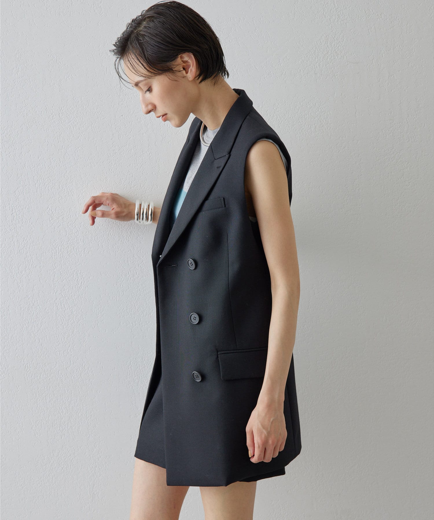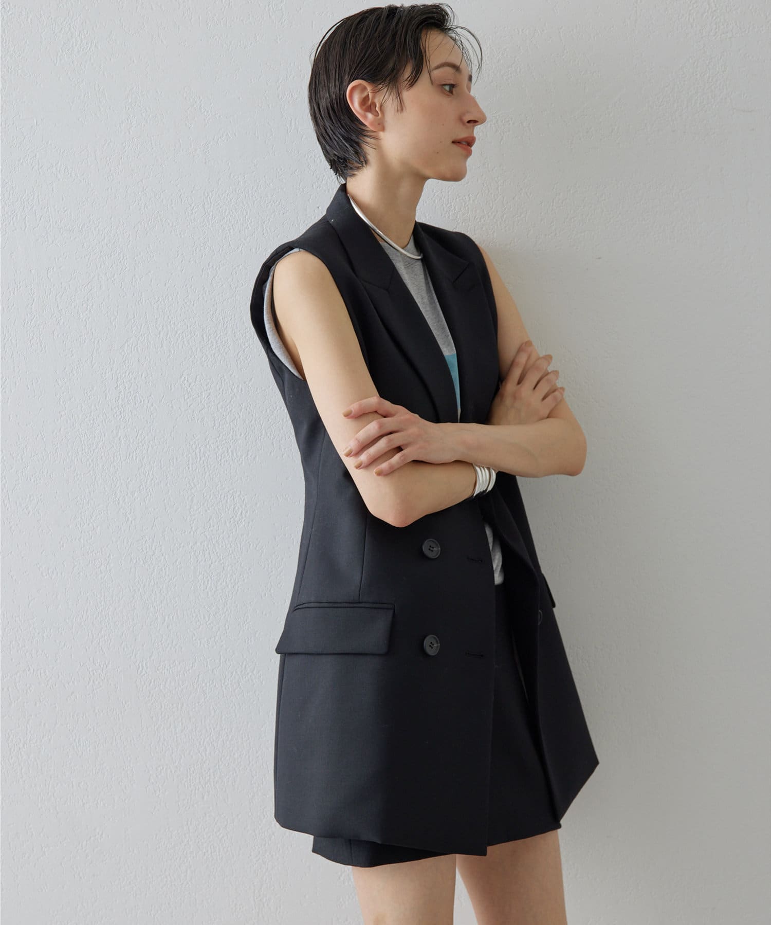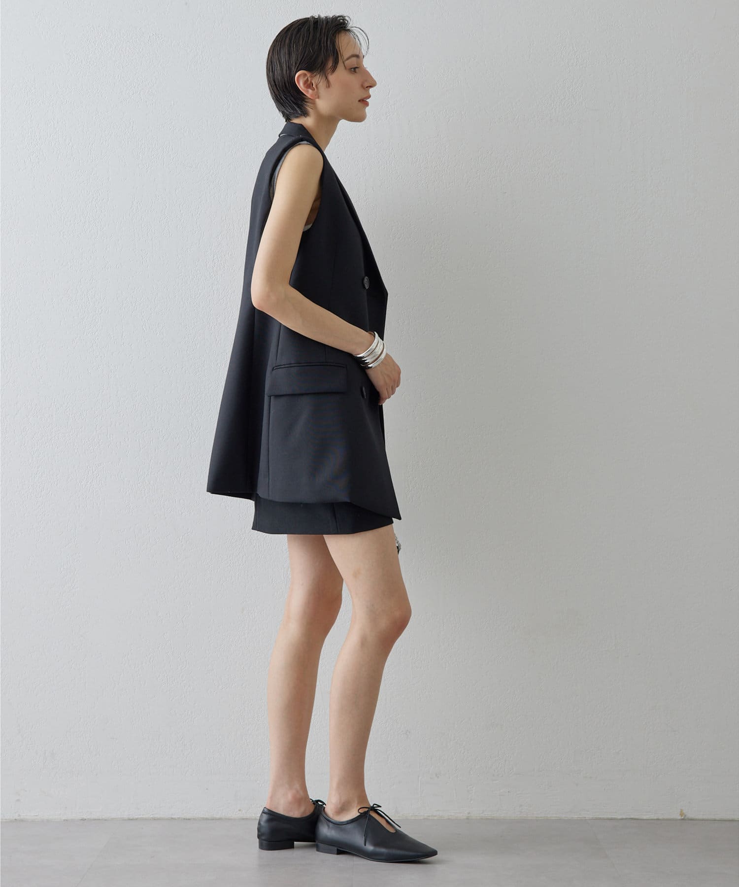 美しいシルエットを描く、ハンサムなペプラムジレ