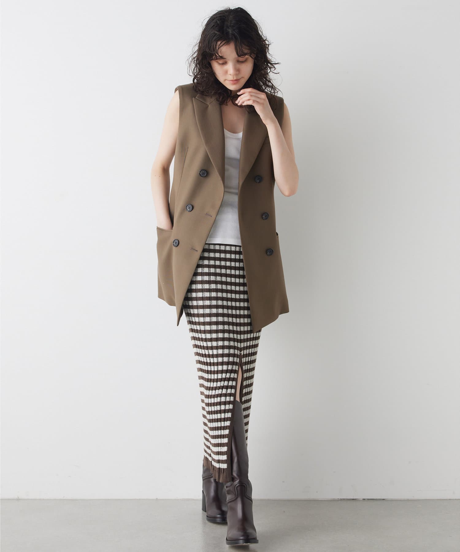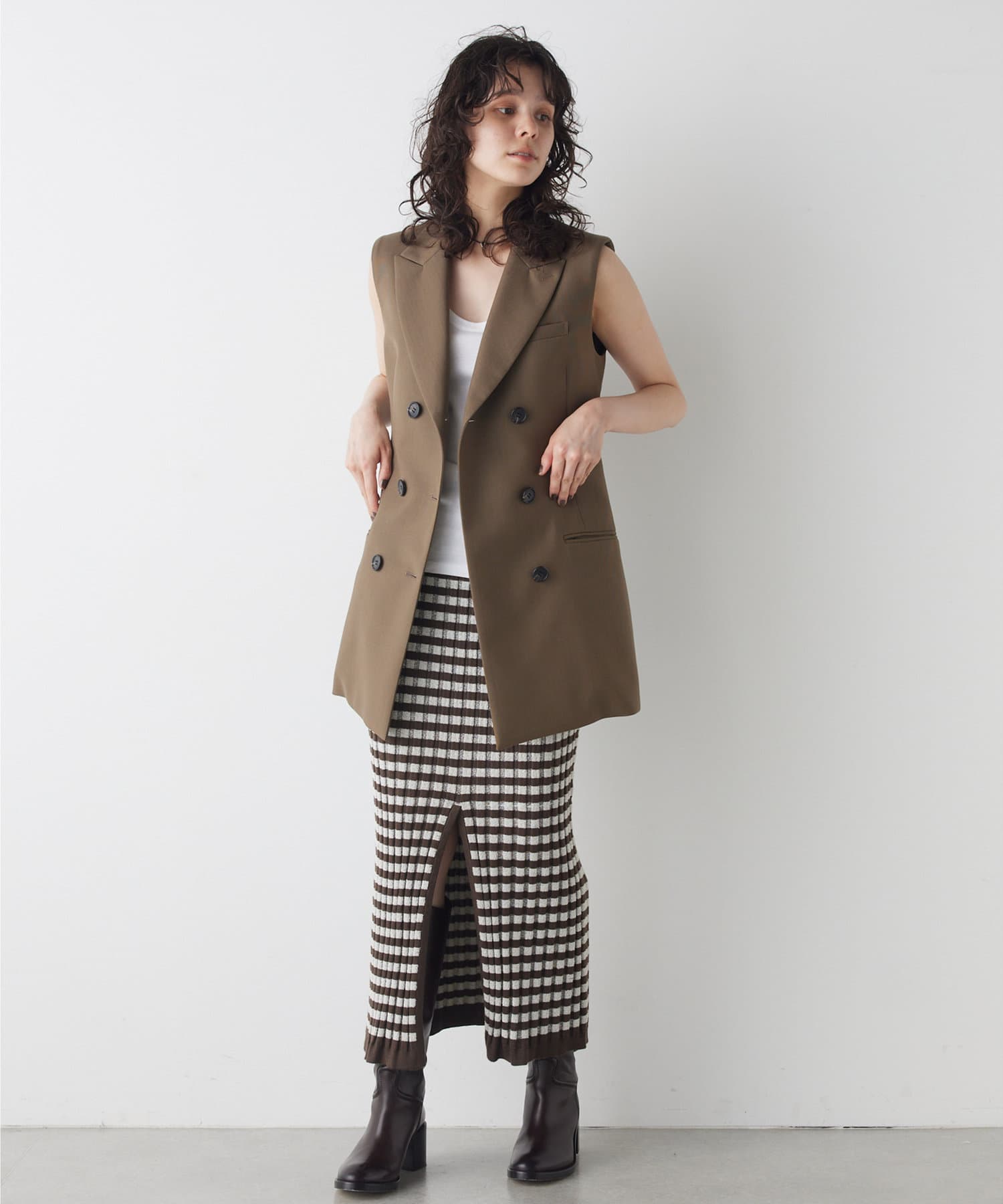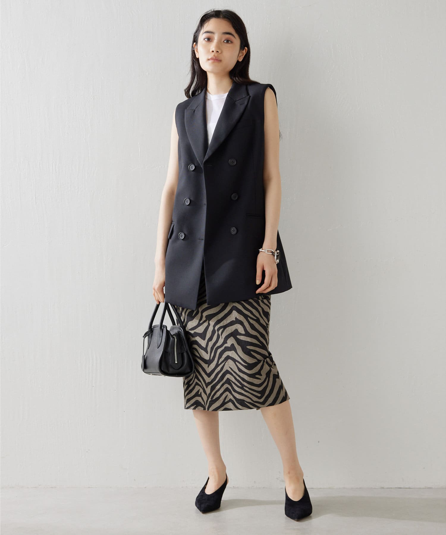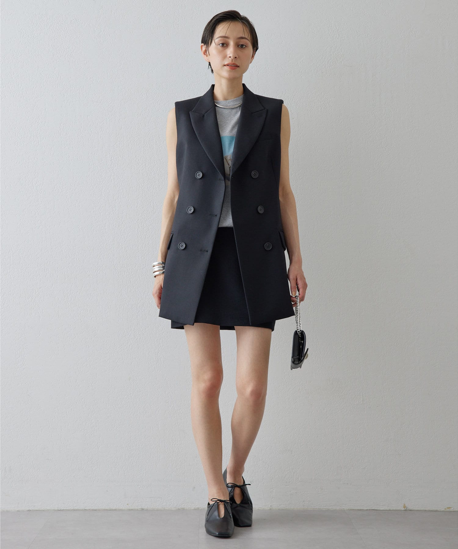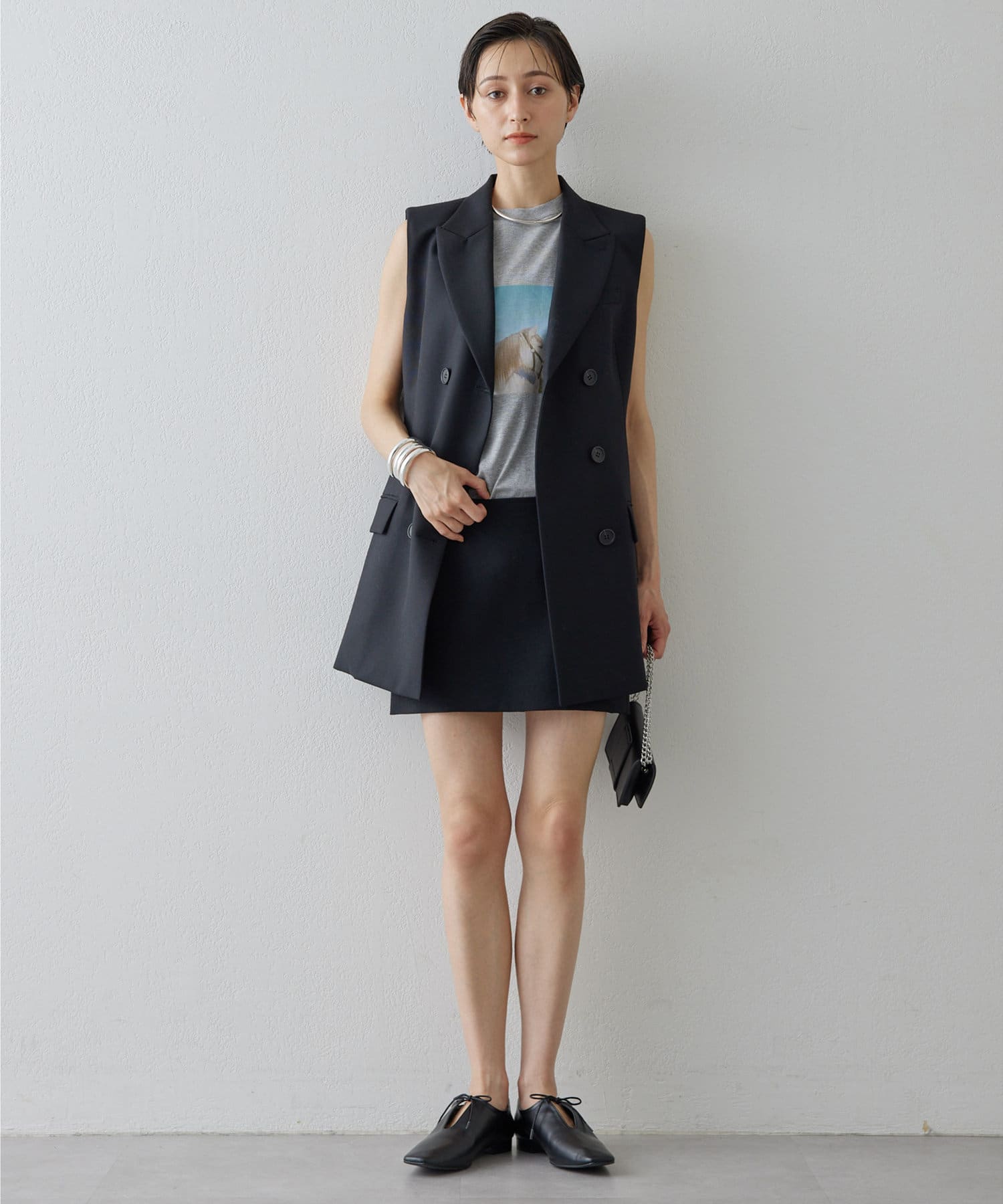 美しいシルエットを描く、ハンサムなペプラムジレ