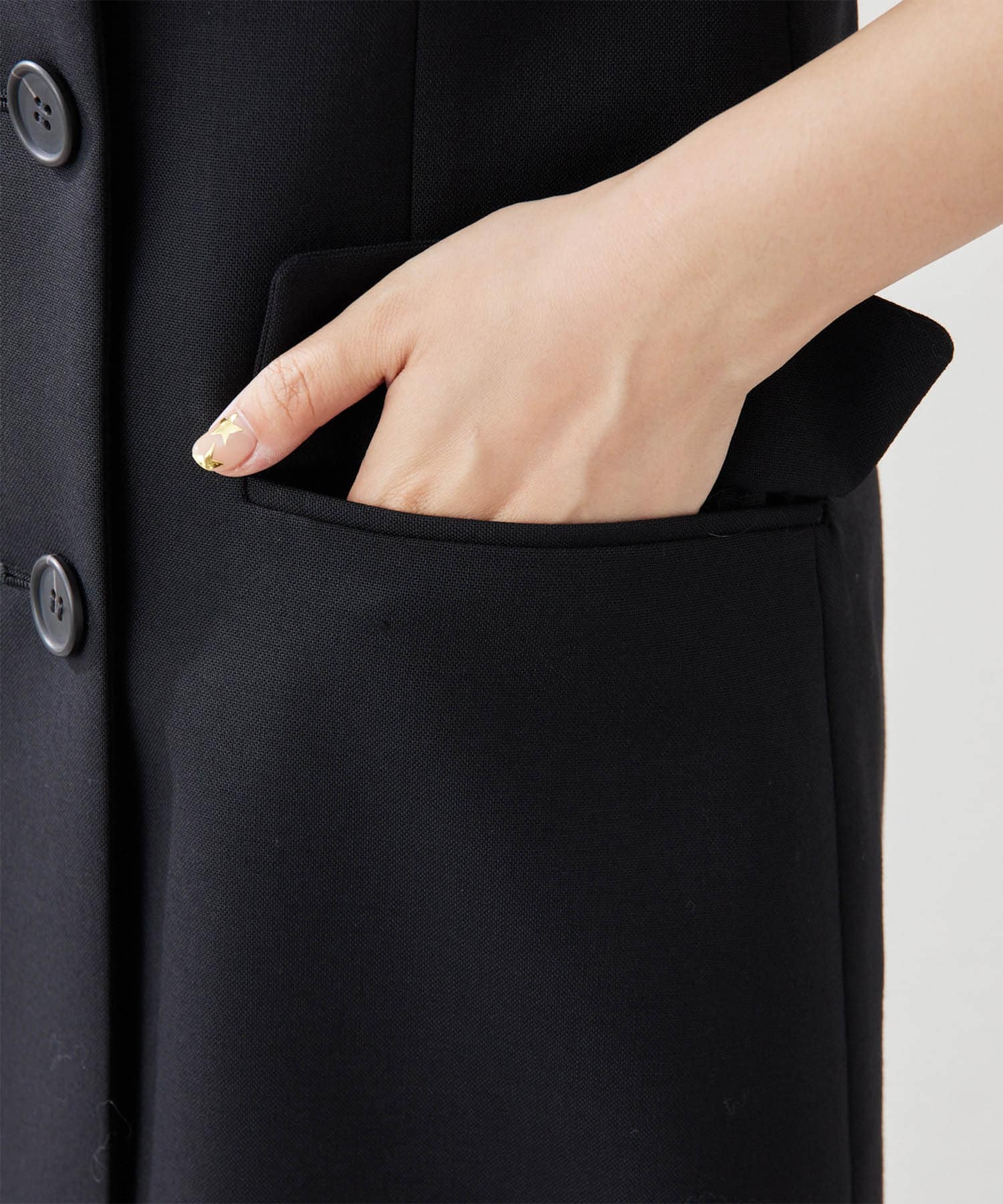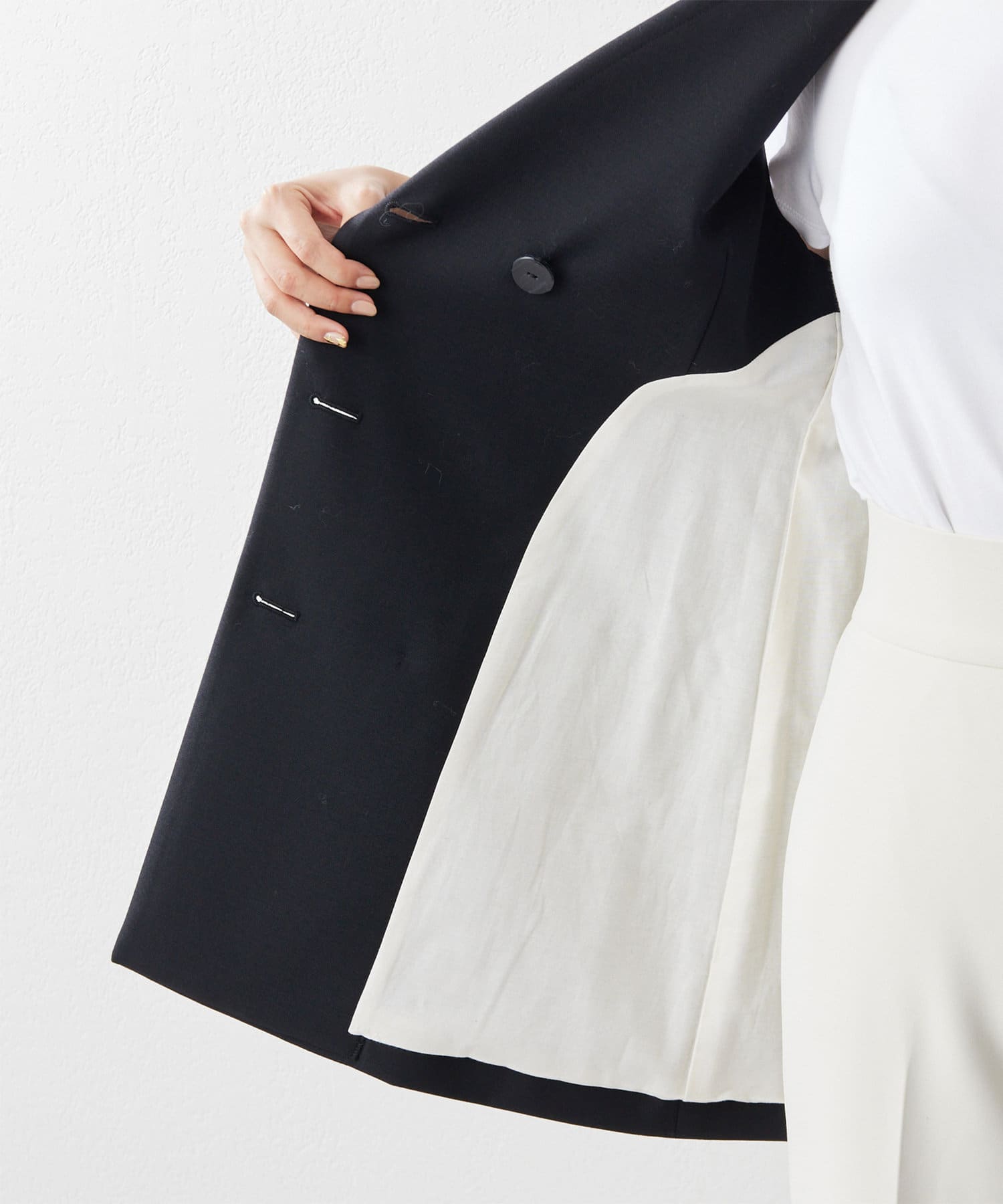 ■程よいフェミニン感のあるウエストシェイプのラインながら、テーラードでハンサムな雰囲気に。