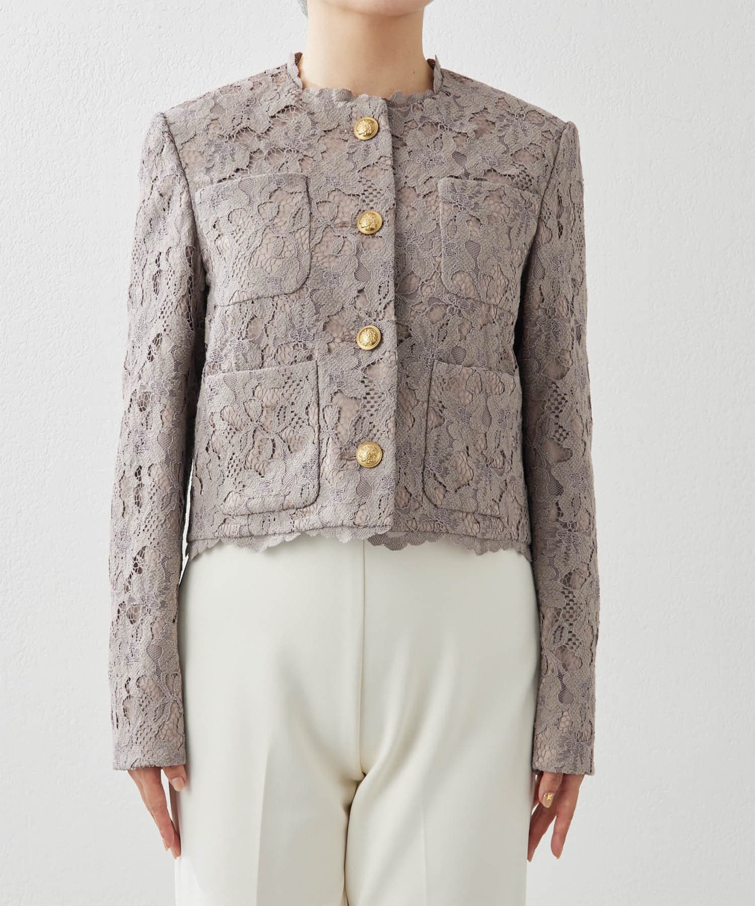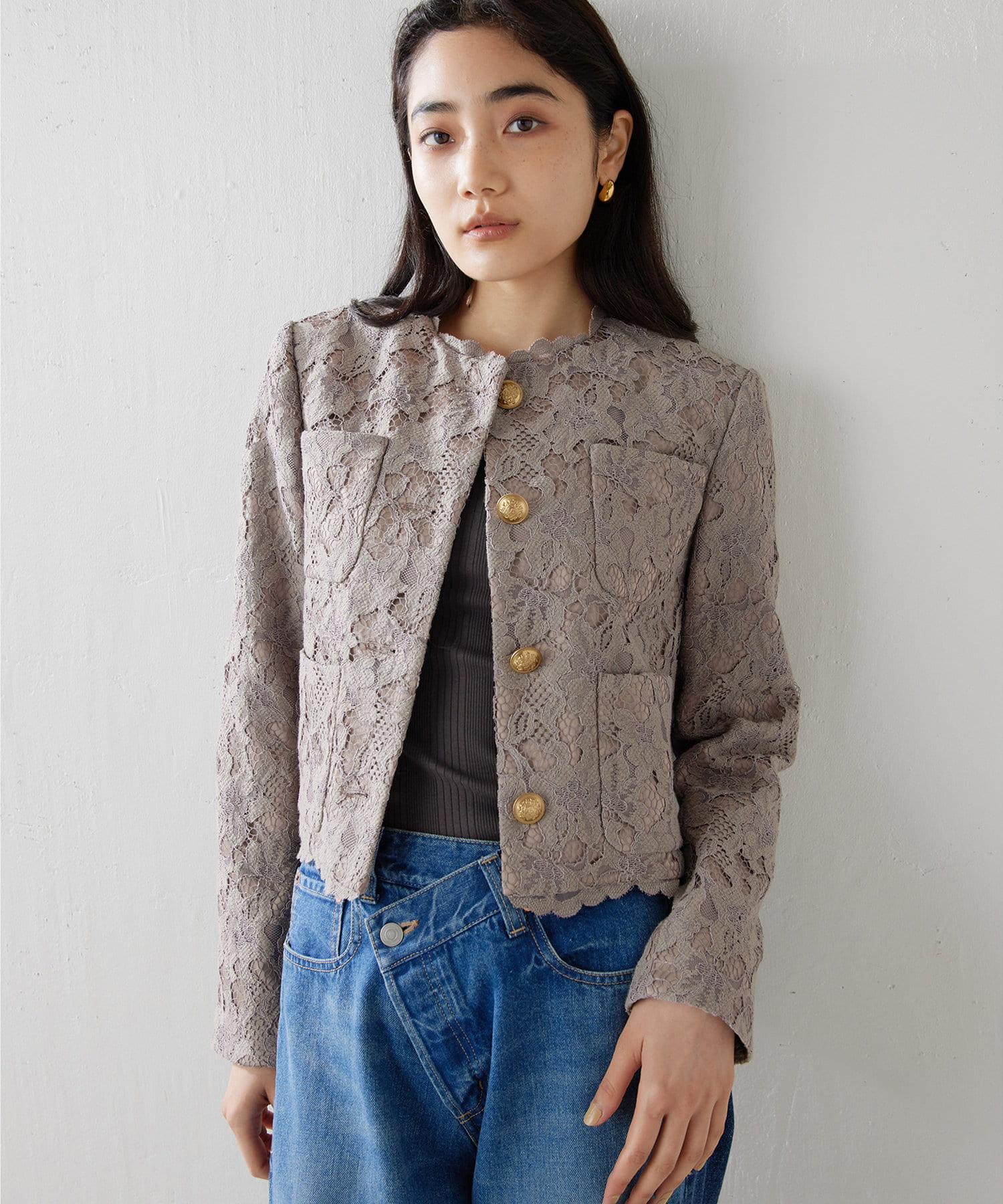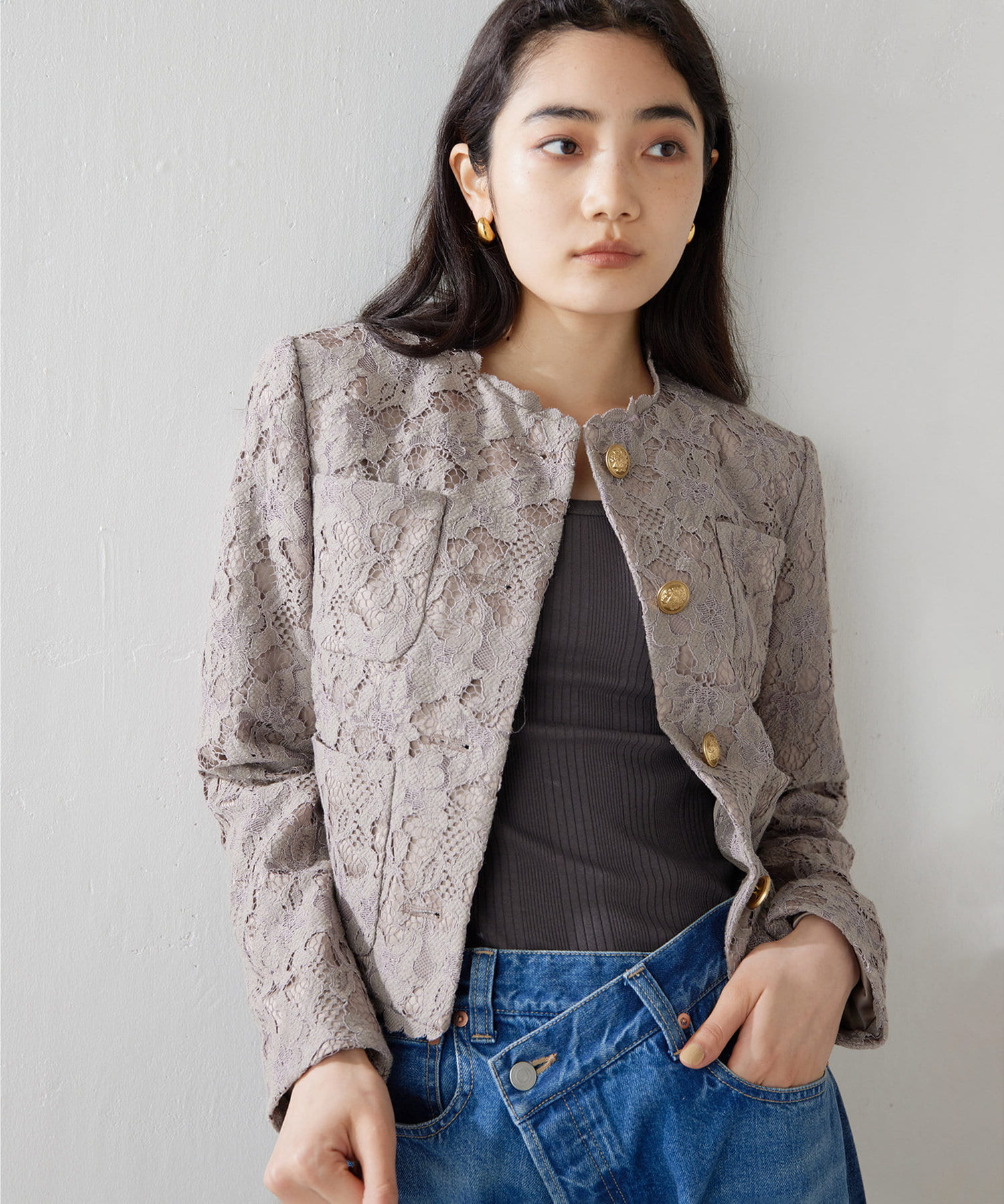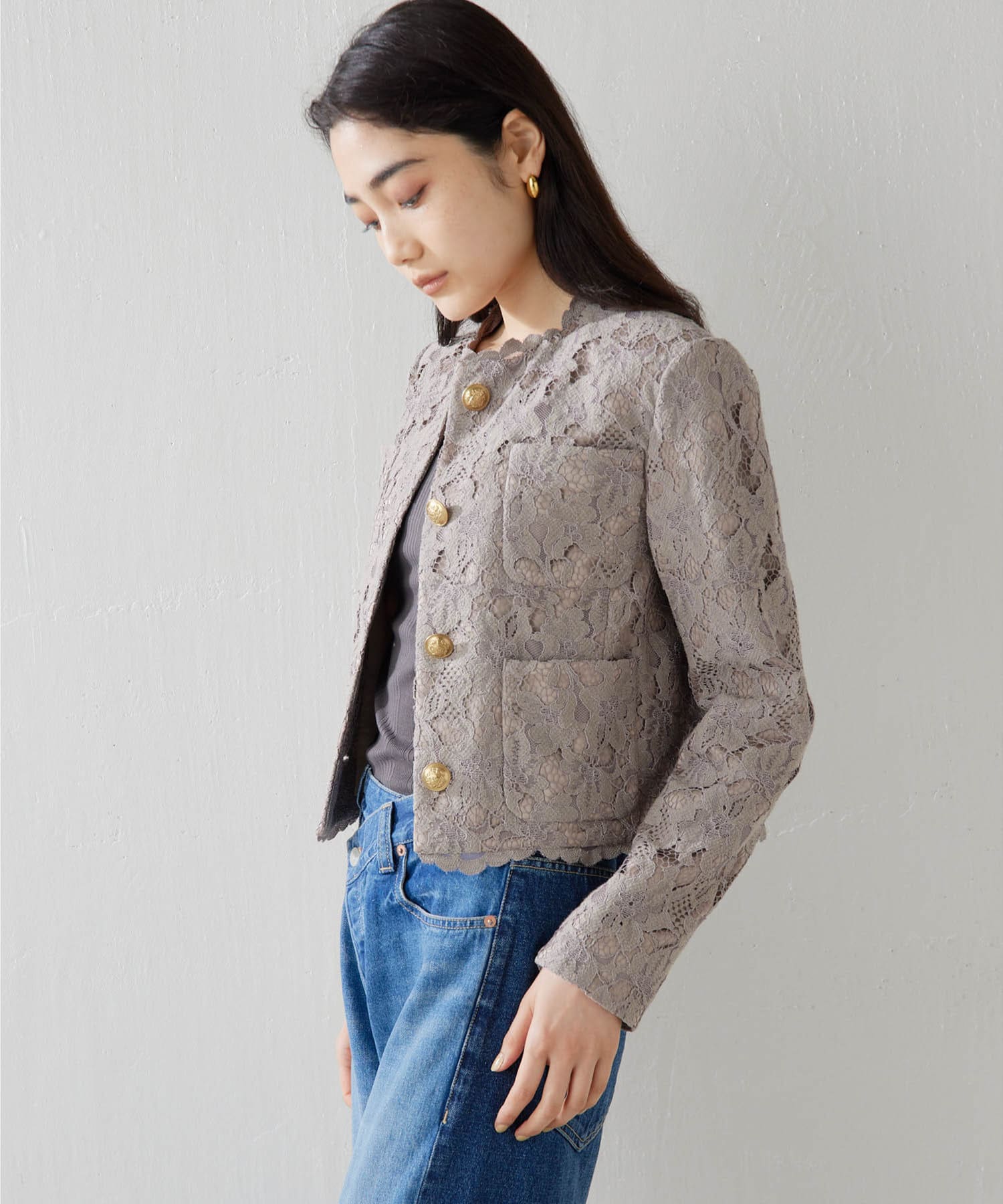 ■ノーカラーやコンパクトなシルエットが上品な一枚。