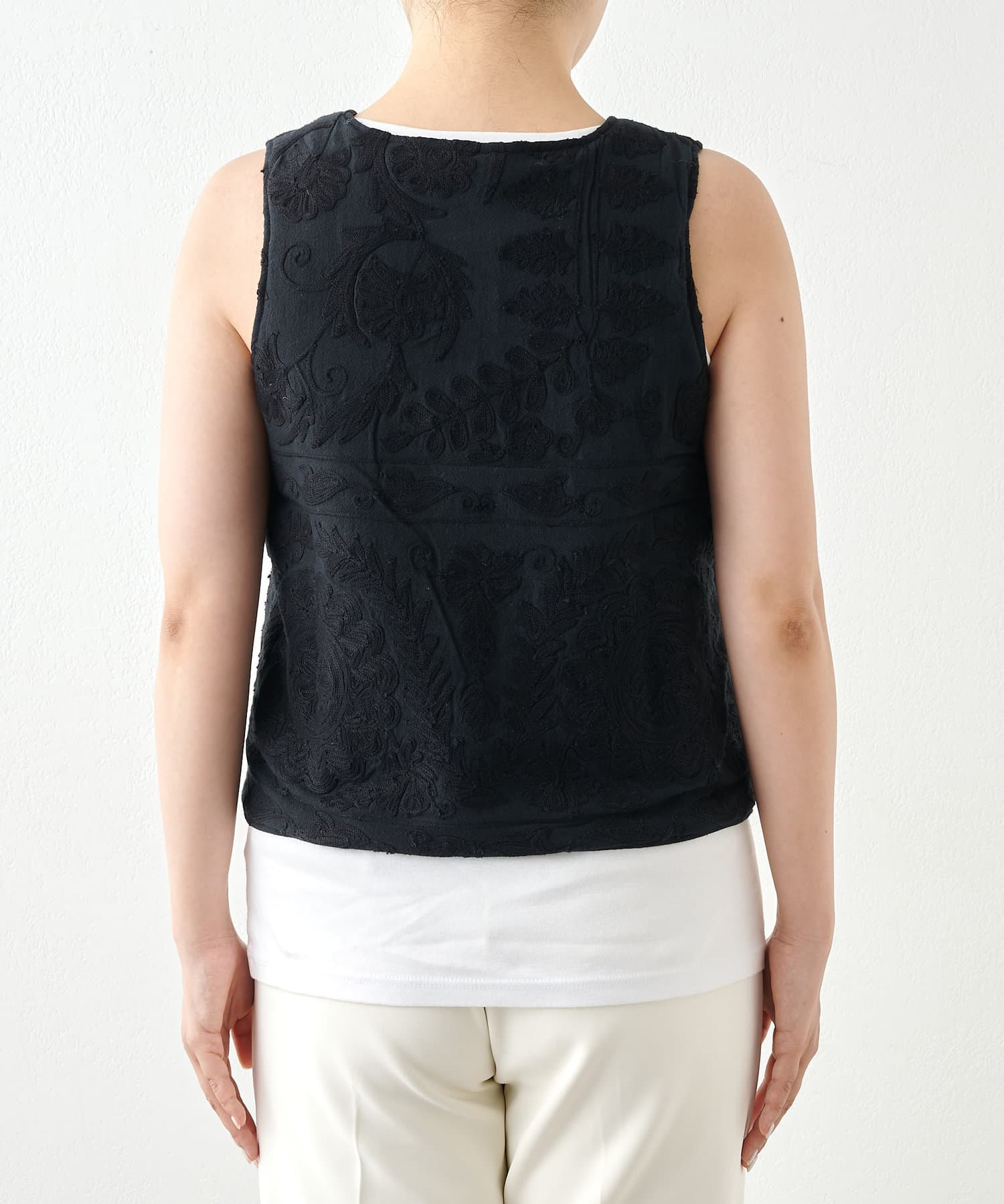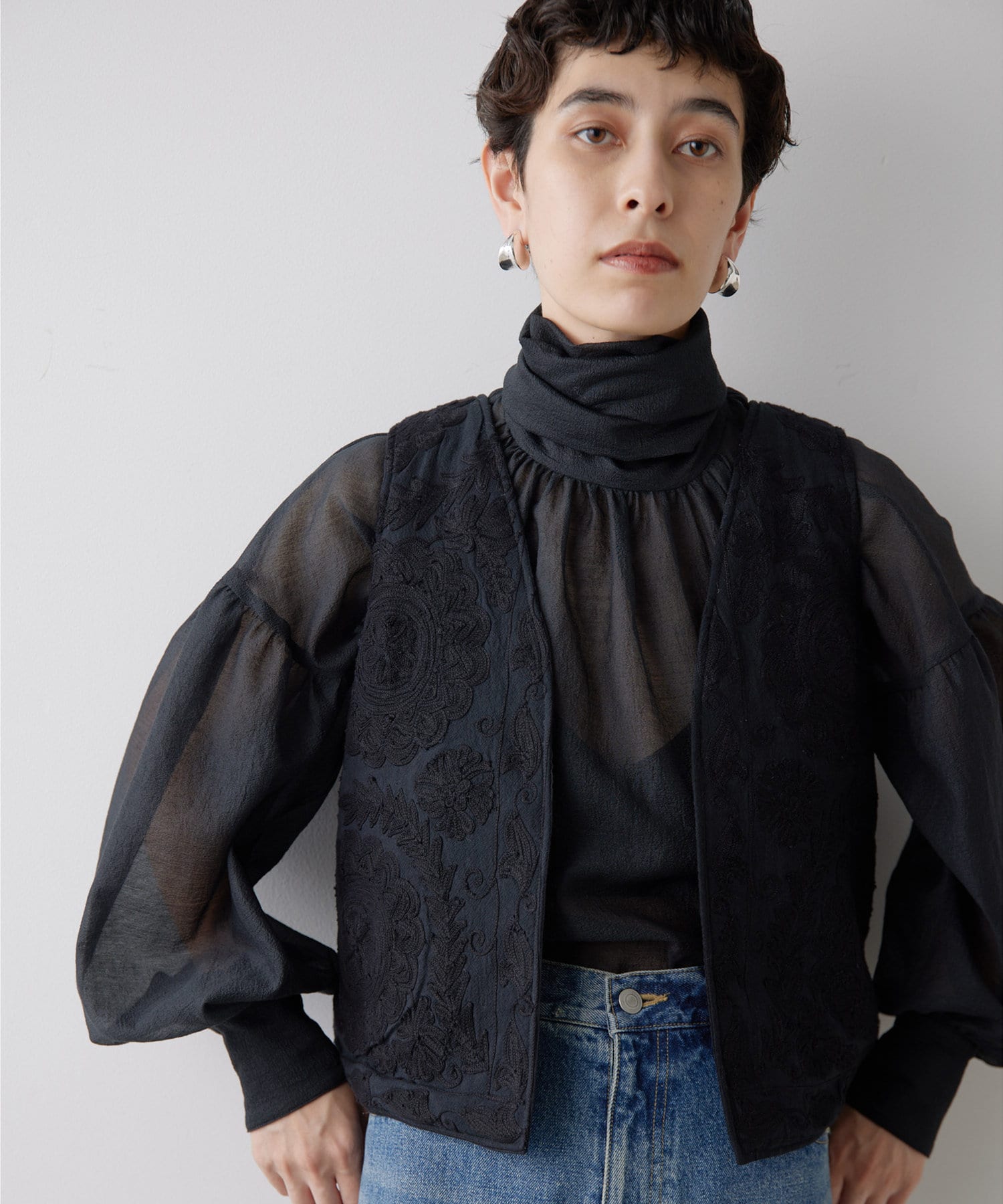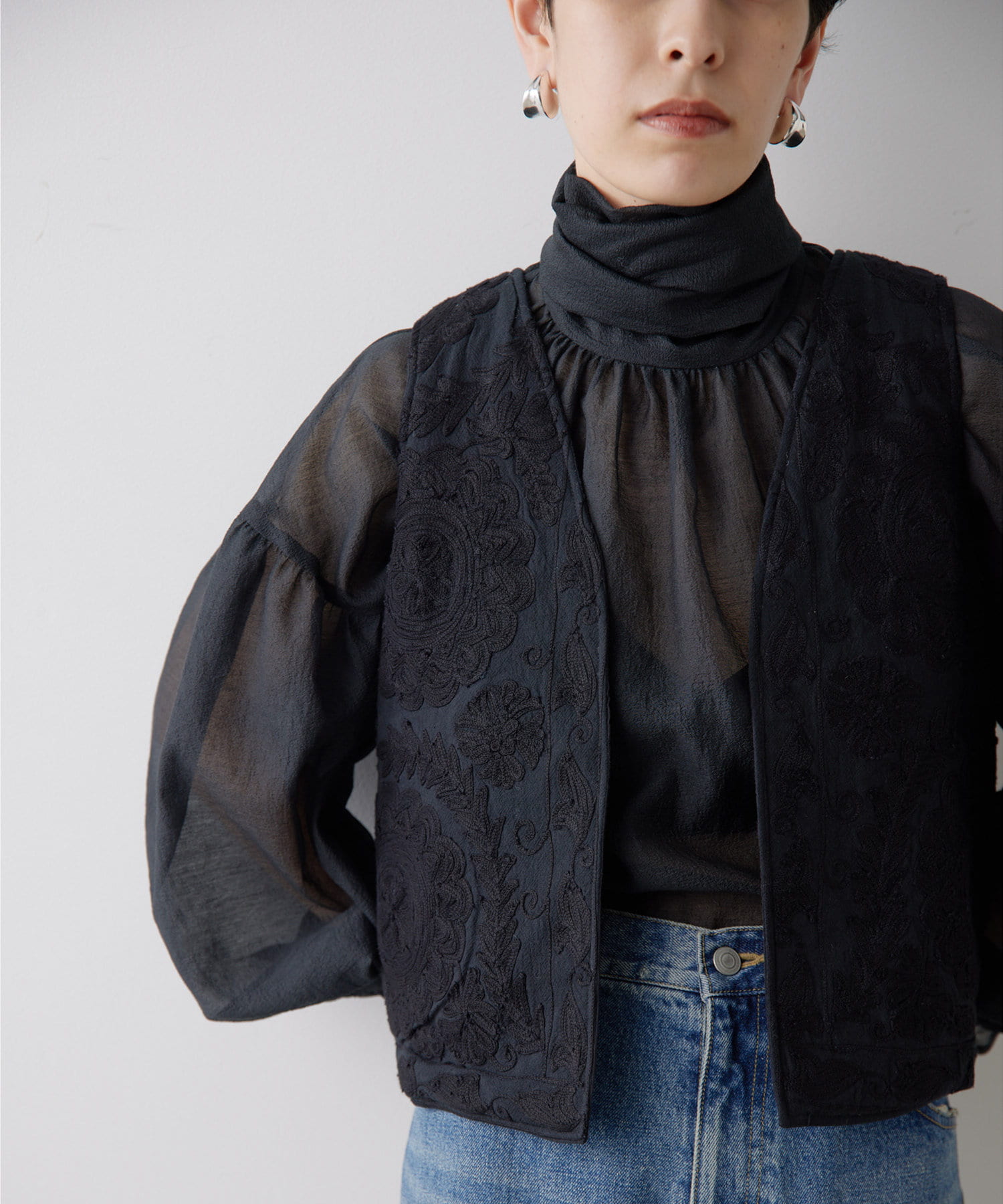 ハンド刺繍が目を惹く、クラフト感が魅力のコンパクトジレ