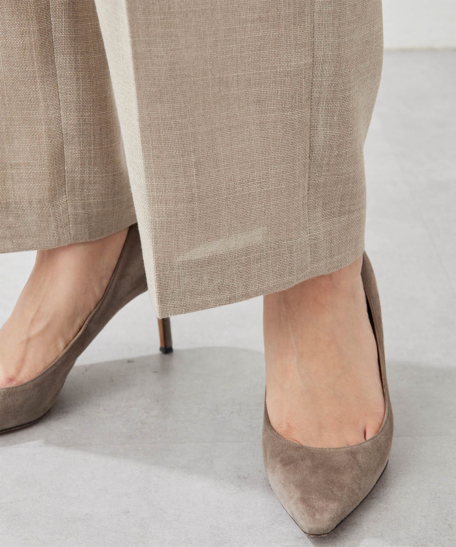 ポリエステルでありながら麻のような表情を表現し、麻特有のチクチク感やシワになりやすさを解消した素材。