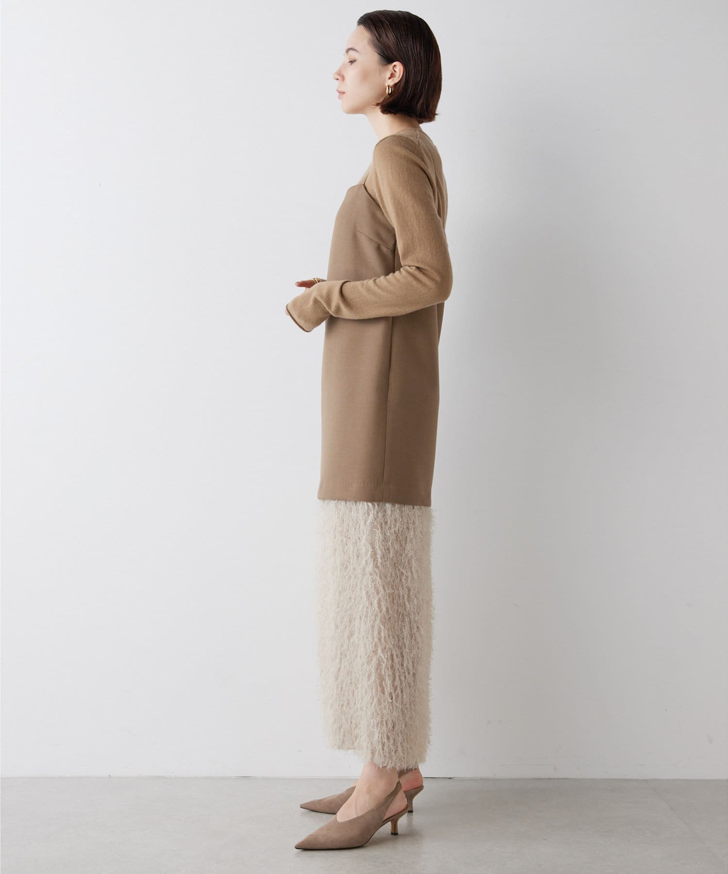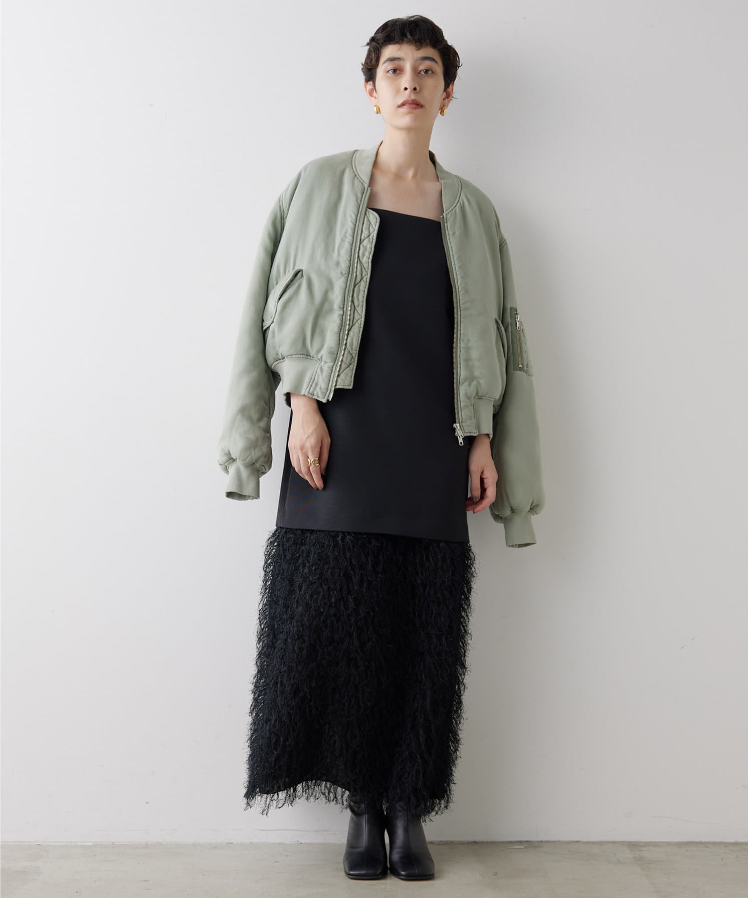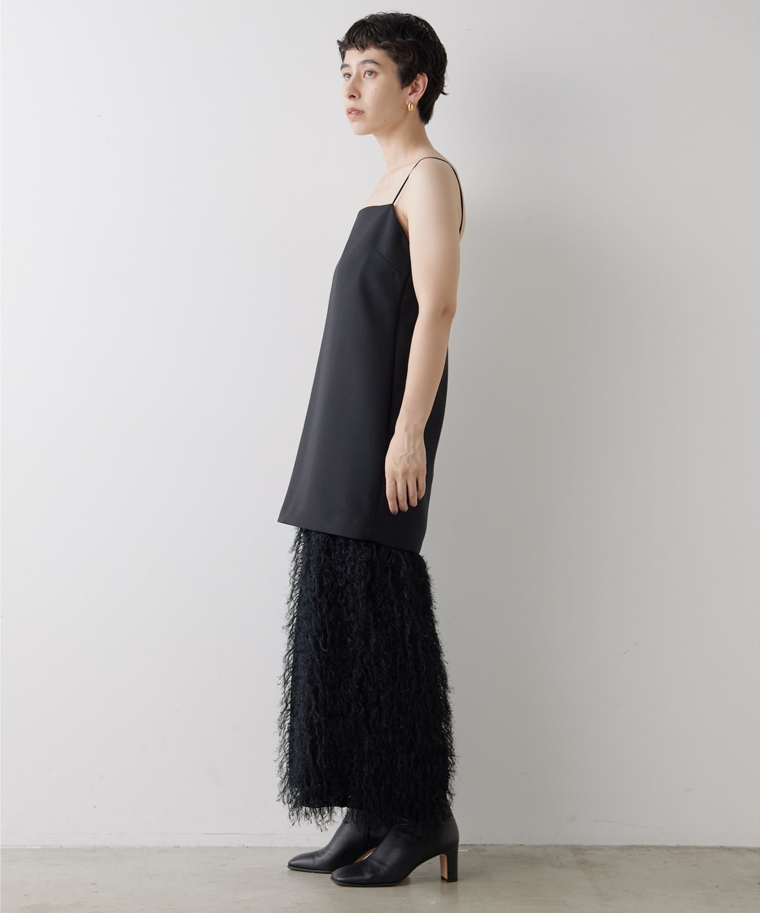 ■ハリ感のある身頃から、落ち感のあるフリンジを合わせミックスさせた素材感が好バランスなデザイン。