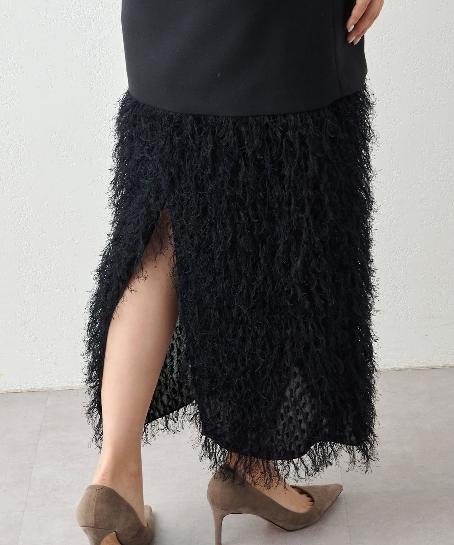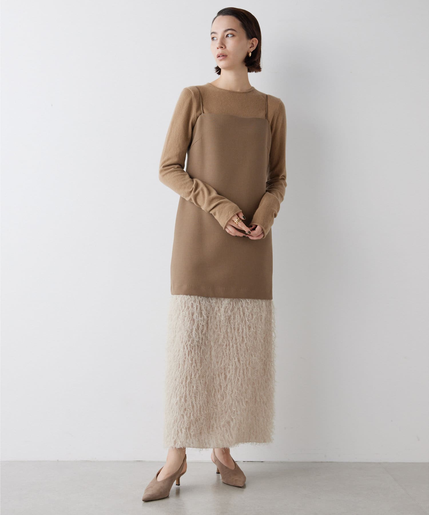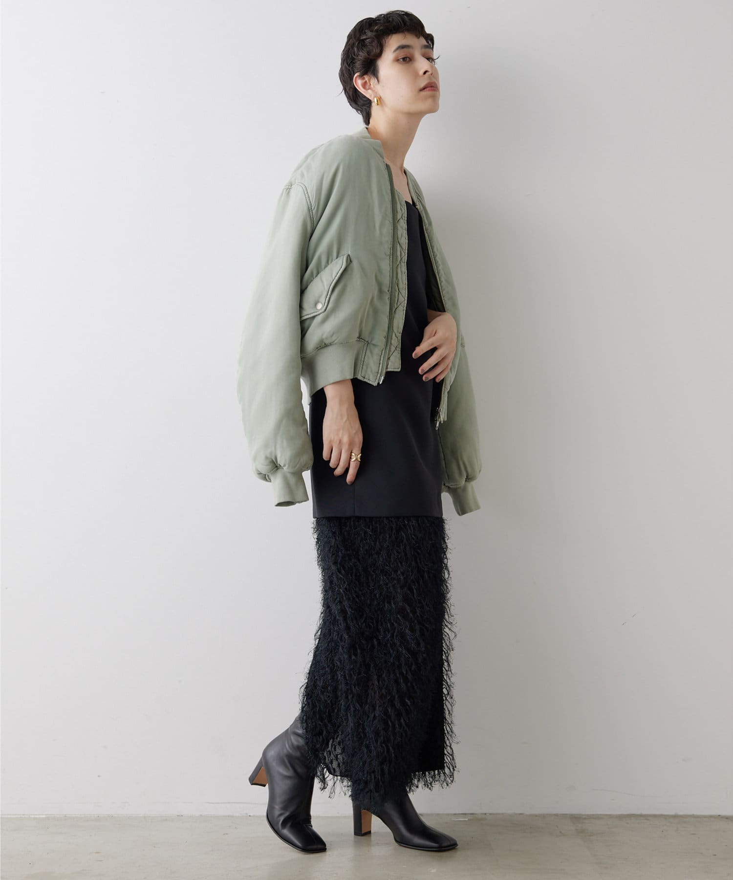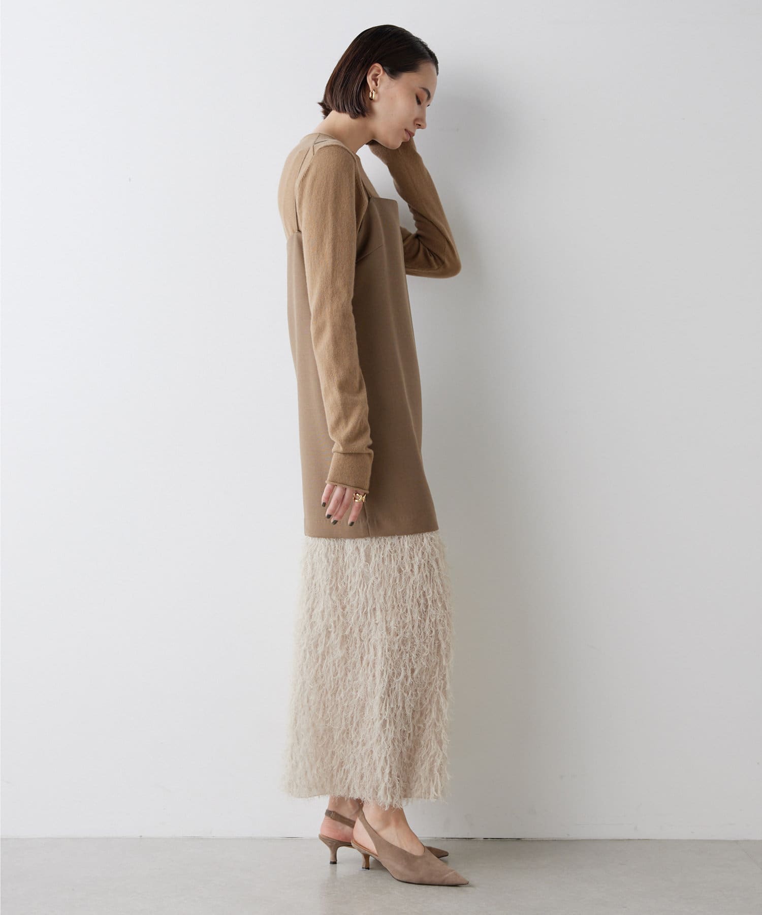 ■ハリ感のある身頃から、落ち感のあるフリンジを合わせミックスさせた素材感が好バランスなデザイン。