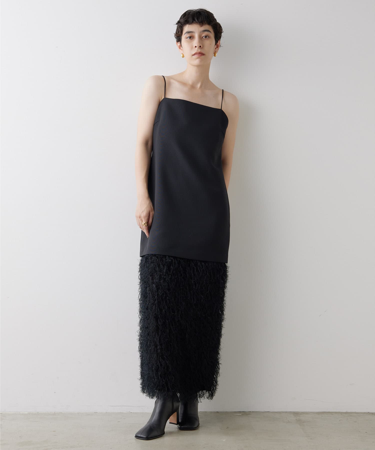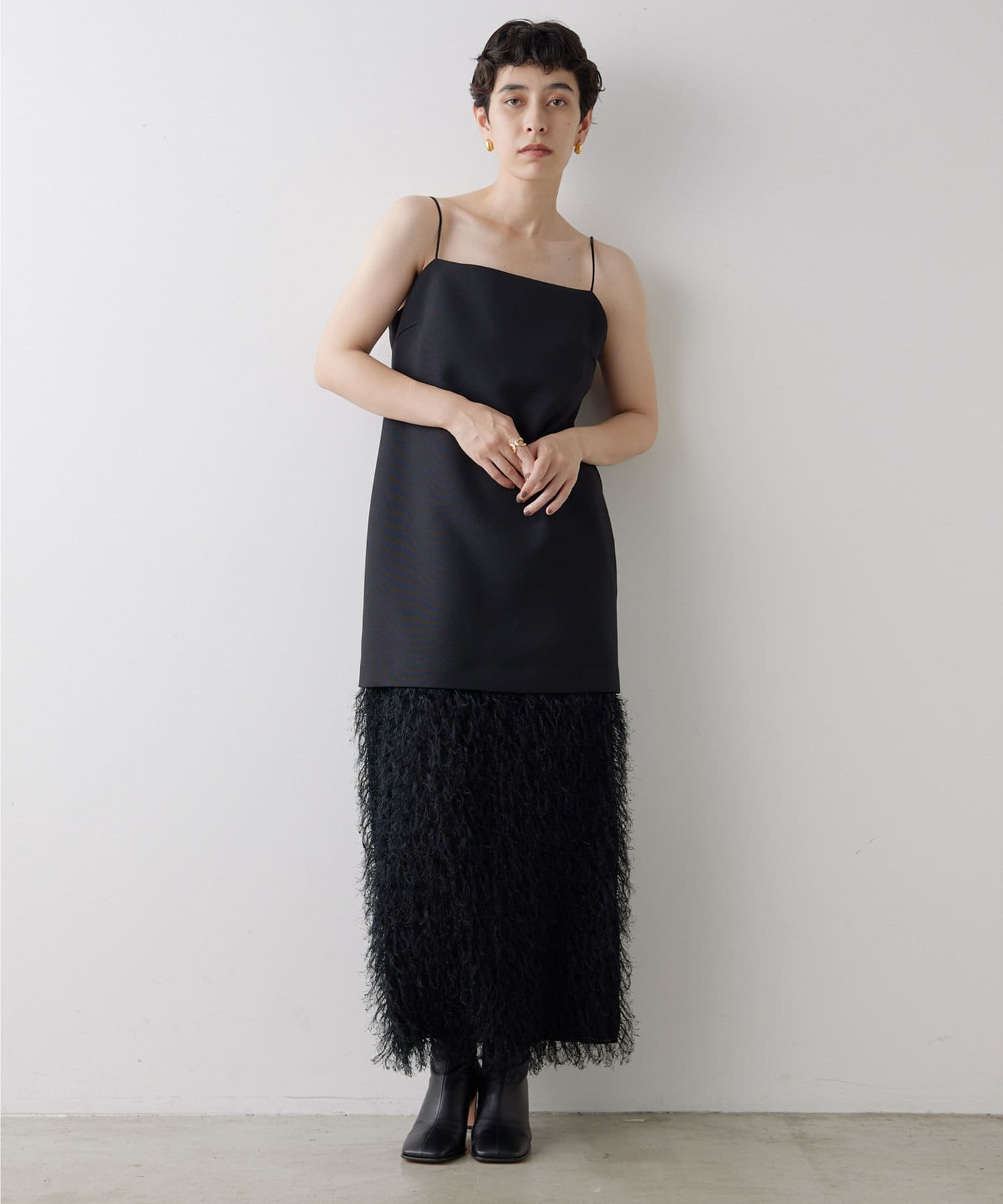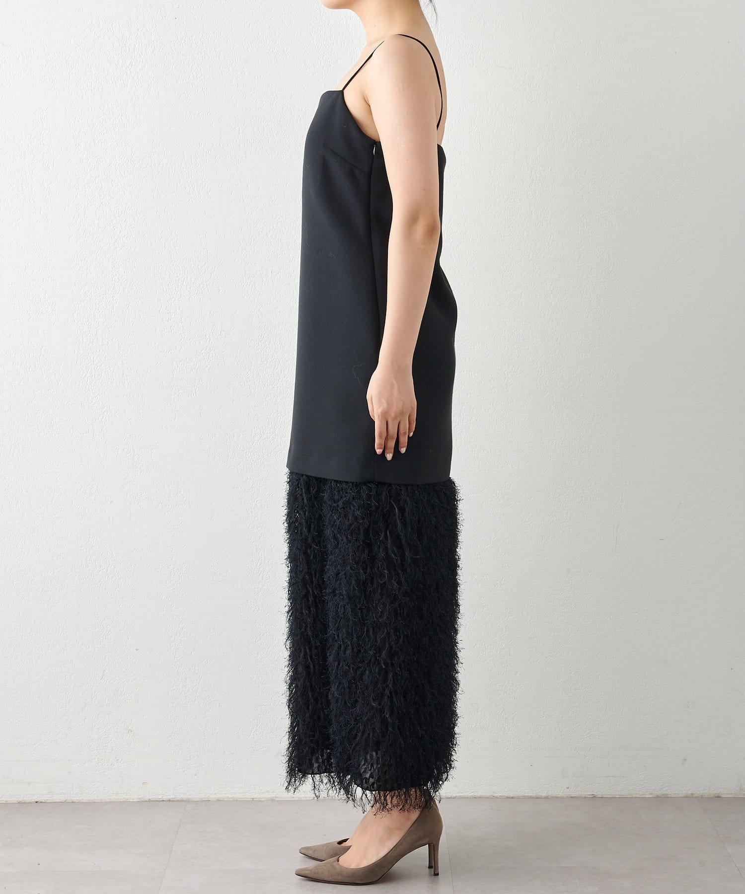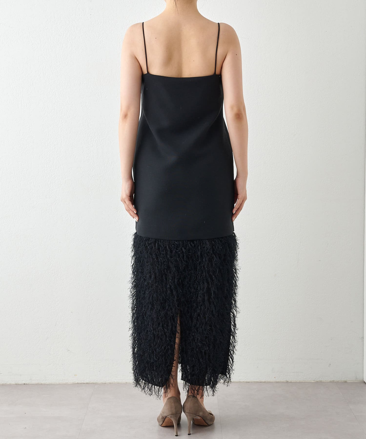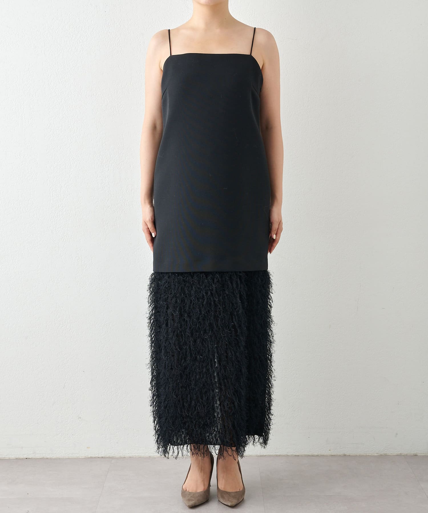 ■裾のフリンジが一枚で華やぐキャミソールワンピース。