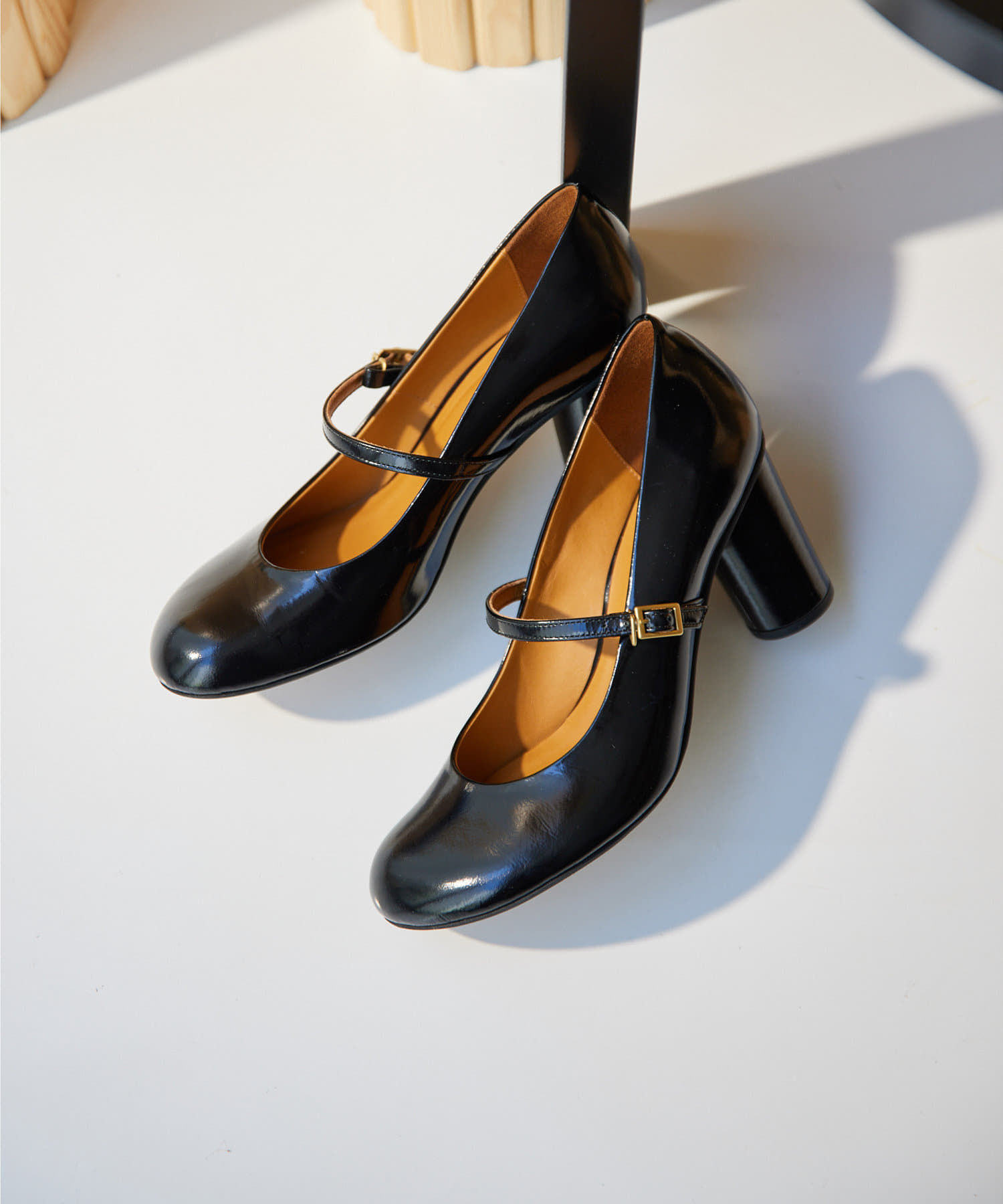 ■ラウンドフォルムの木型にこだわったストラップパンプス。