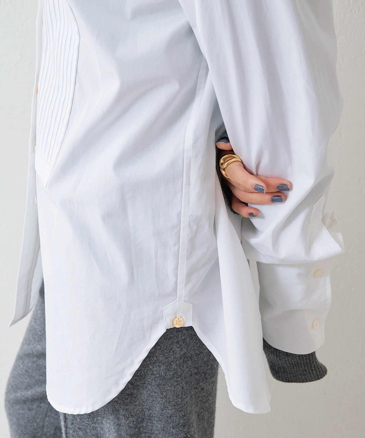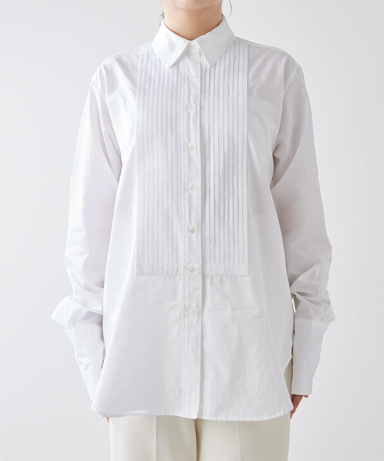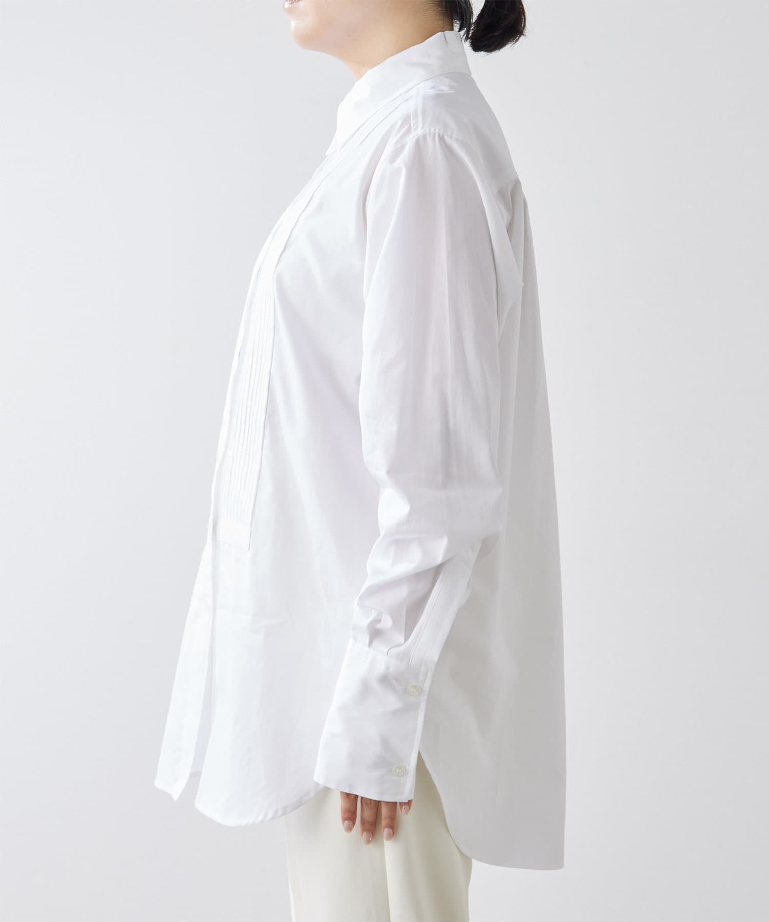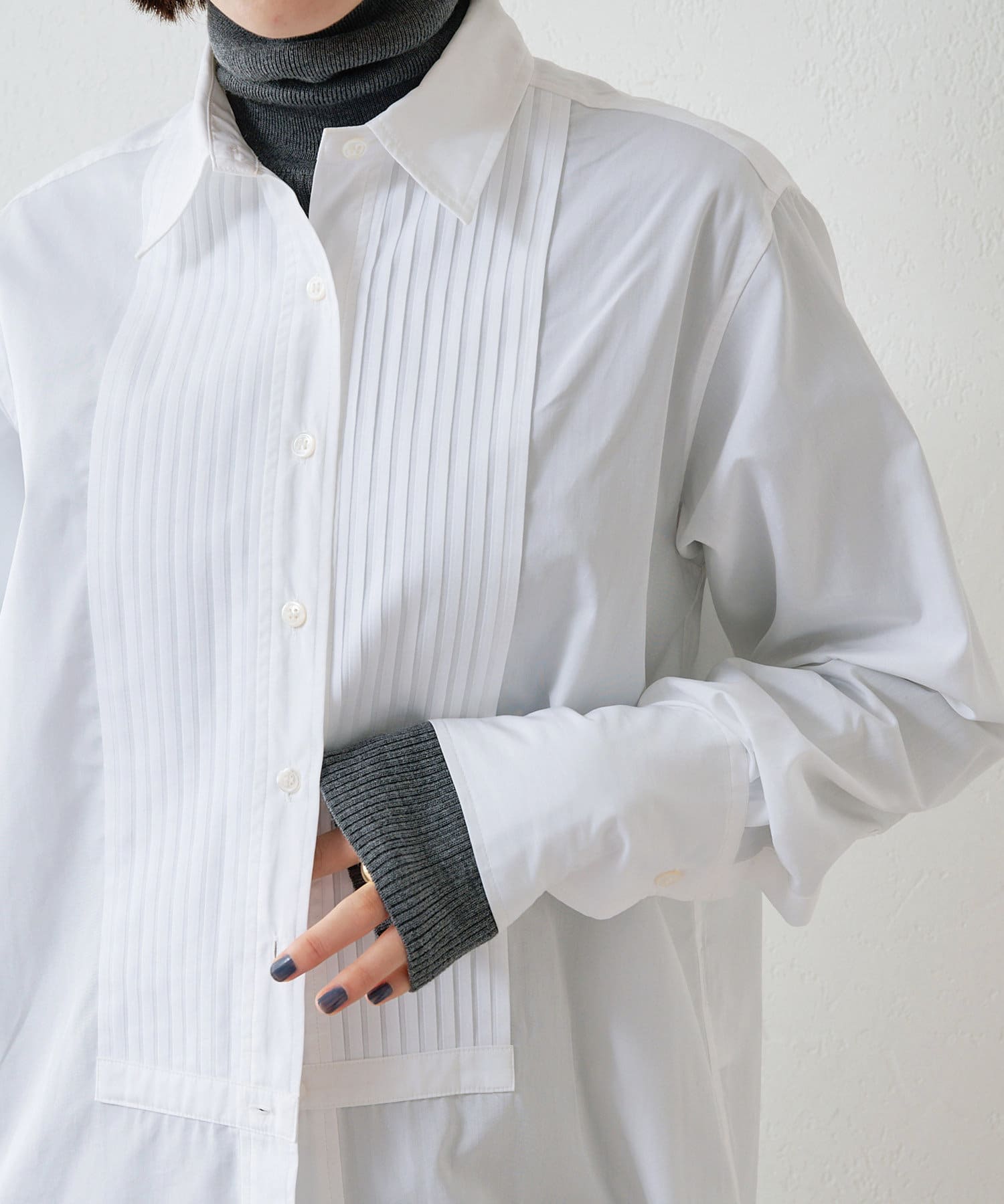 ボザム部分:イブニングドレスのフロントと袖口に使われるピケ素材。身頃部分:セレモニーの場でもドレスカジュアルでも対応できる万能クオリティのシャツ生地。