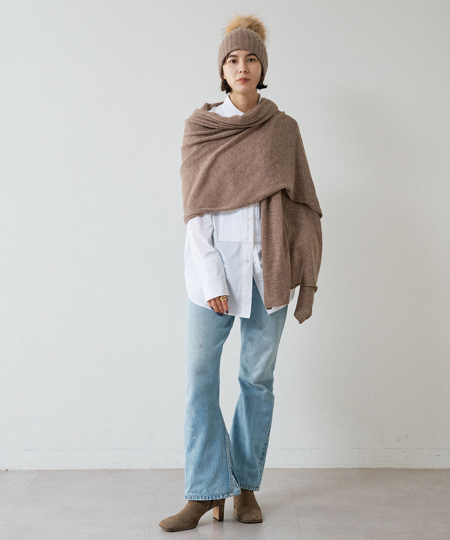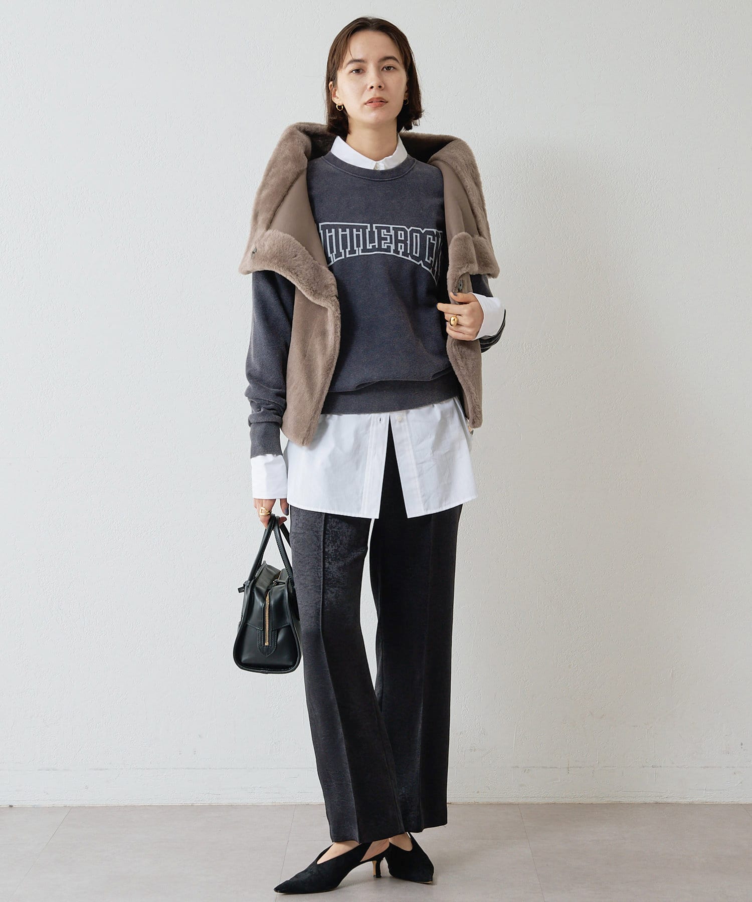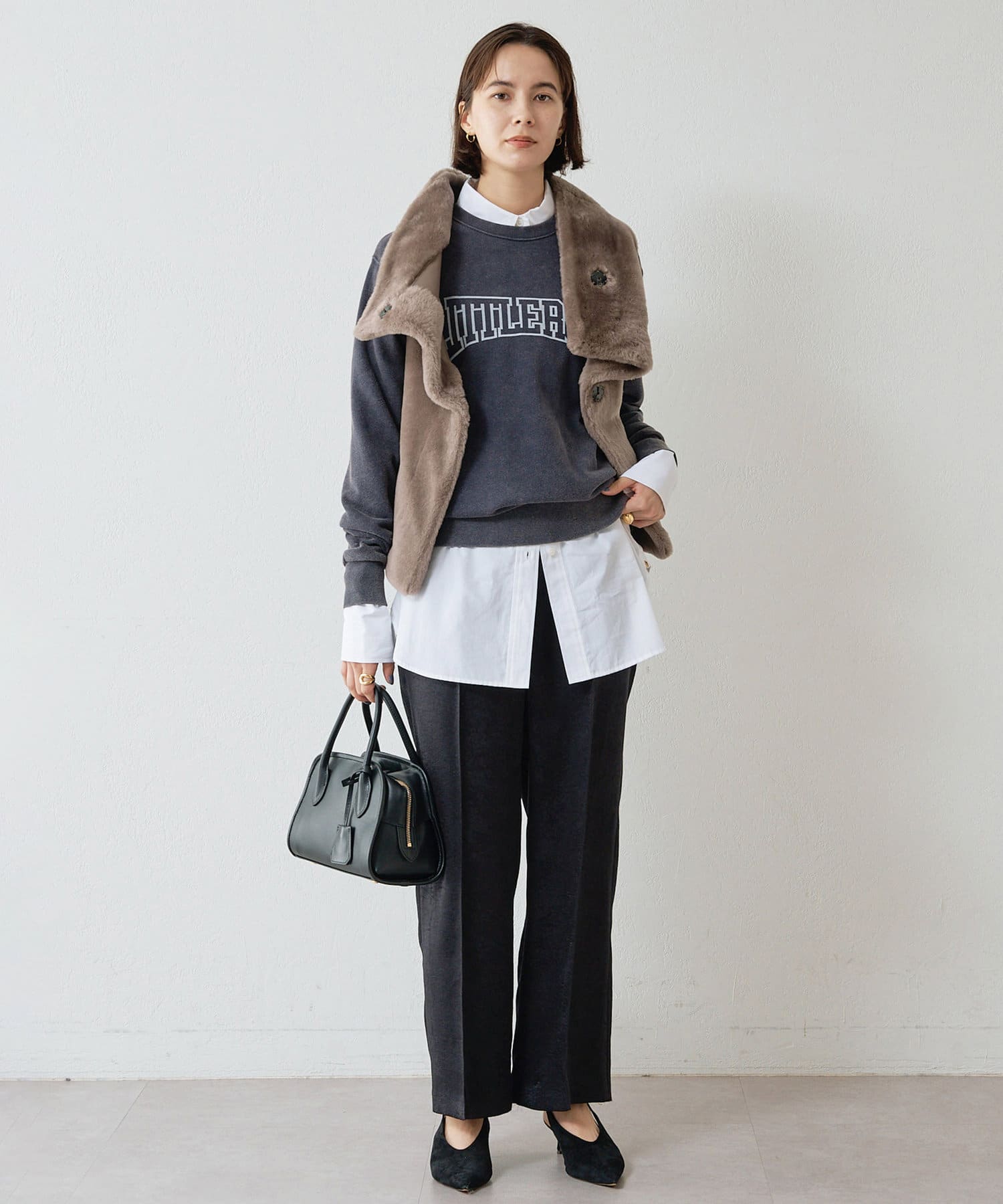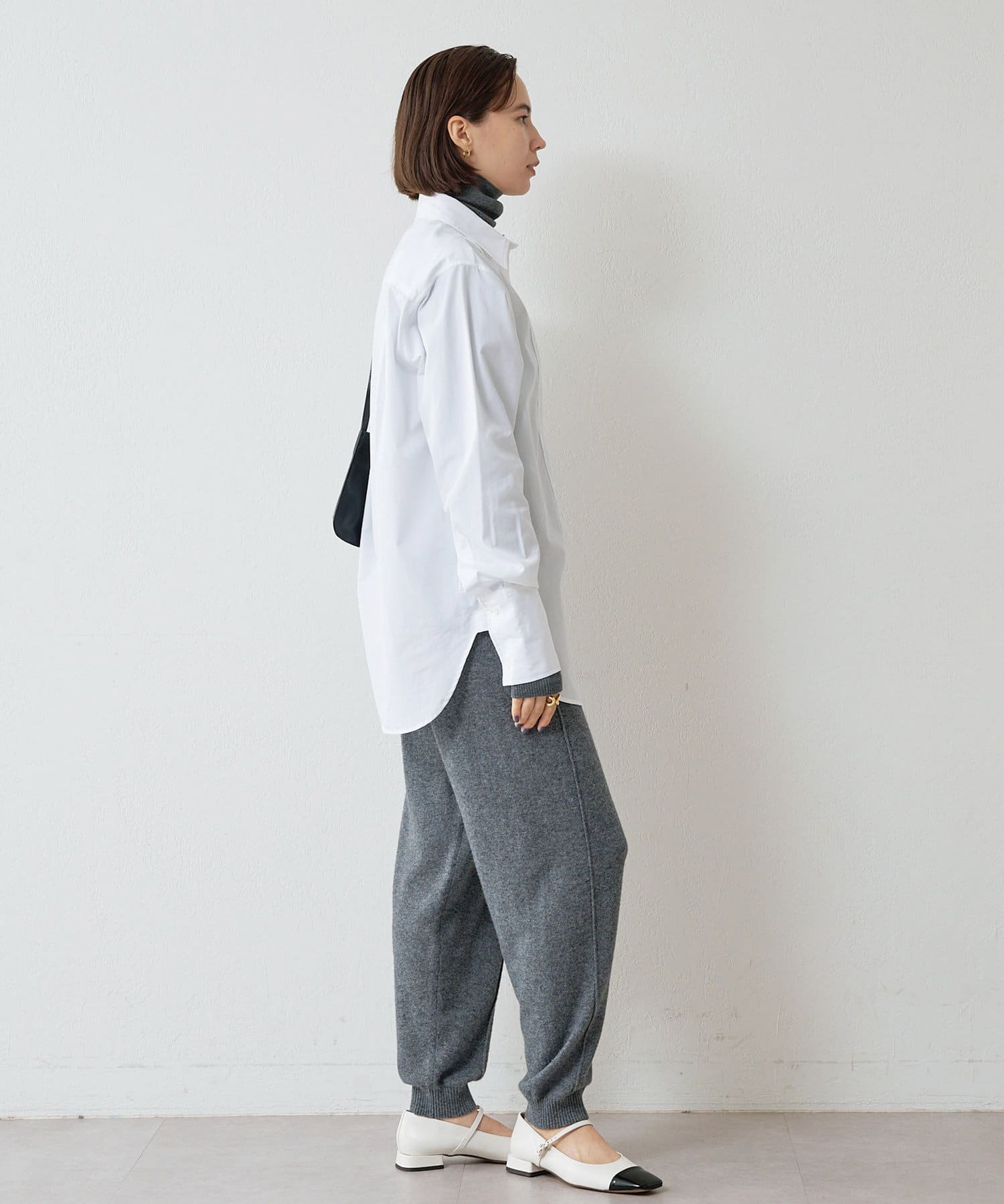 ■ドロップショルダーのゆったりとしたシルエットに、長めの袖口カフスもポイント。
