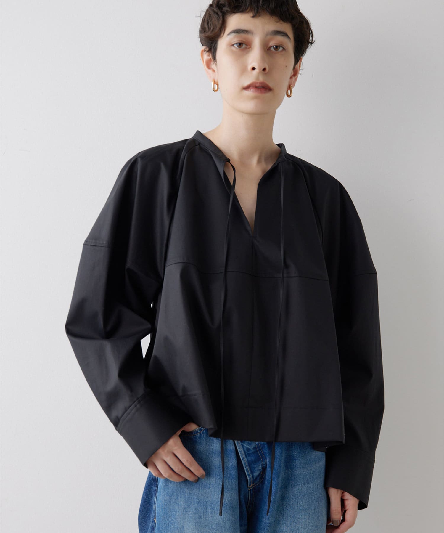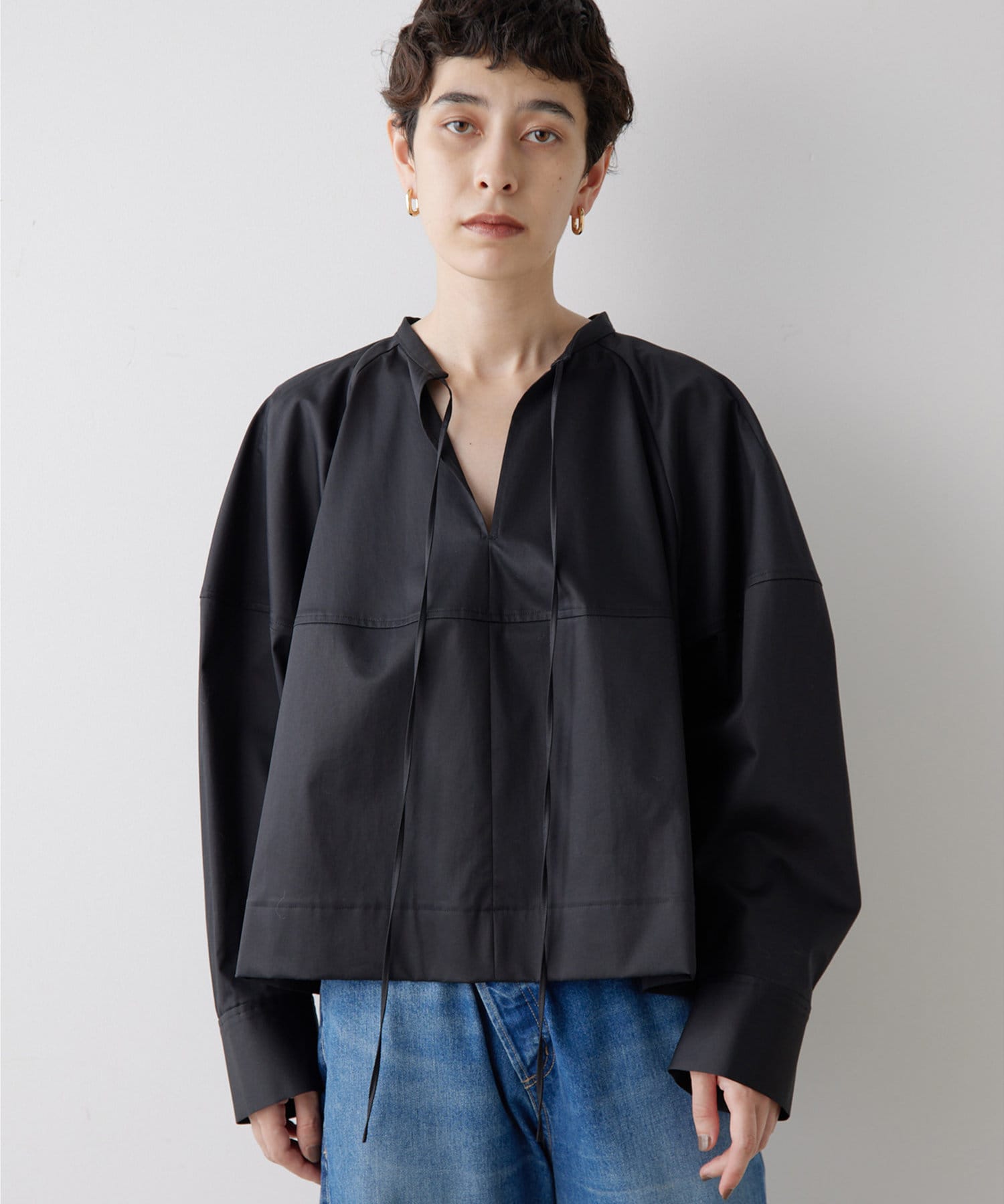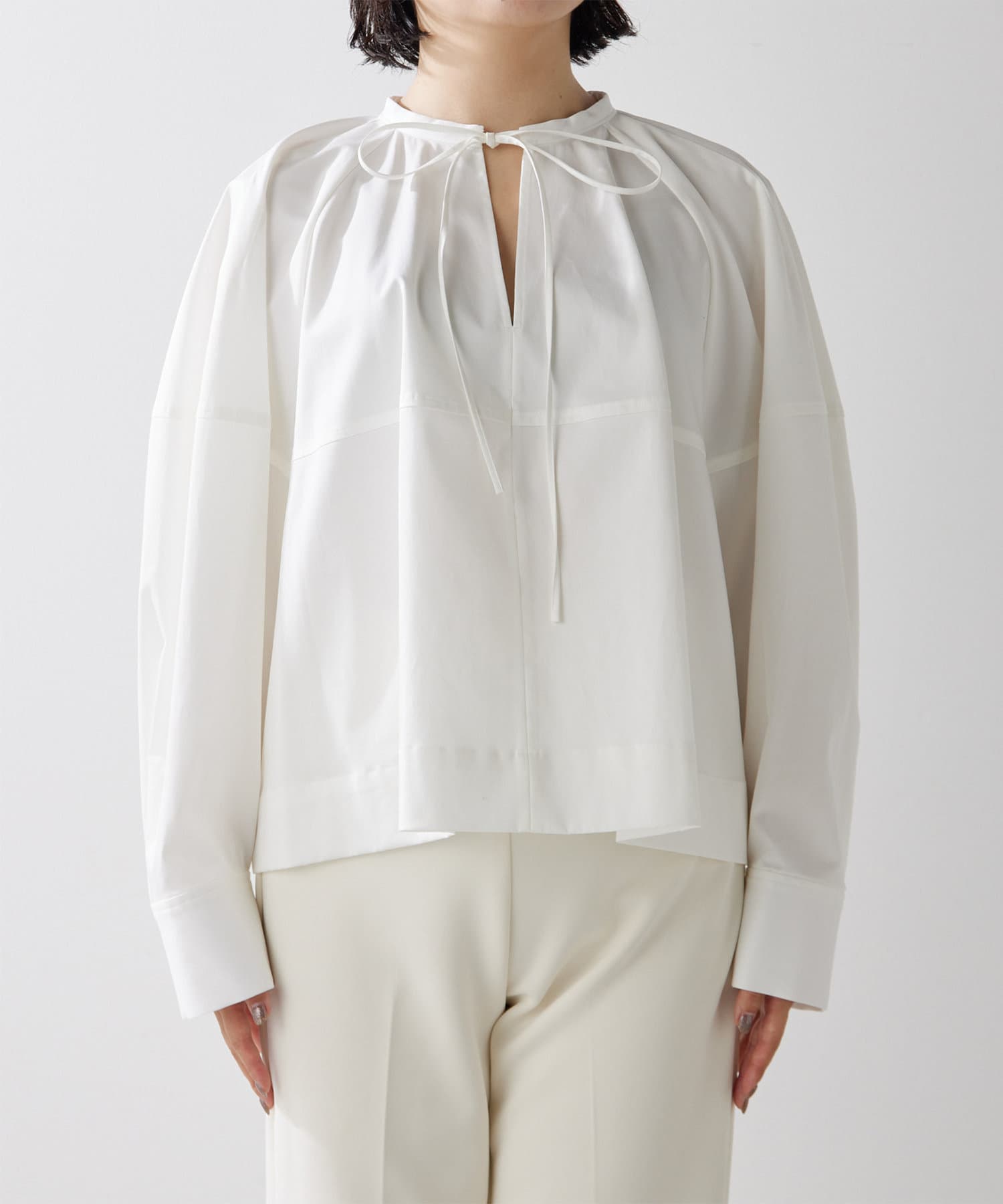 ■程よいツヤ感とハリ感のある生地を使用したブラウス。