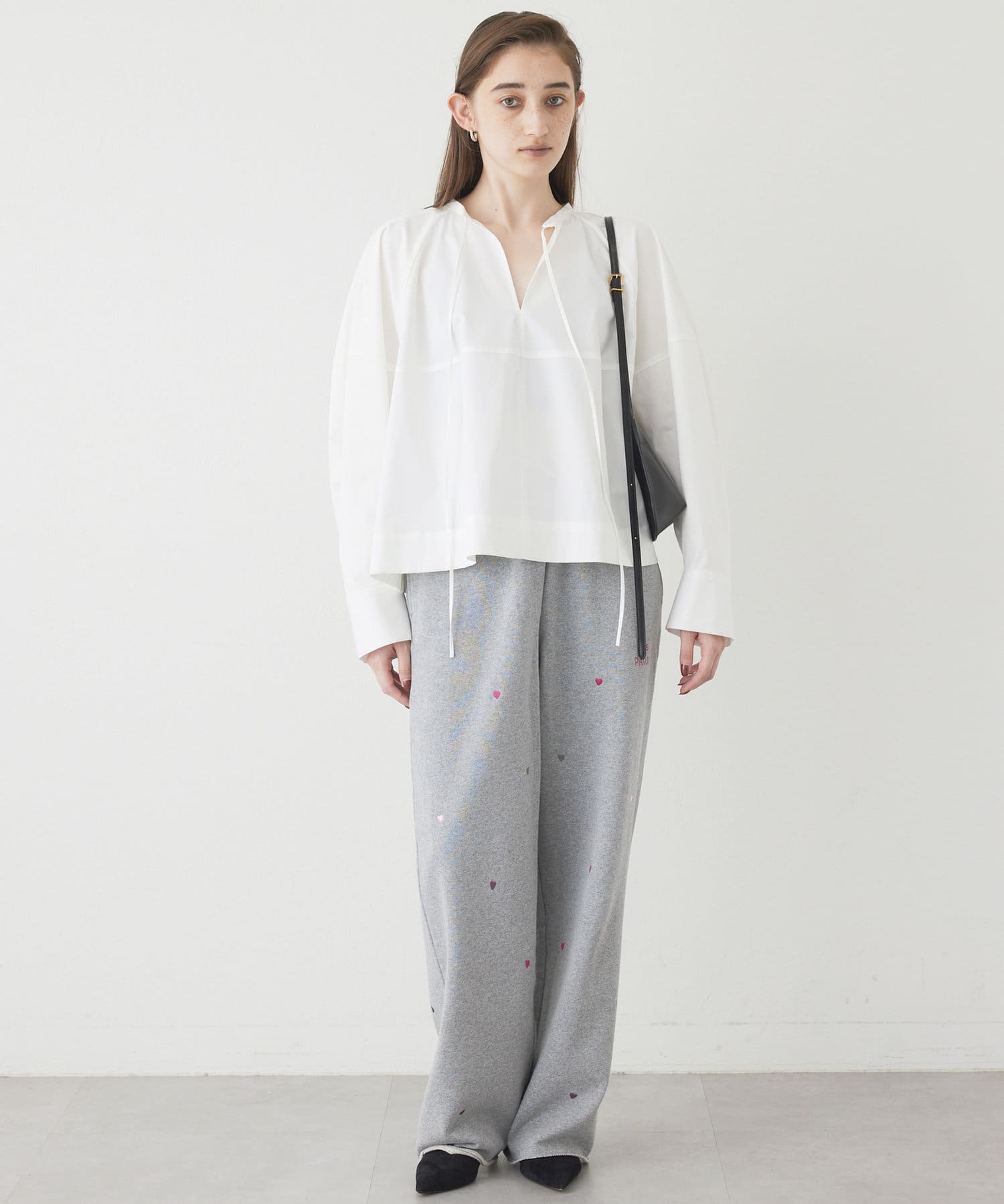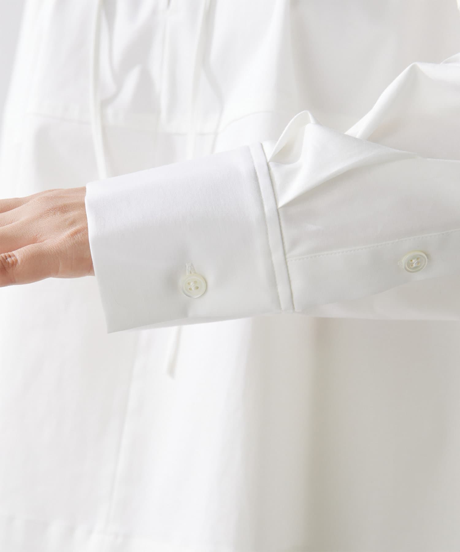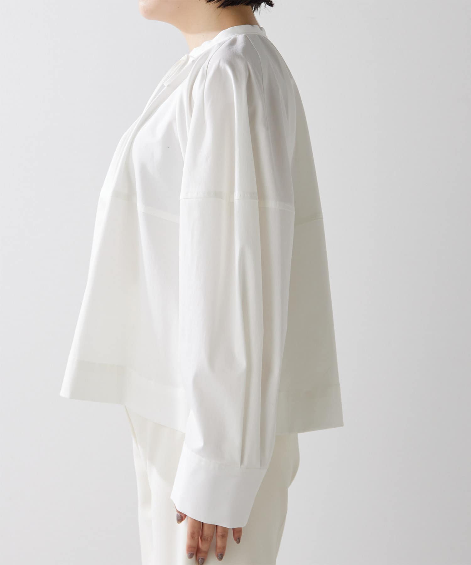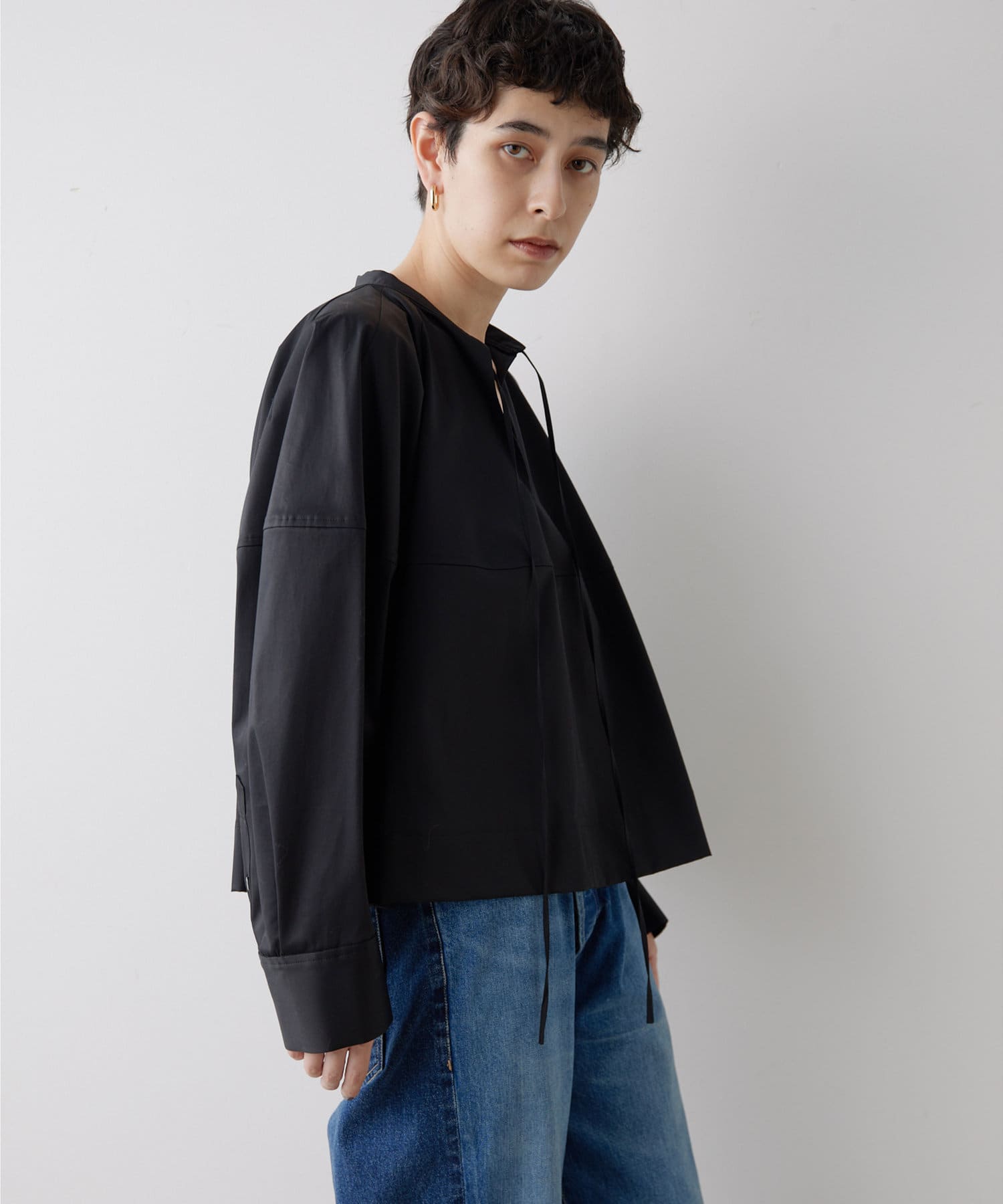 ■程よいツヤ感とハリ感のある生地を使用したブラウス。