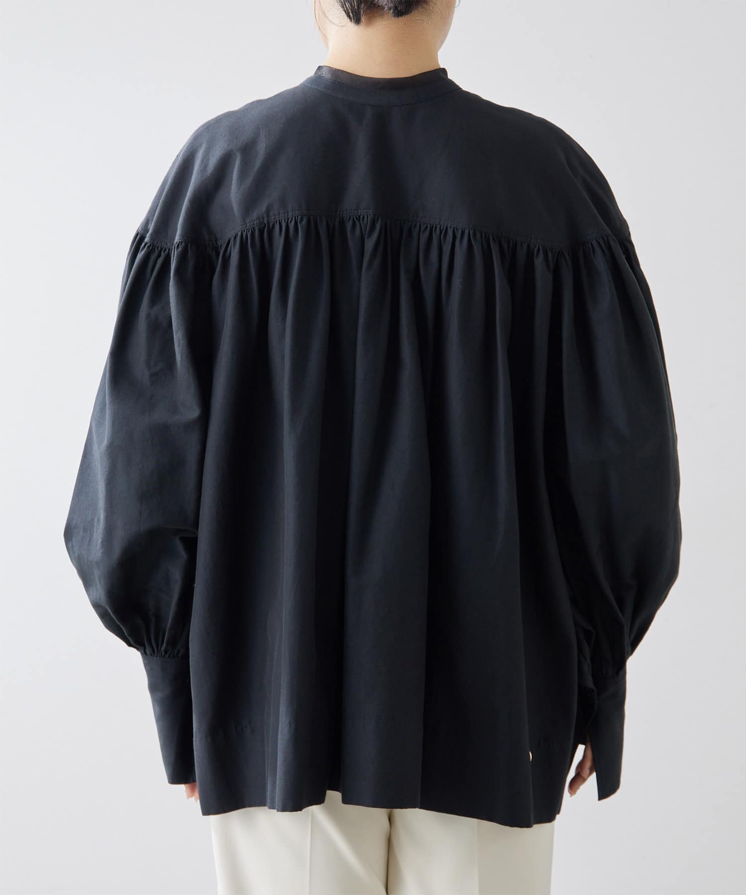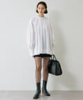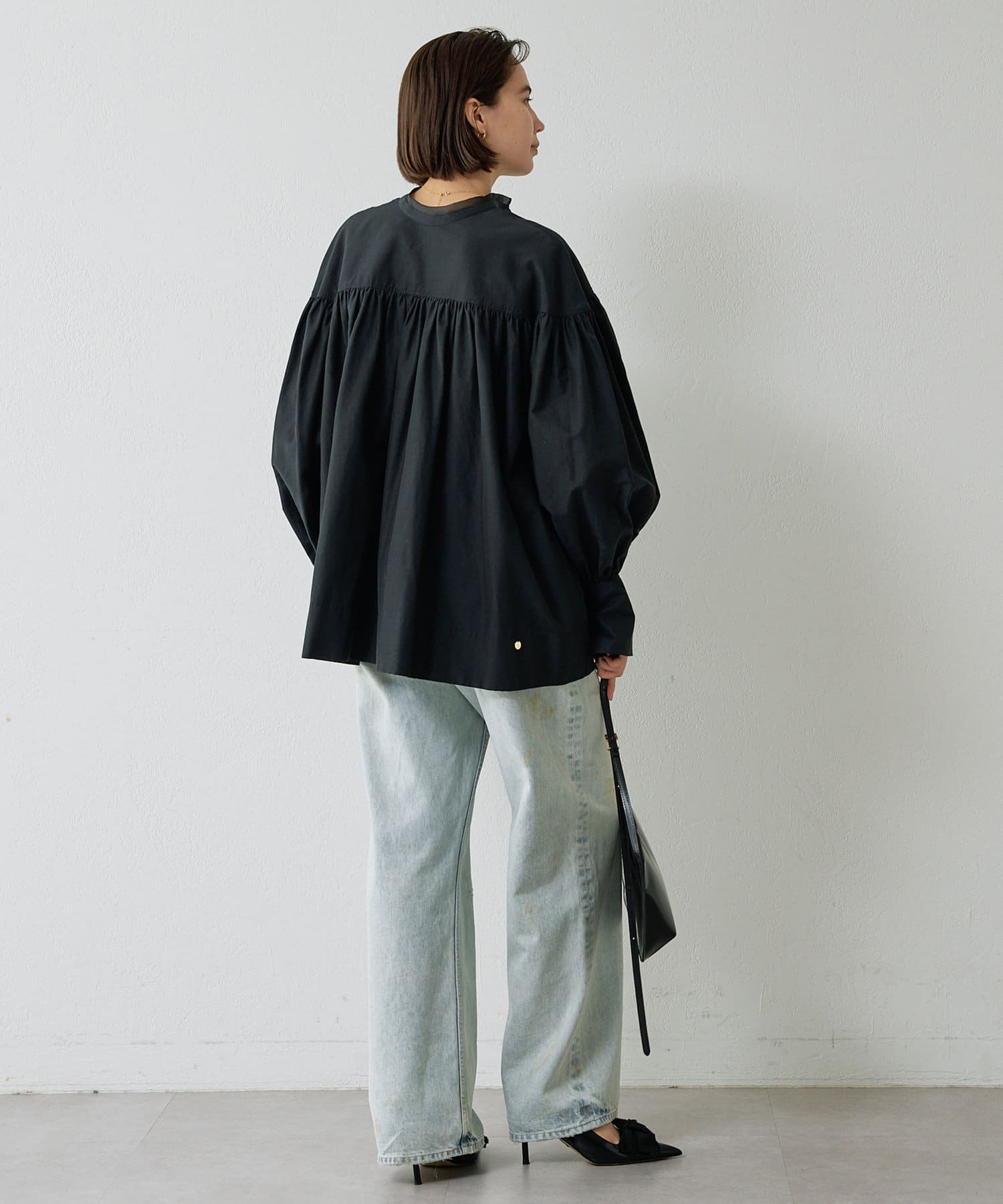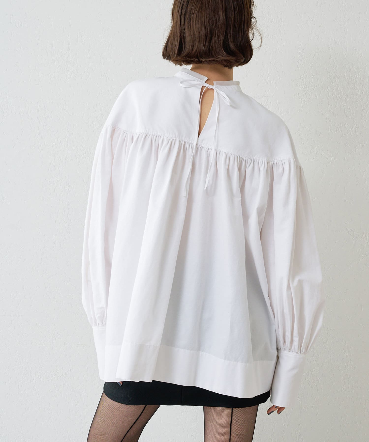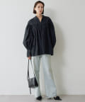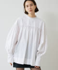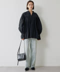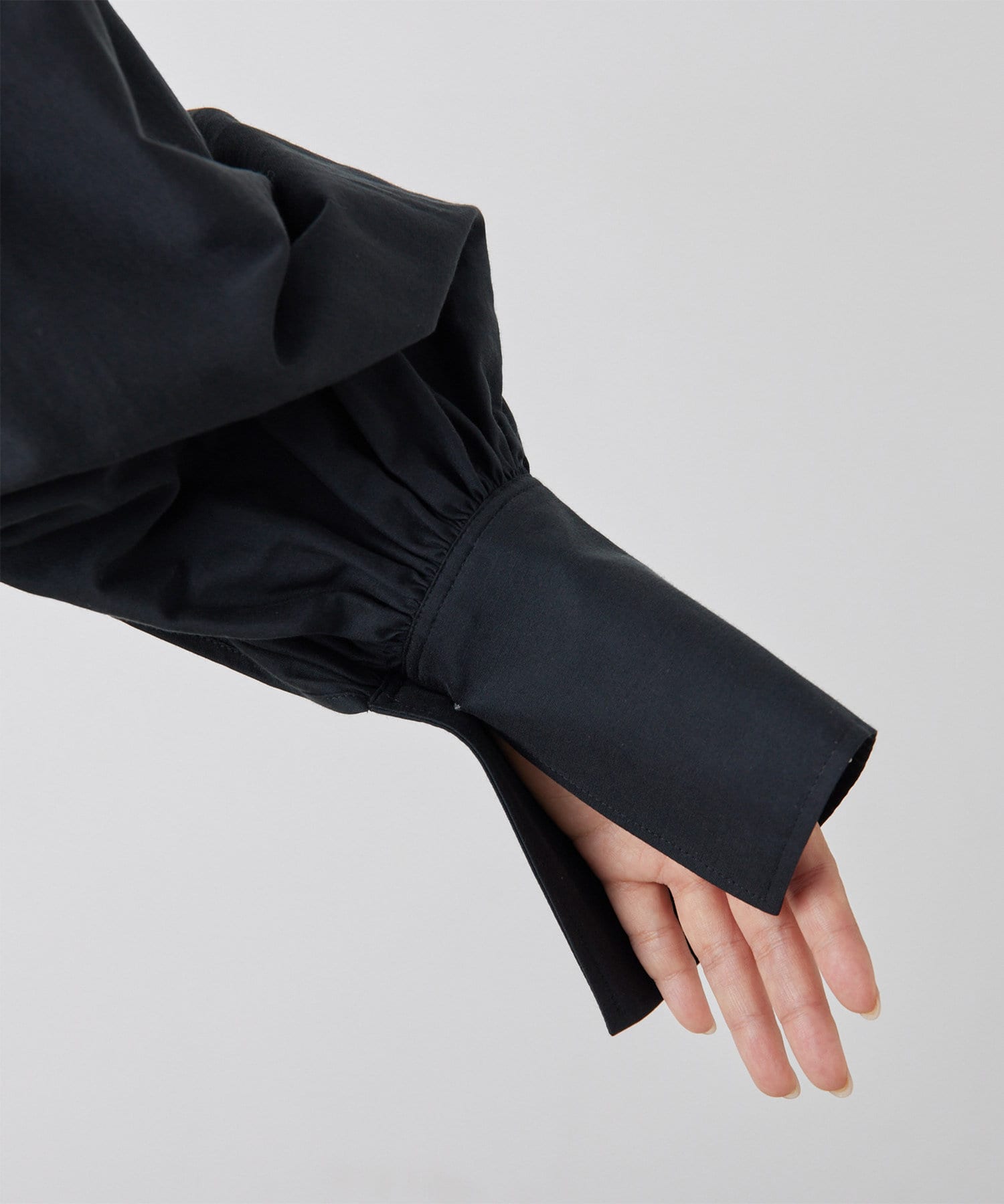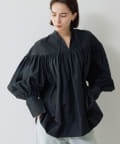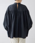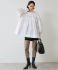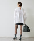 ボリューム感がオシャレなブラウス。前後2wayで使えるアイテムです。張り感とボリュームがあるので、小柄さんはショートパンツ合わせやスッキリしたシルエットのボトムス合わせがオススメ。