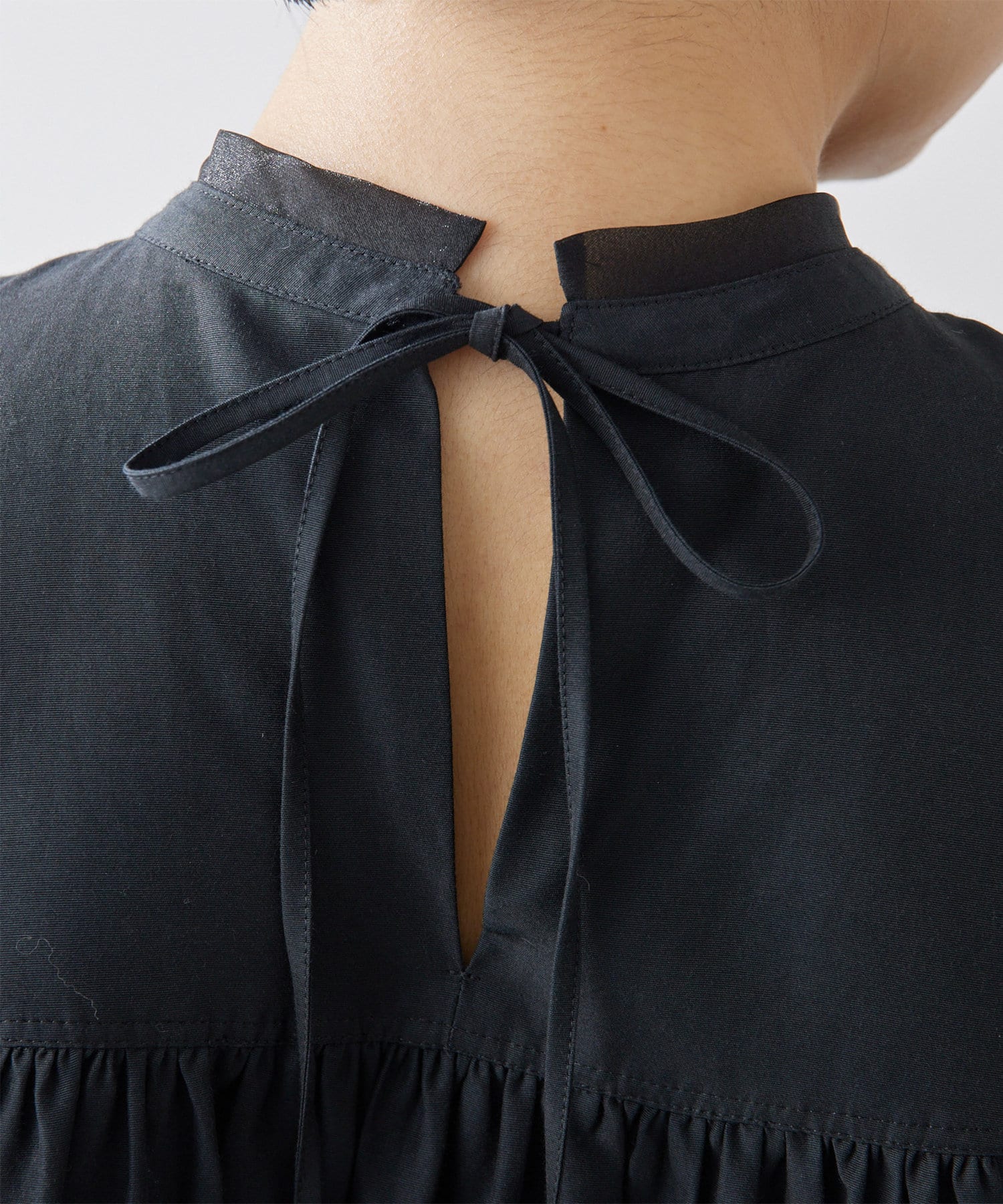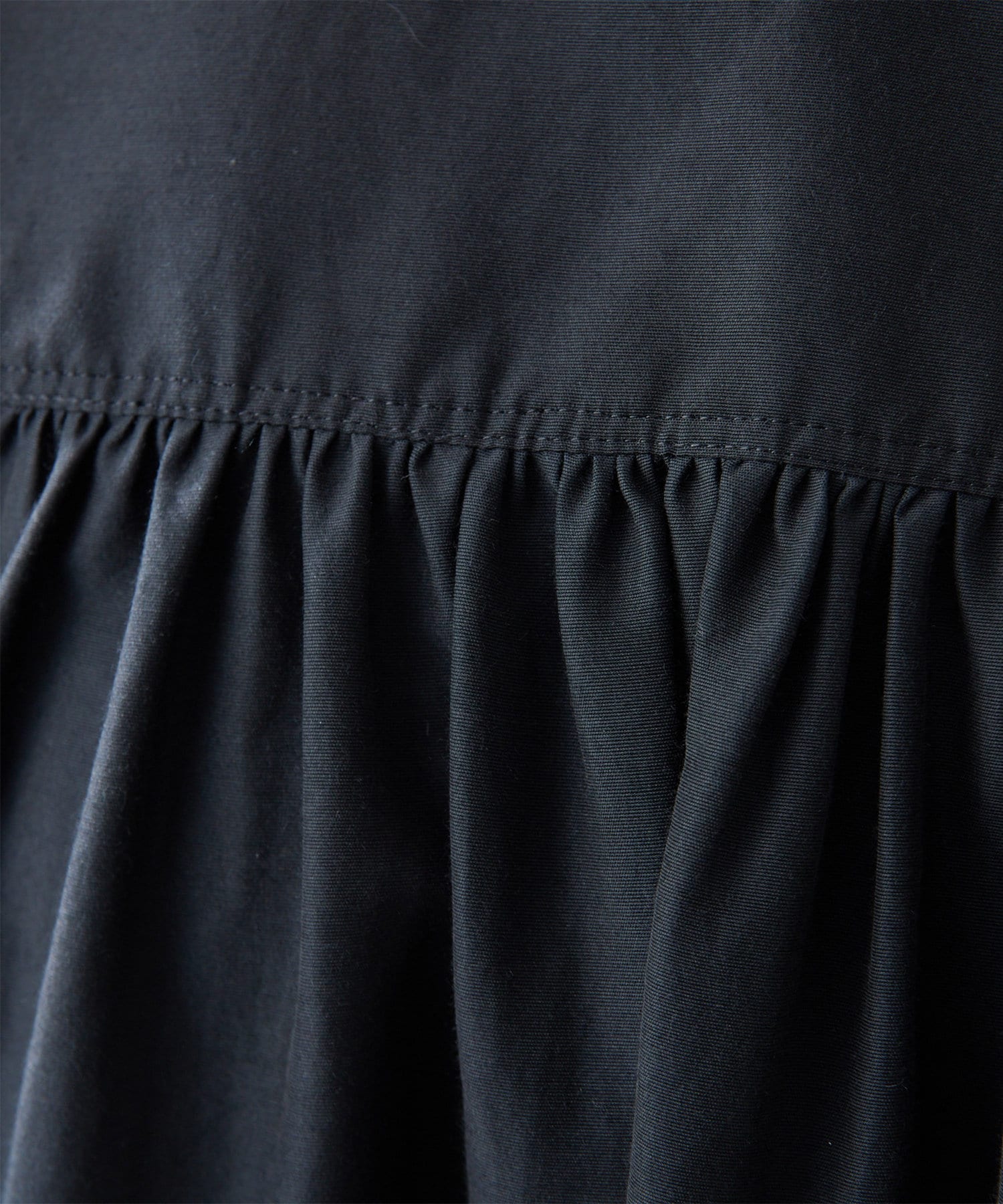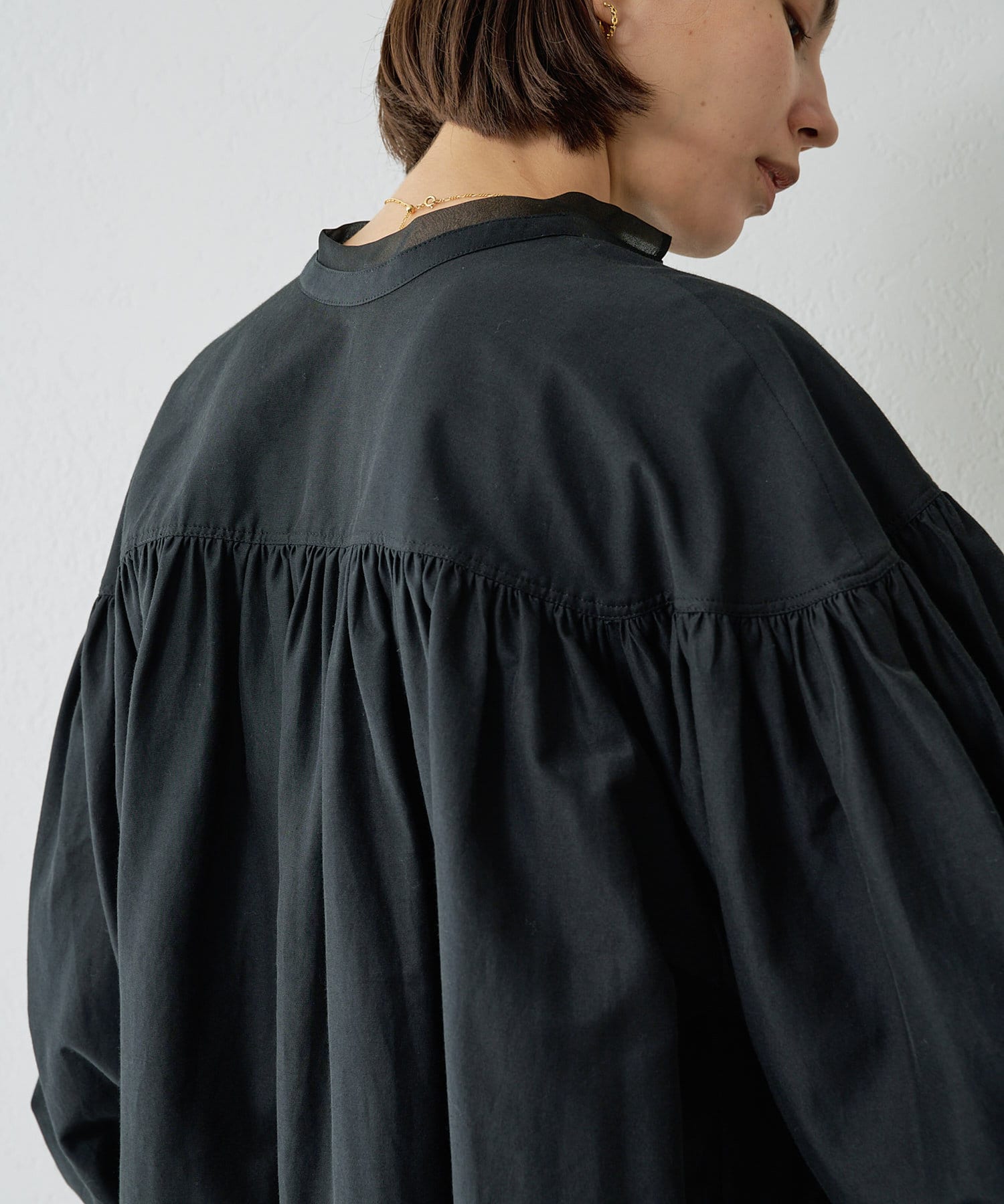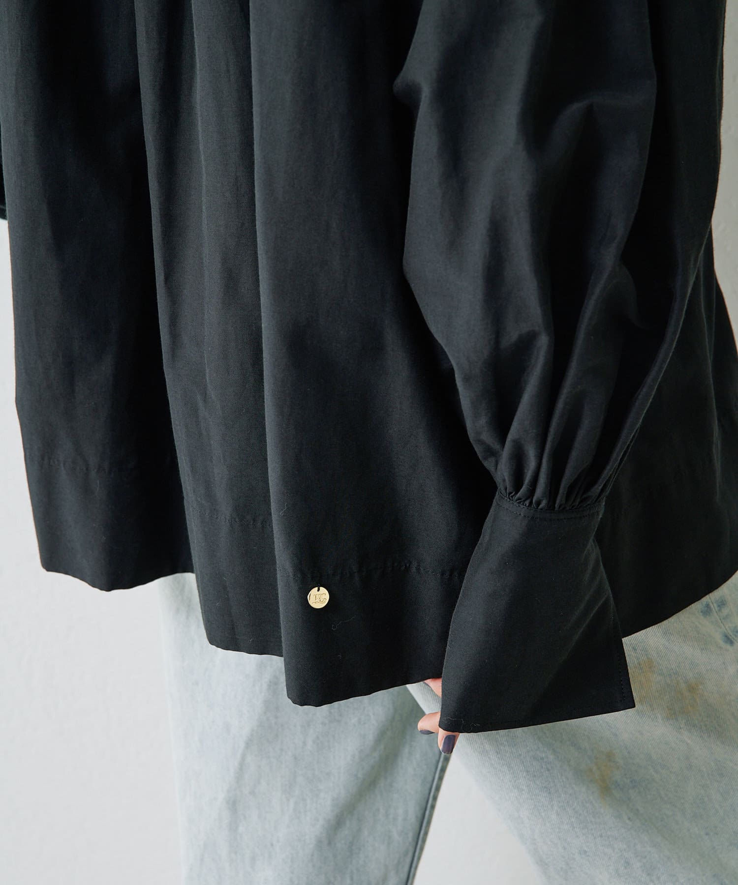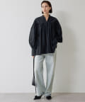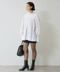 ボリューム感がオシャレなブラウス。前後2wayで使えるアイテムです。張り感とボリュームがあるので、小柄さんはショートパンツ合わせやスッキリしたシルエットのボトムス合わせがオススメ。