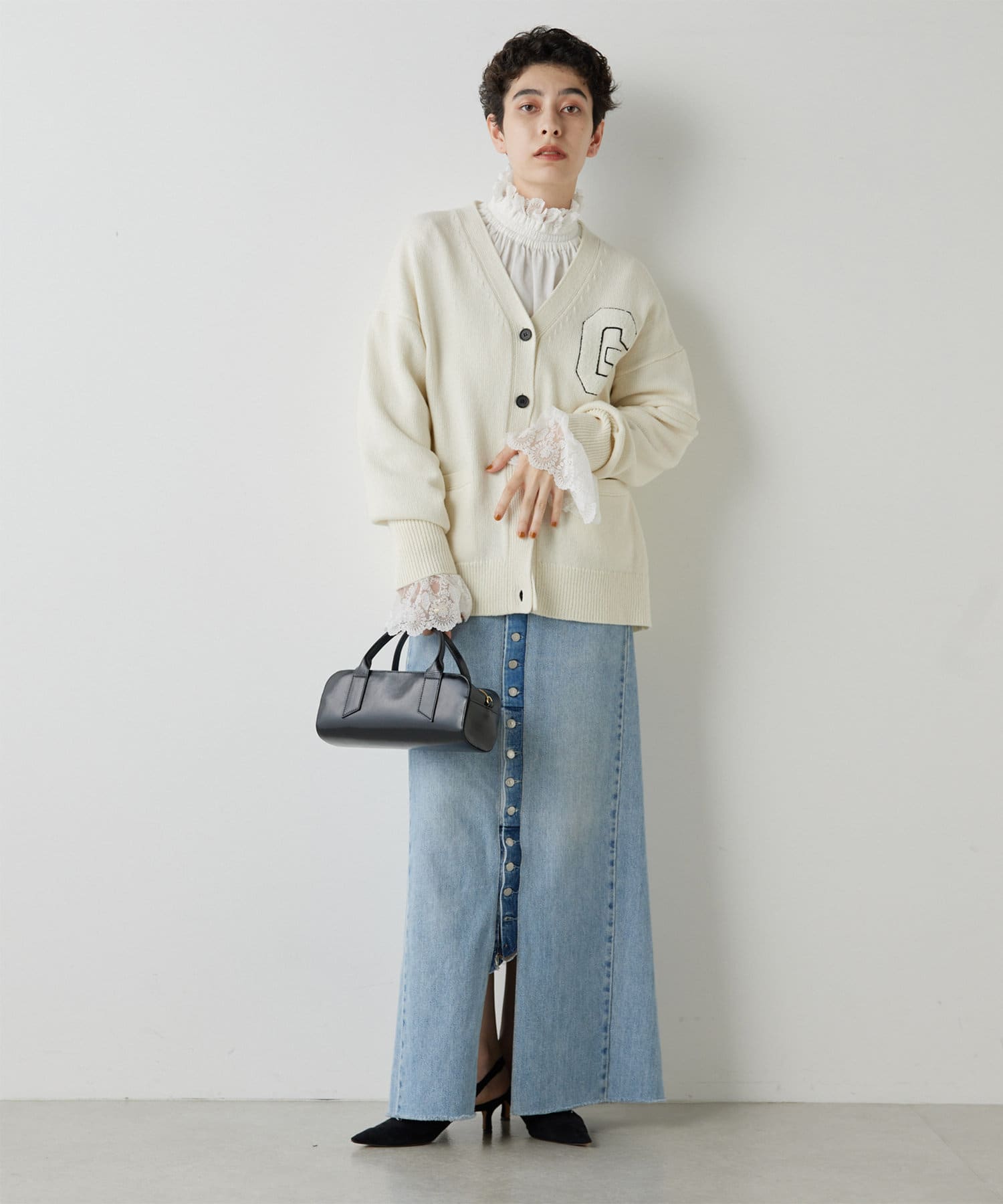 ■デニムやワイドスラックスで大人カジュアルに合わせたり、スカートで女性らしく合わせたりと幅広いスタイルに活躍。