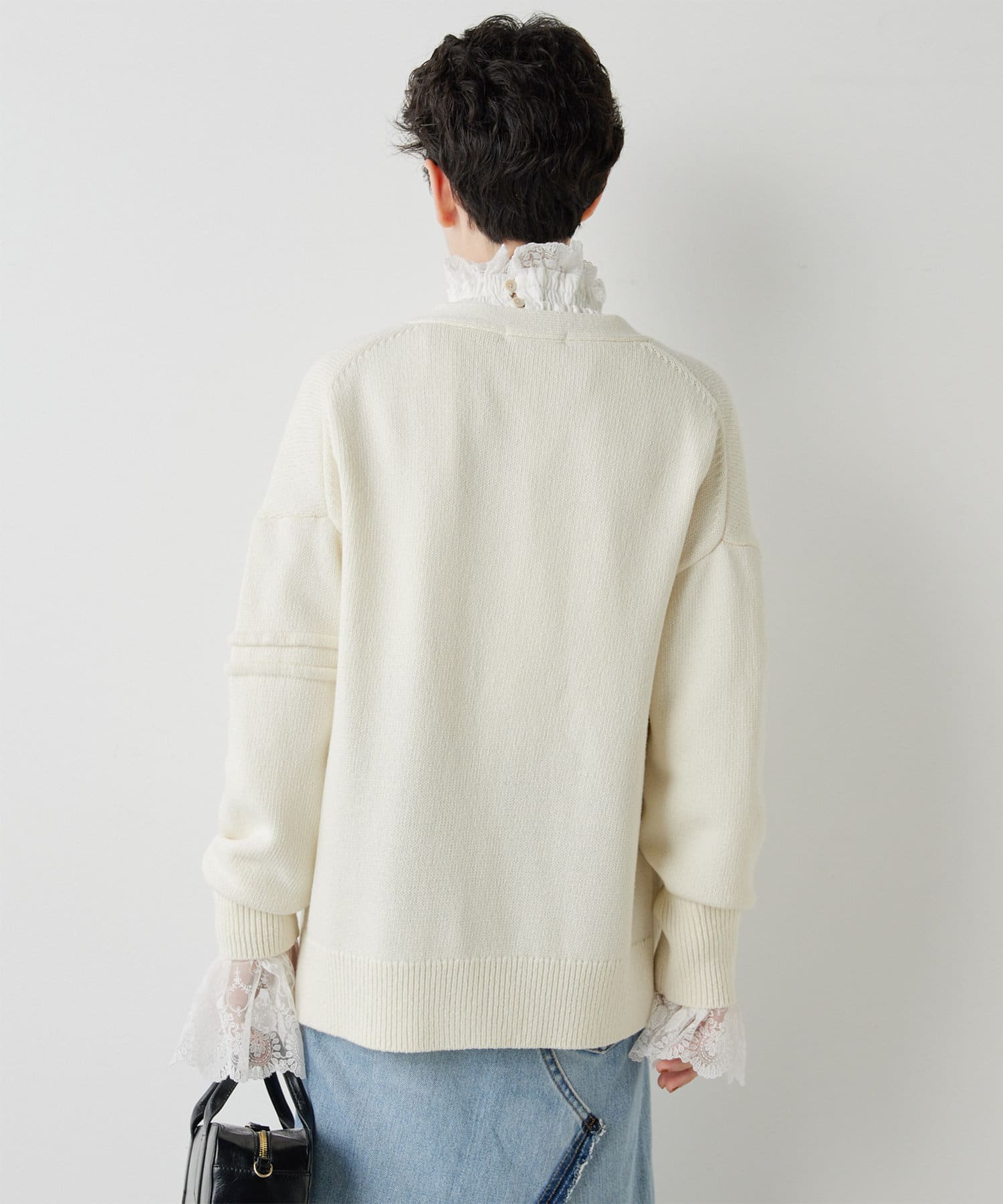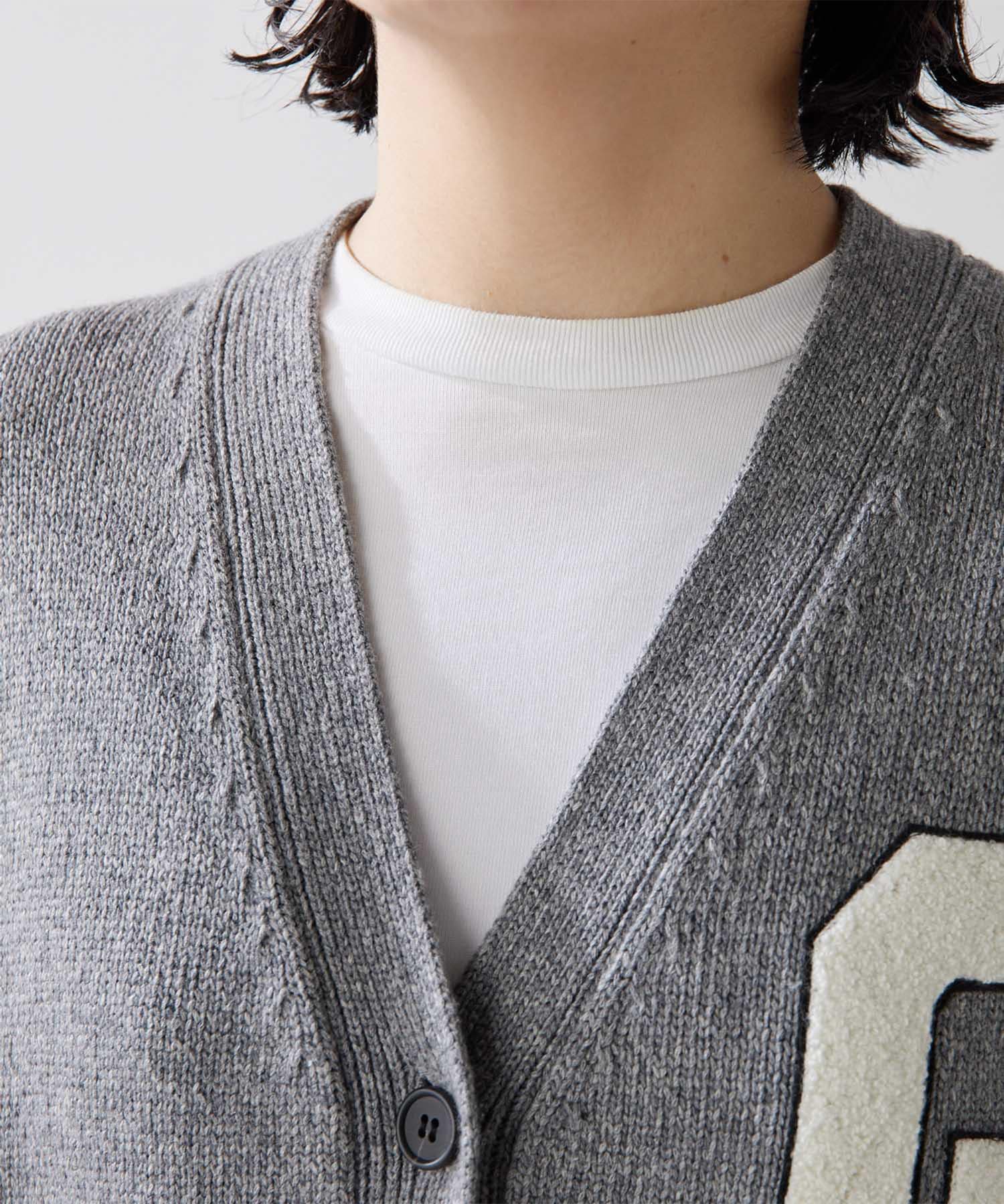 ■大胆なオリジナルワッペンがポイントのニットカーディガン。