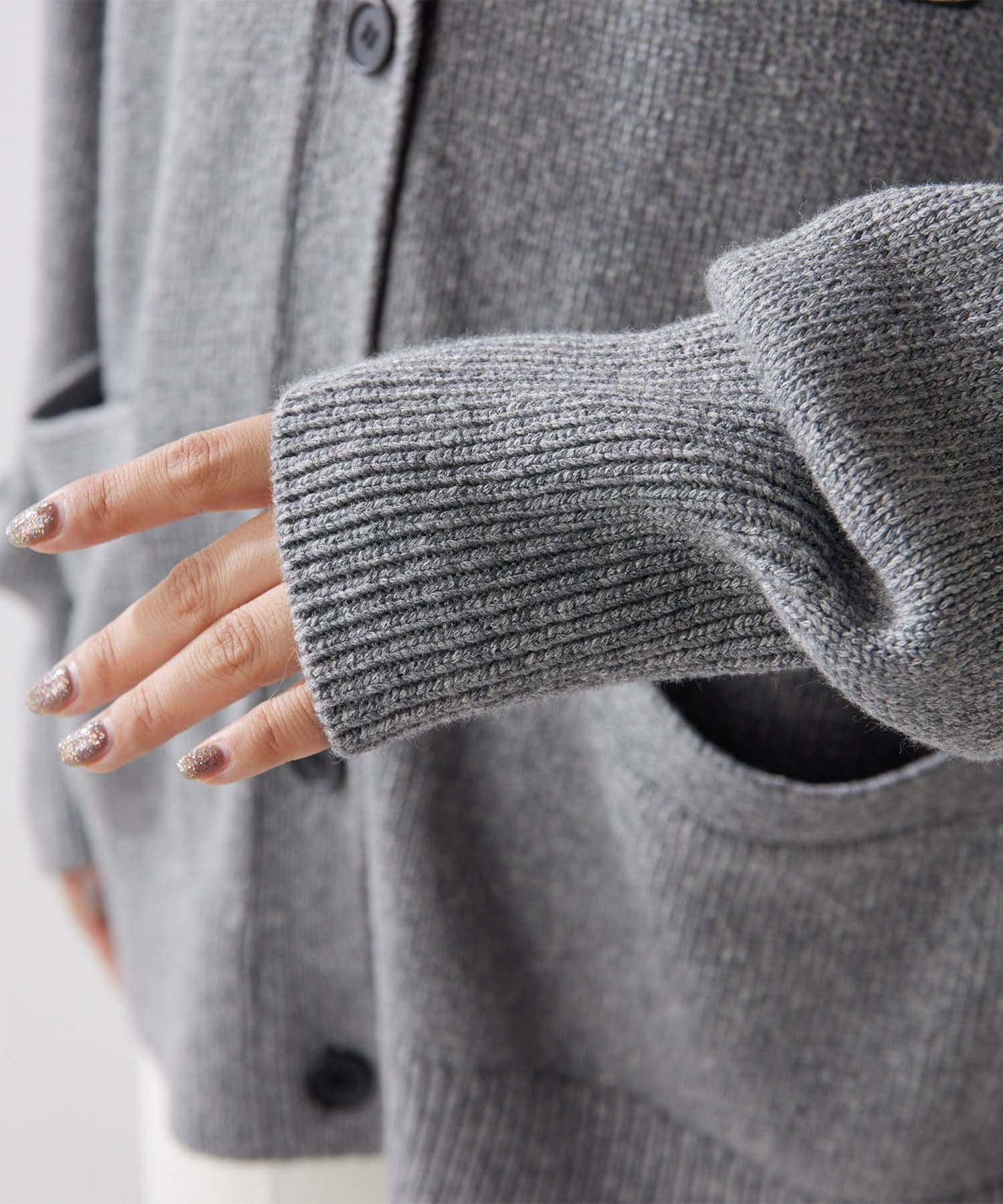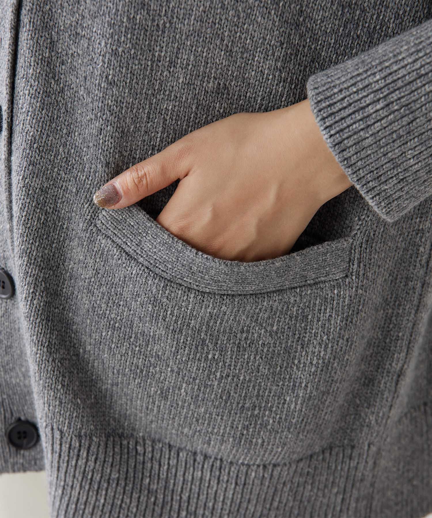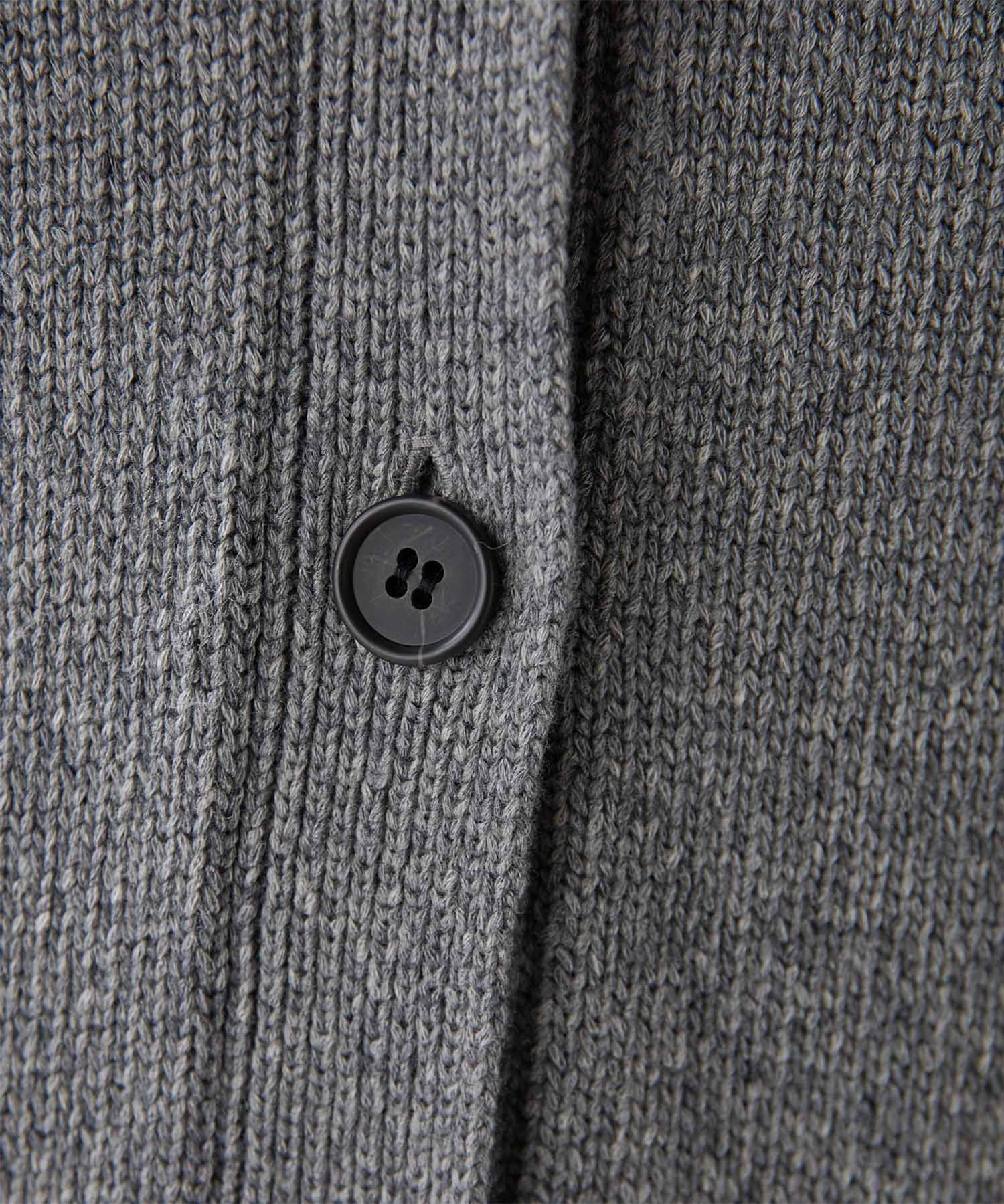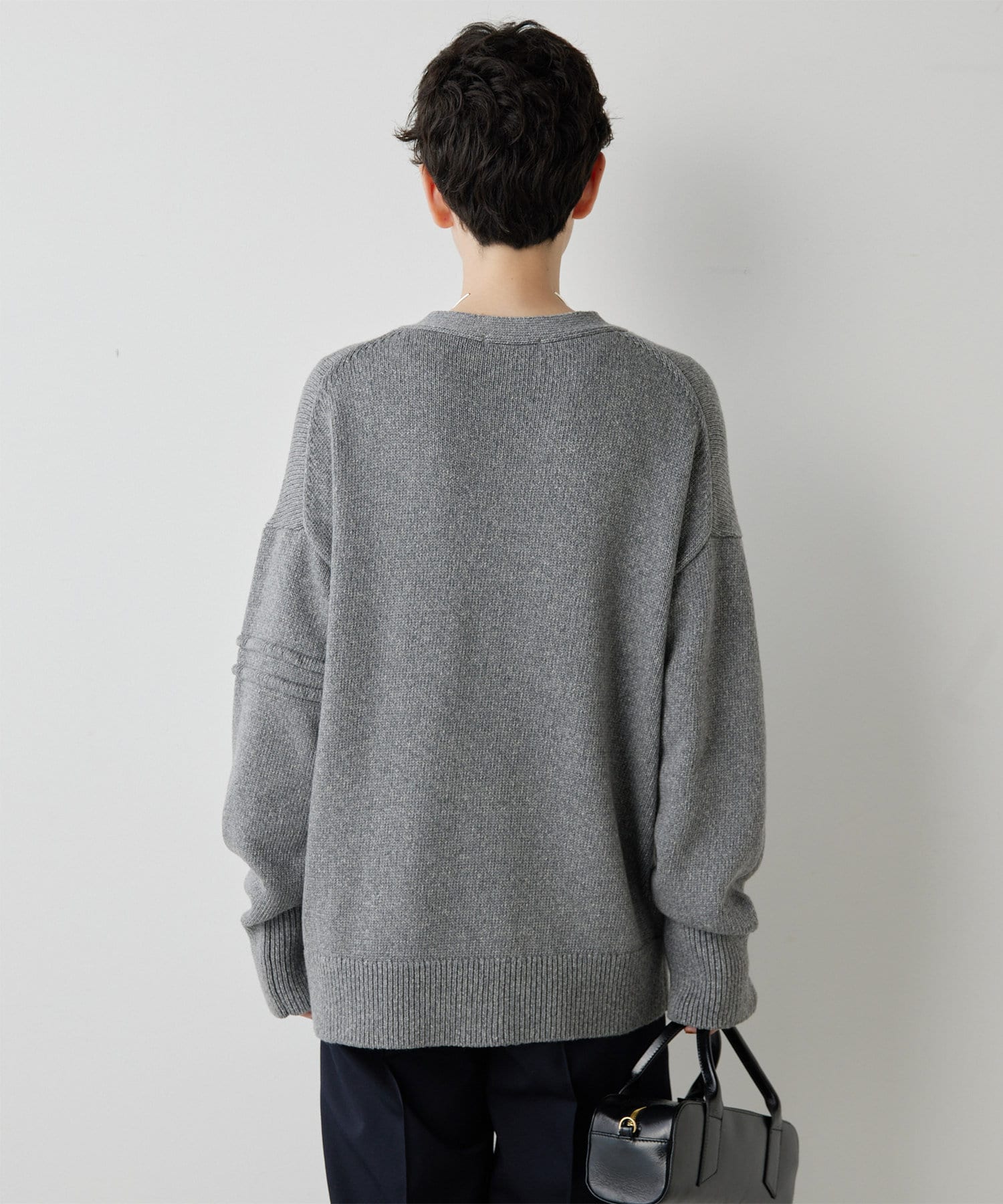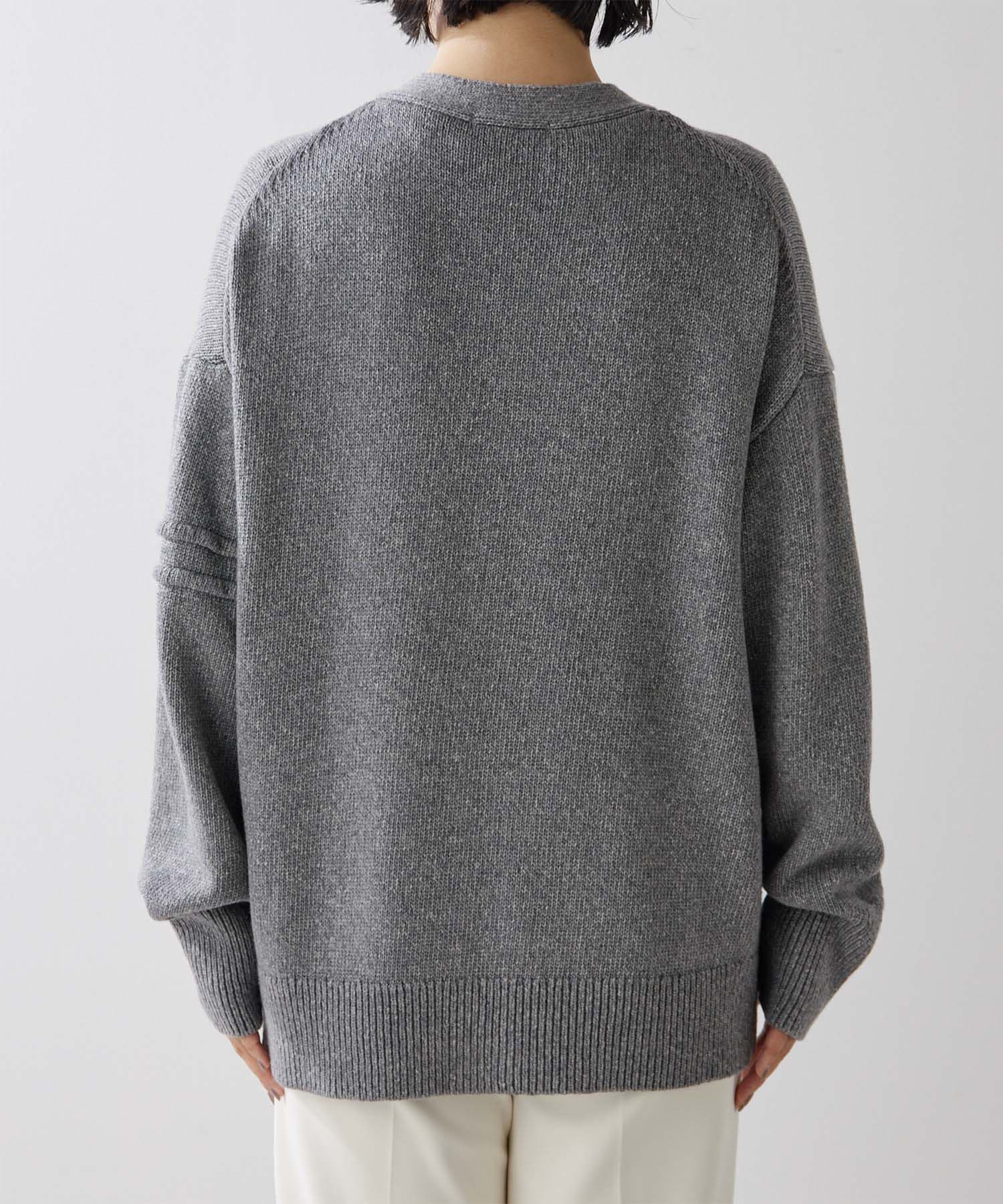 ■羽織りとしてはもちろん、ボタンを閉じてVネックプルオーバーのように楽しむのも◎。