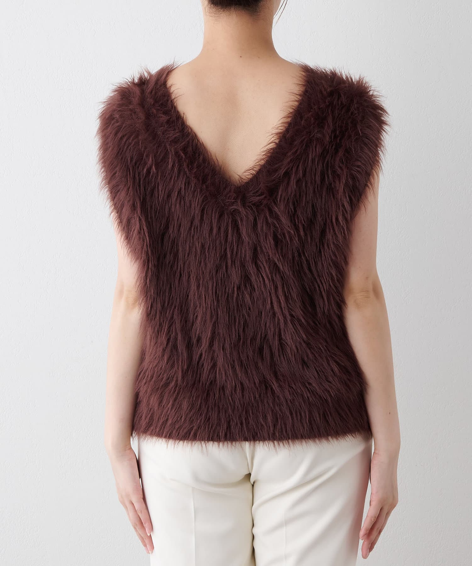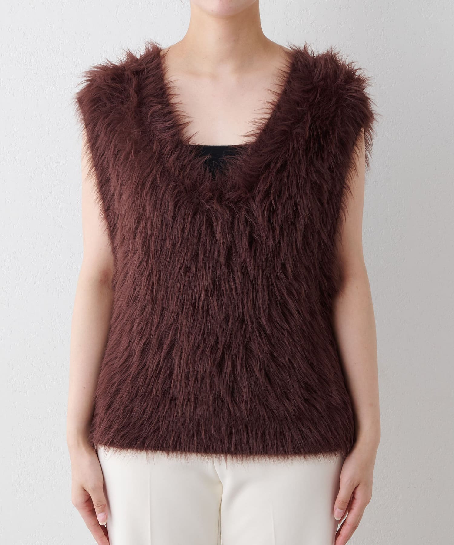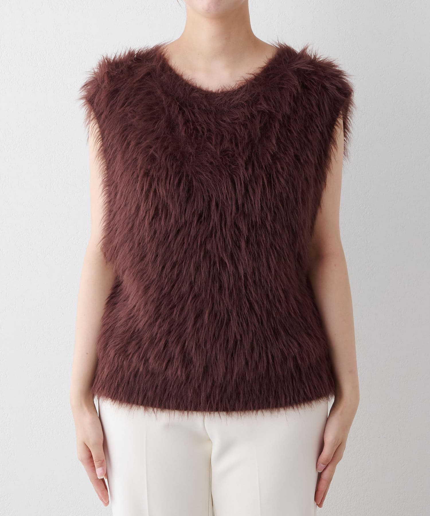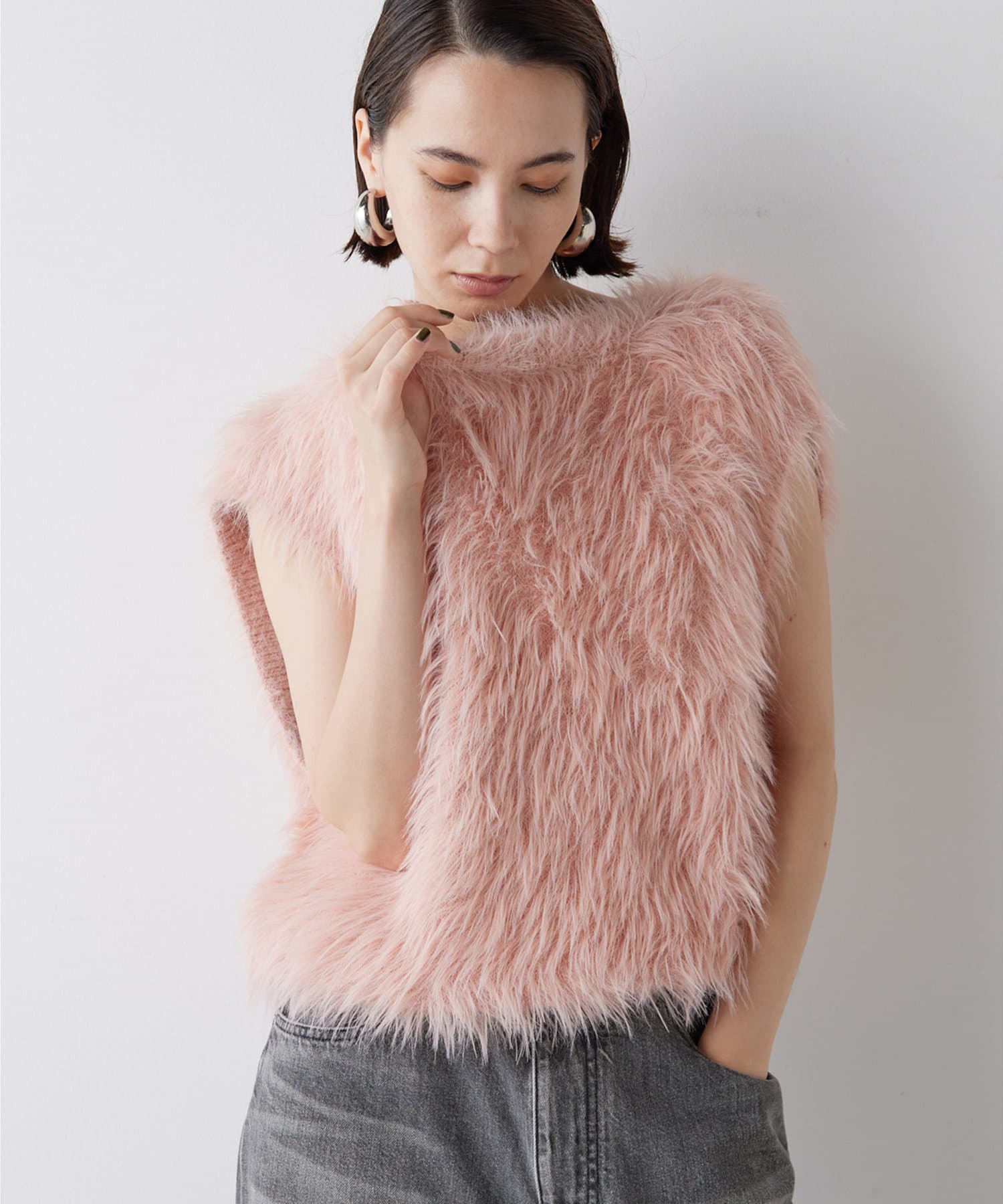 ■ファーライクなシャギーヤーンを使用したニットベスト。