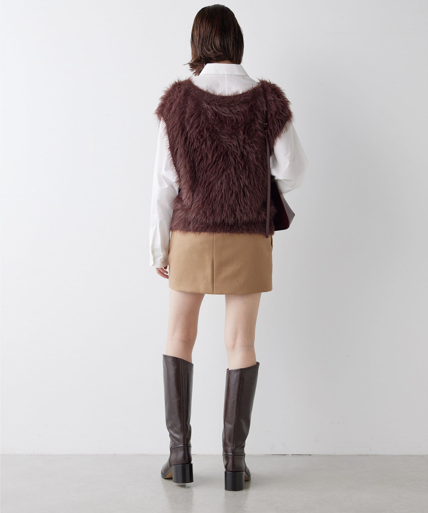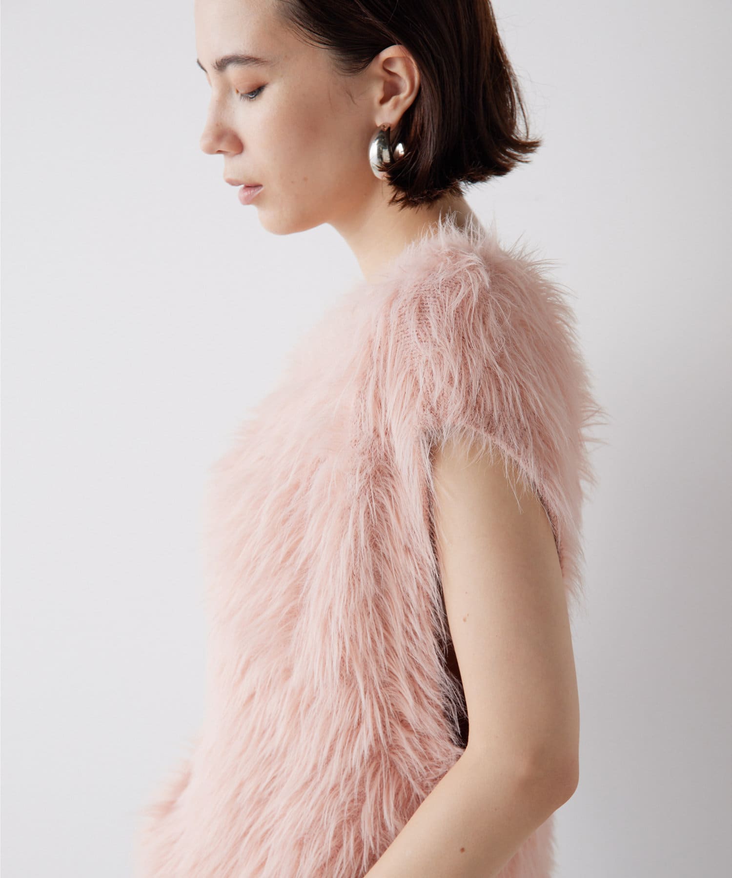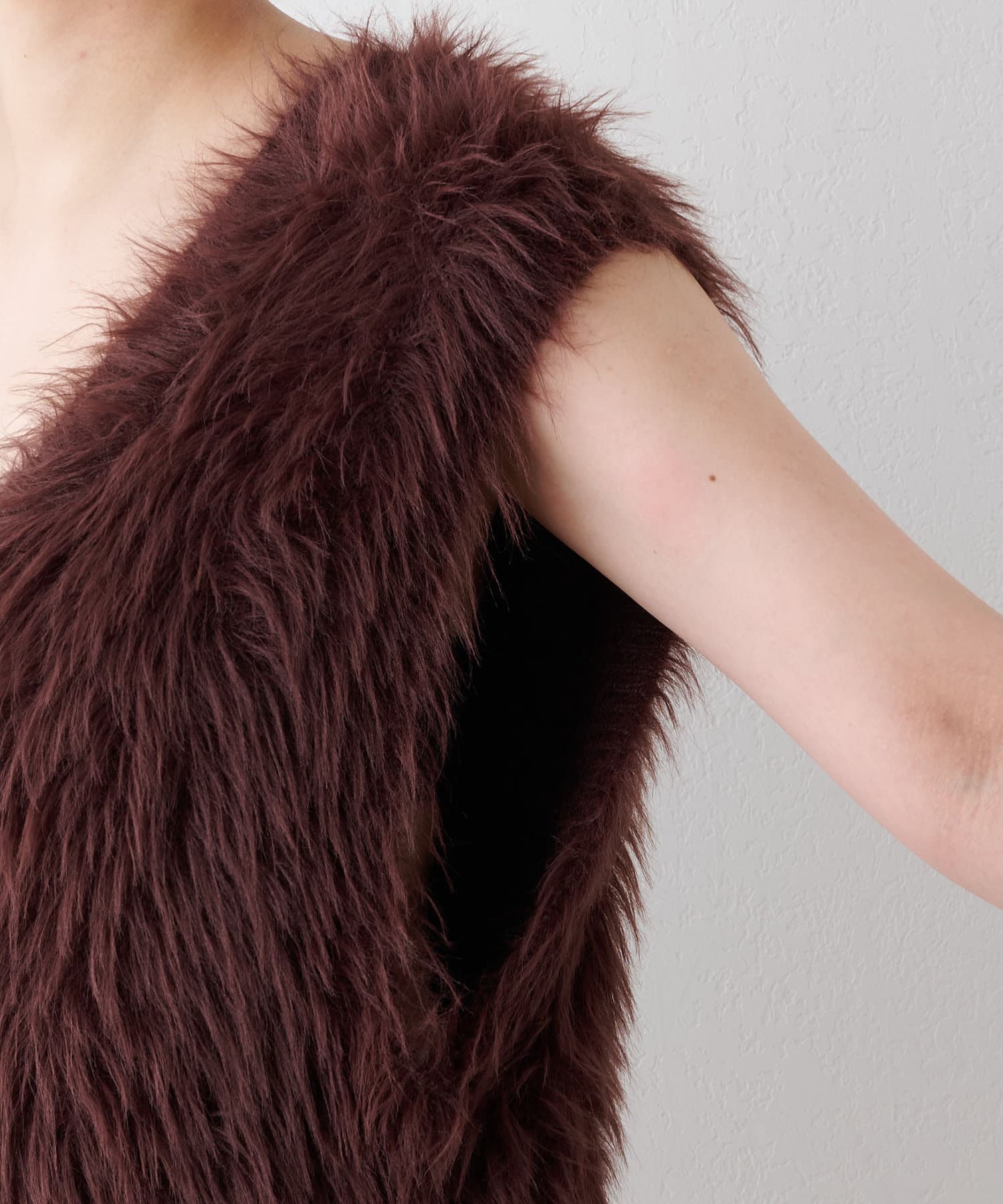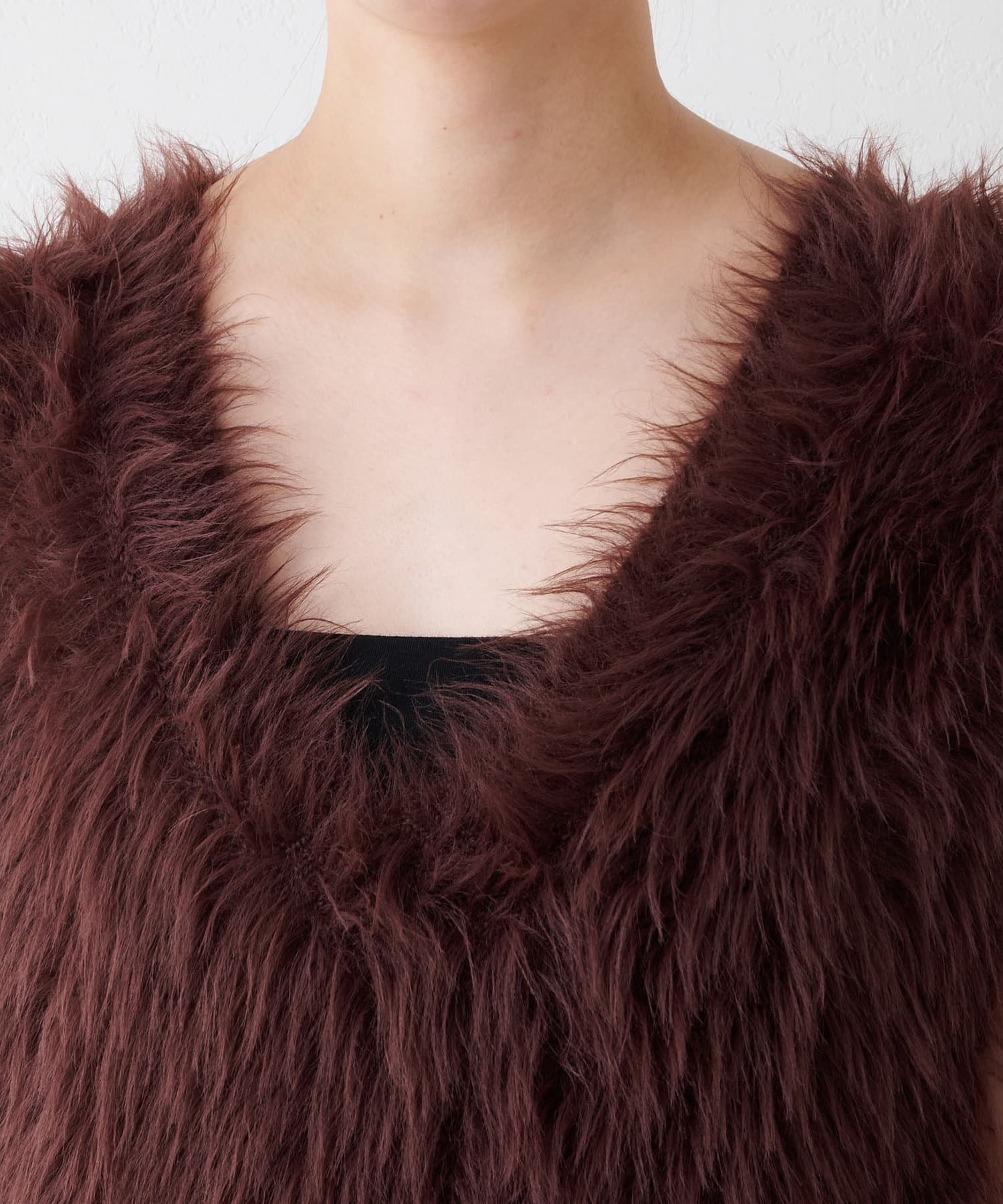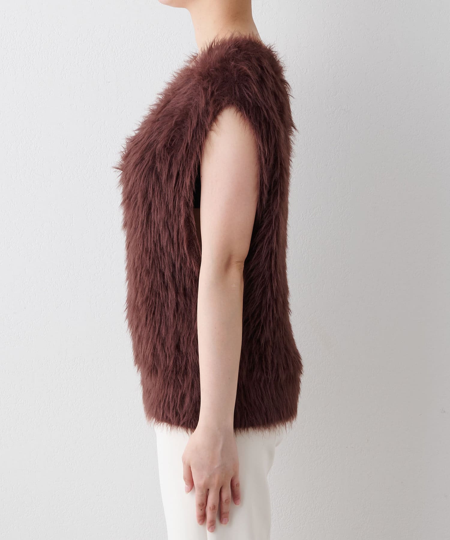 ■ファーライクなシャギーヤーンを使用したニットベスト。