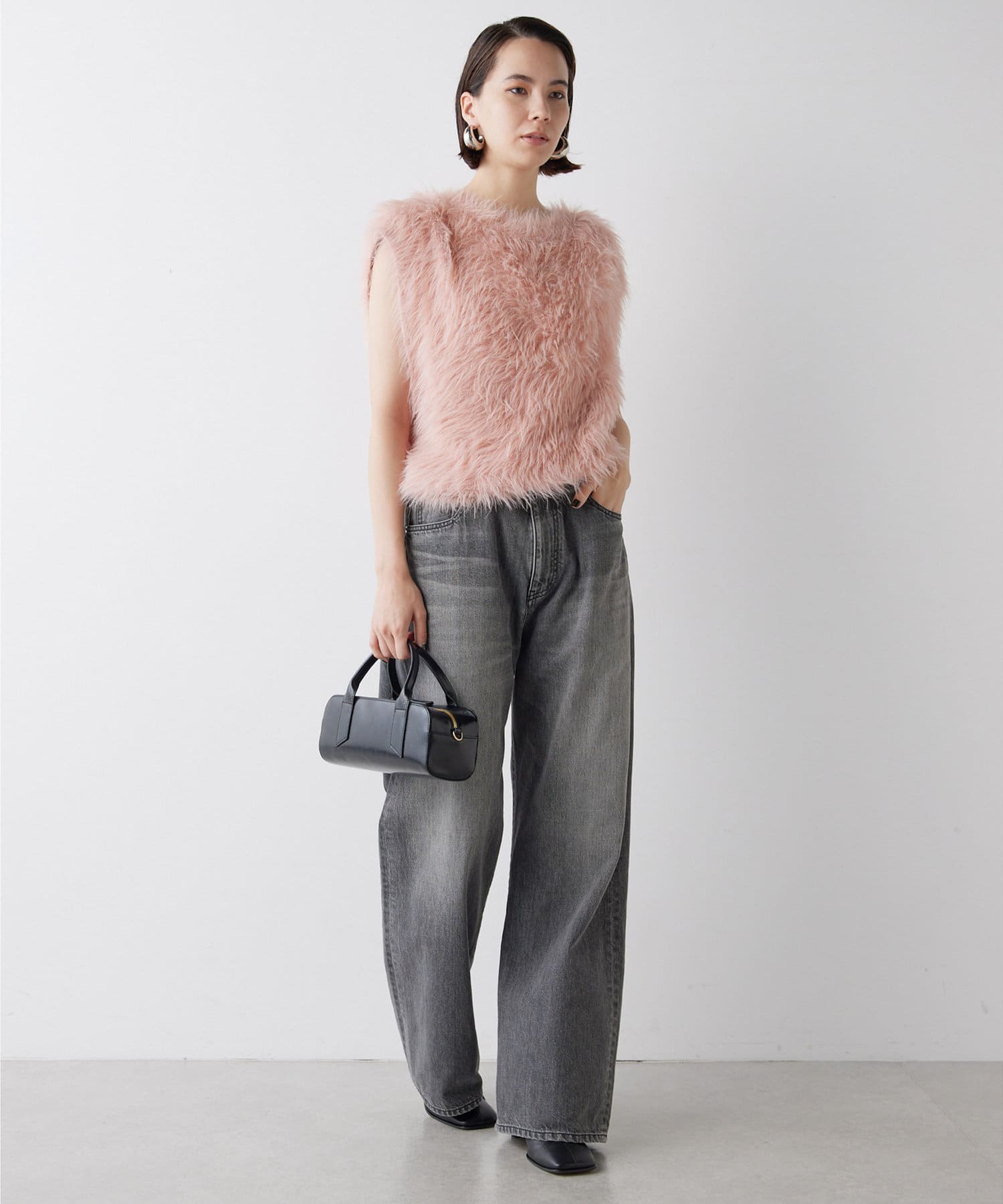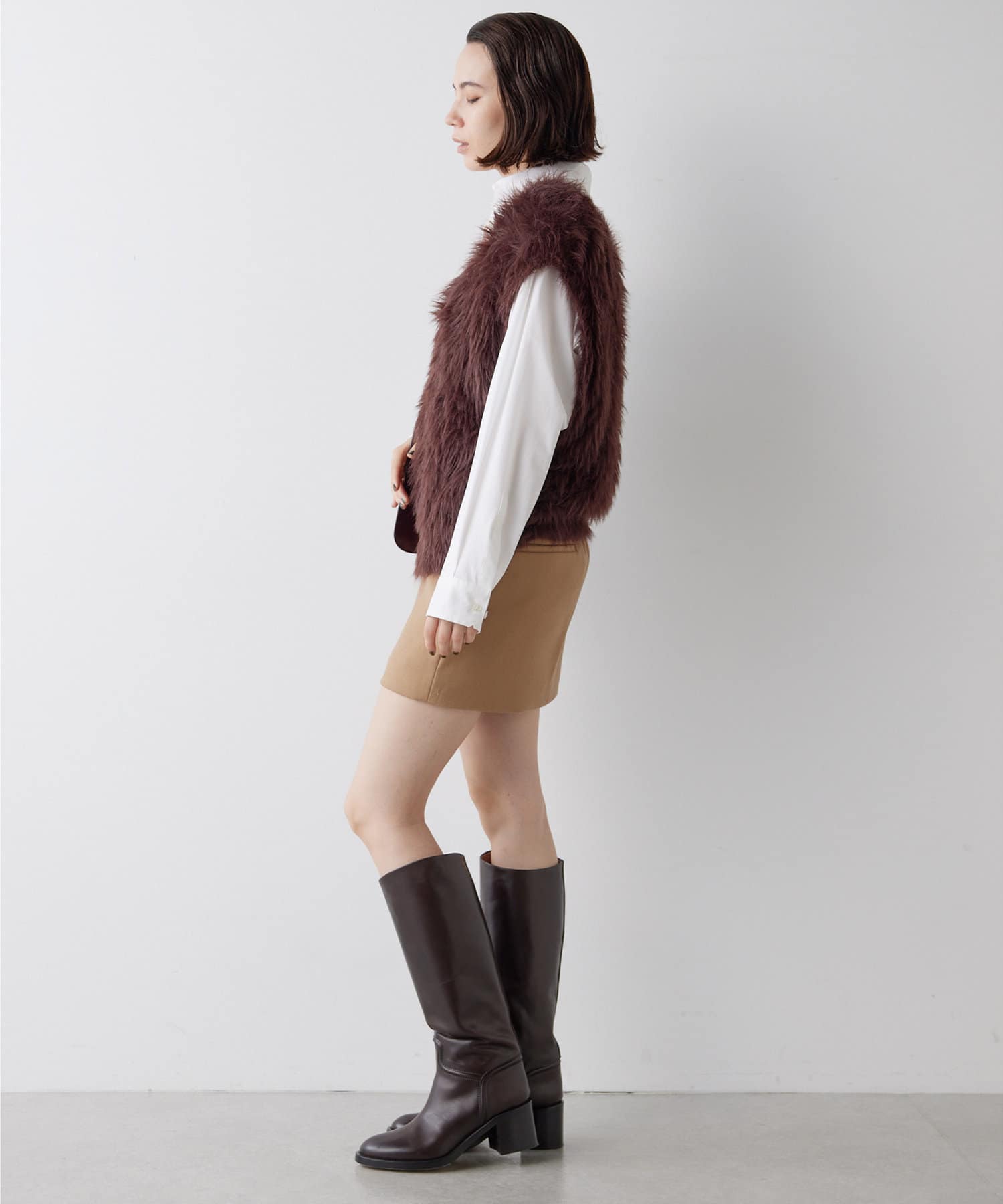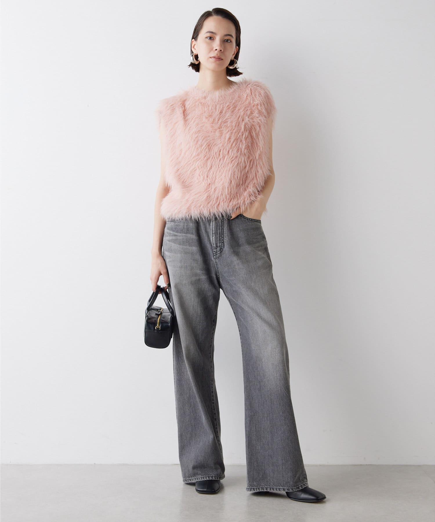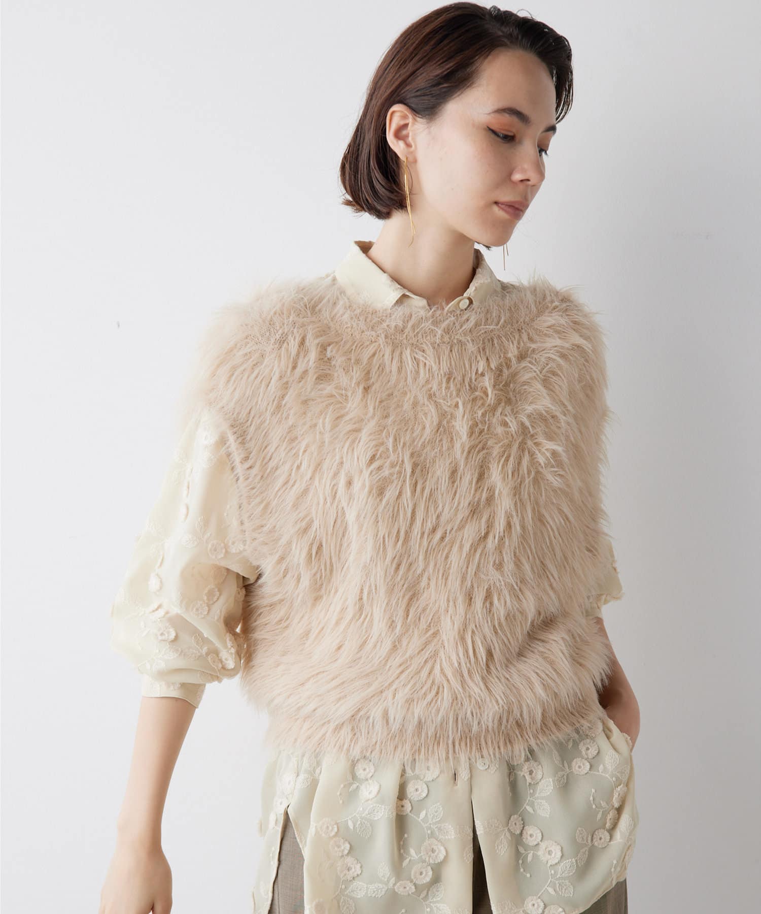 ■ファーライクなシャギーヤーンを使用したニットベスト。